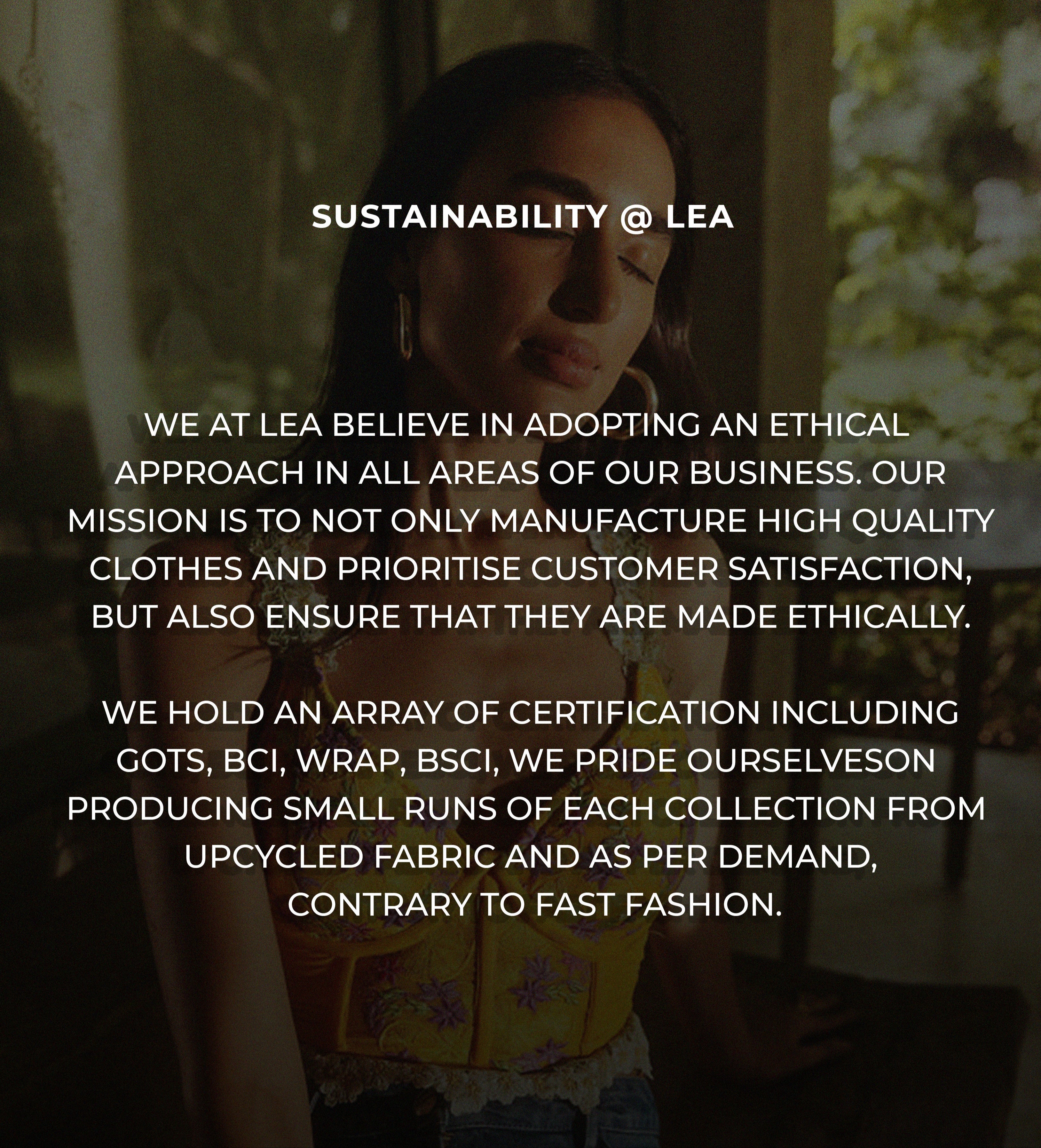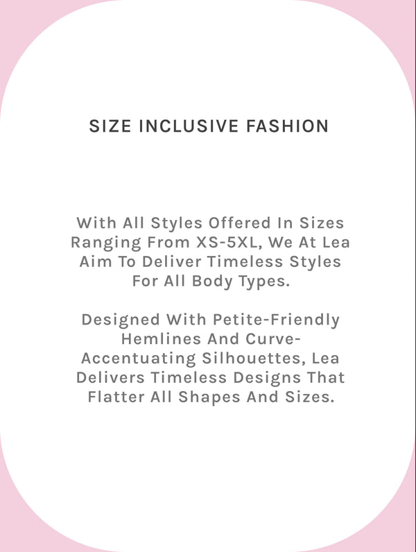 Lea is committed to size inclusivity. Our sizes range from XS to 5XL, ensuring