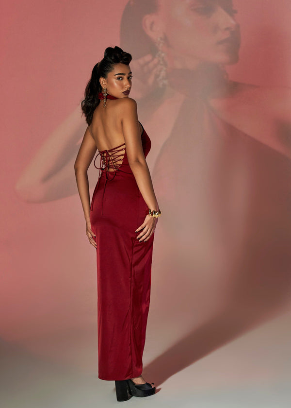 Solange Red Ruched Midi Dress