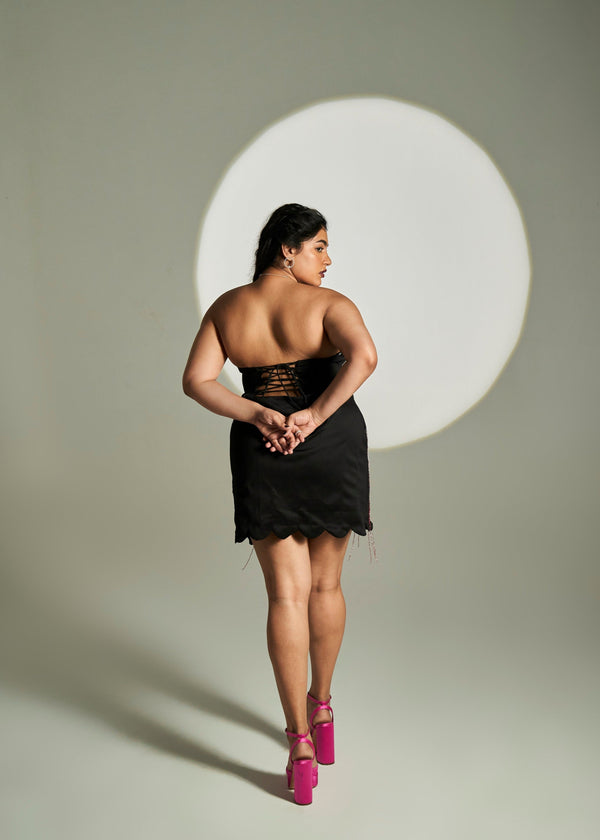 Nicolette Black Shine Bodysuit and Grey Flare Slit Pants Coord Set