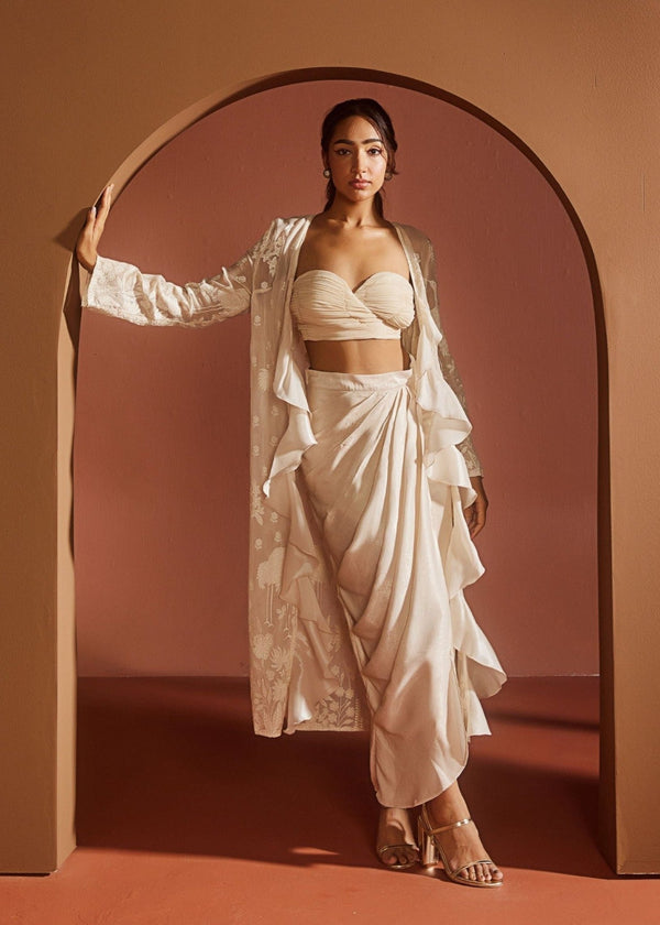 Cataleya White Embellished Strapless Corset Top with Lace Bolero