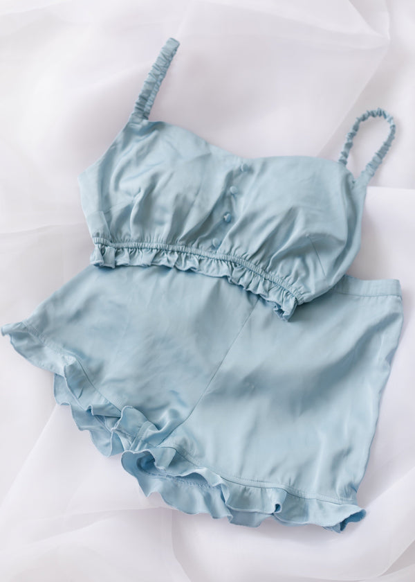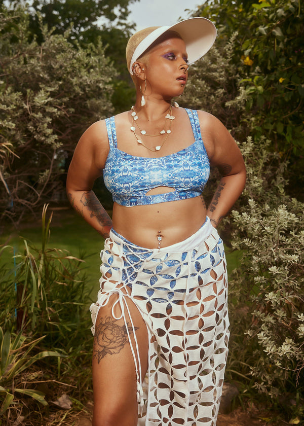 Bloom Blue Butterfly Crop Top and Fringe Pants Coord Set
