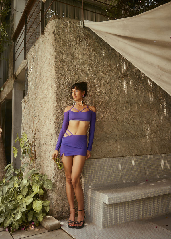 Jordyn Blue Crystal Mesh Mini Skirt CL