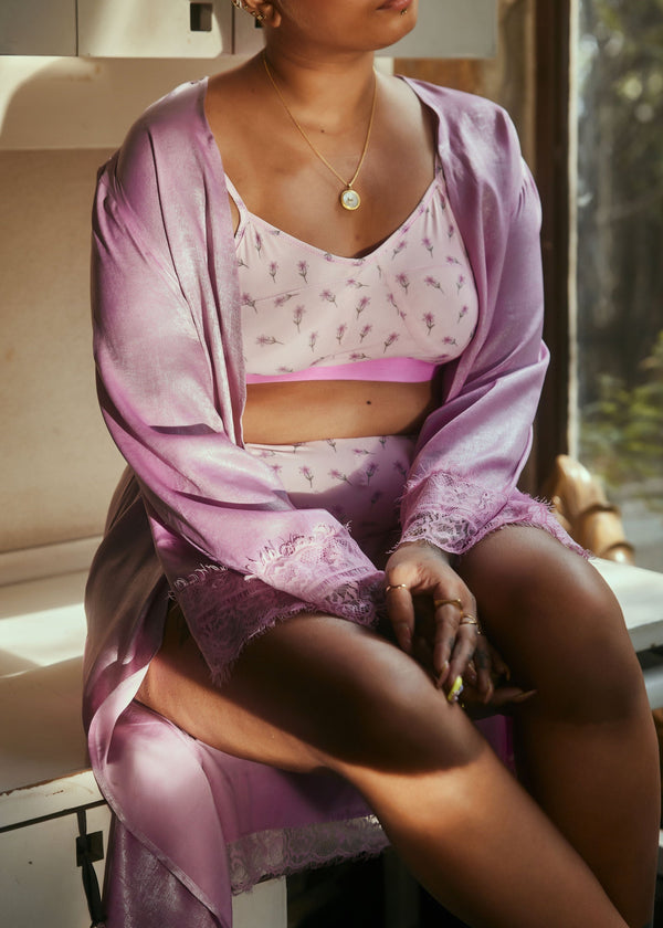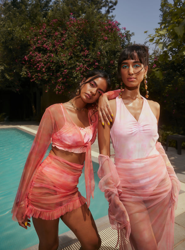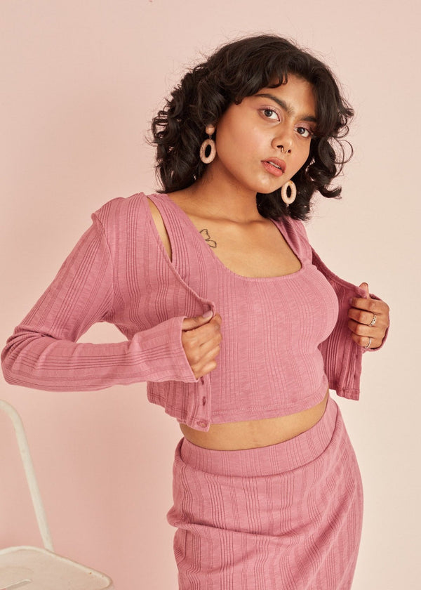 Gale Baby Pink Stretch Satin Corset Coord Set