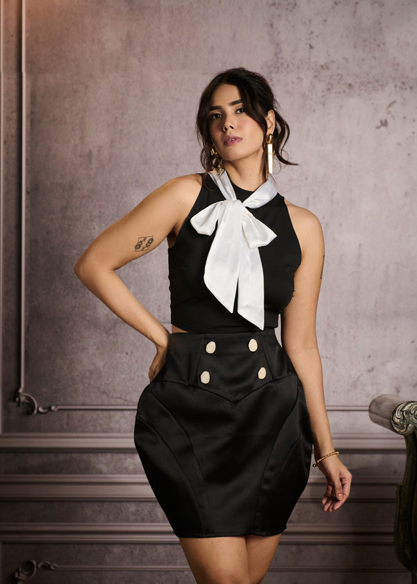 Ruth Vintage Print Bow Corset and Ruffled Skirt Set.