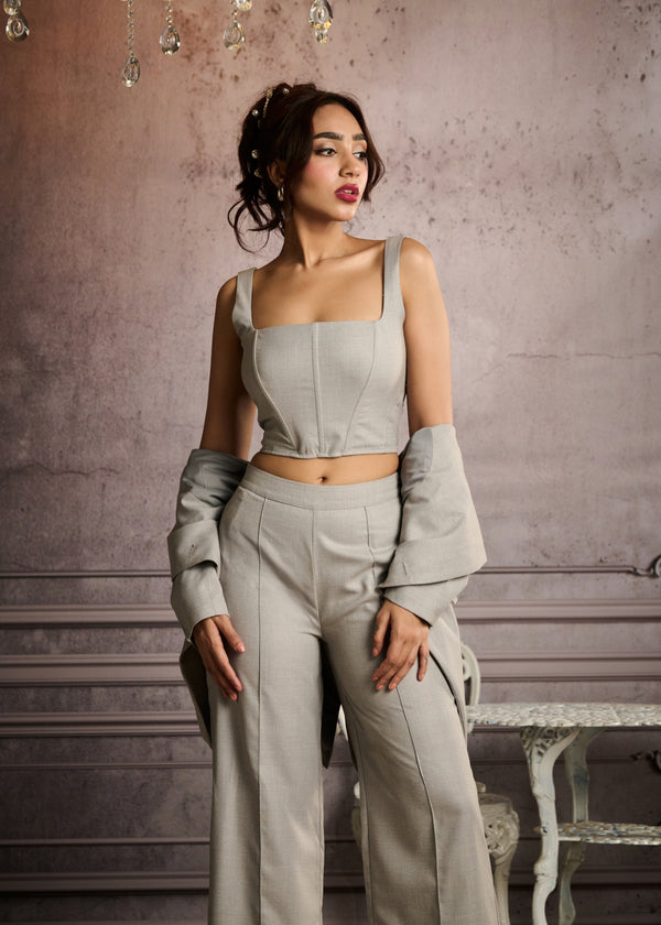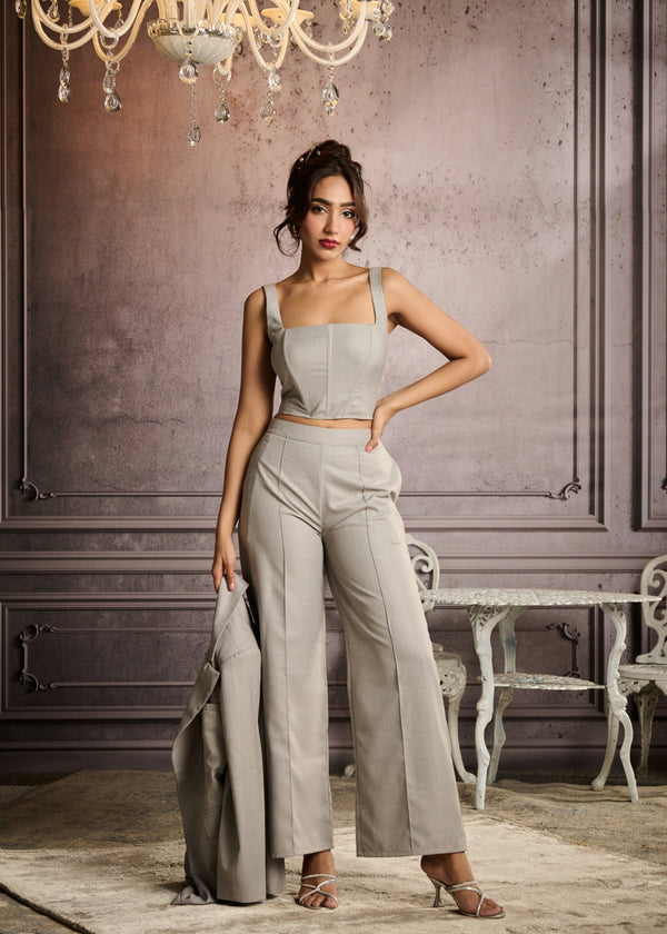 Rylee Grey Ruched Top and Black Tailored Pants Coord Set CL