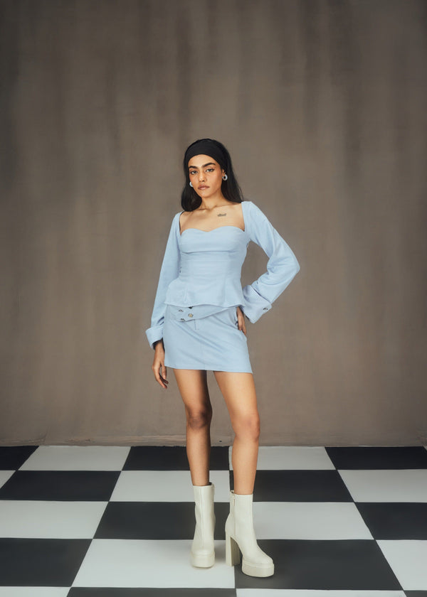 Barbara Blue Tweed Pinafore Dress and Organza Shirt Set CL