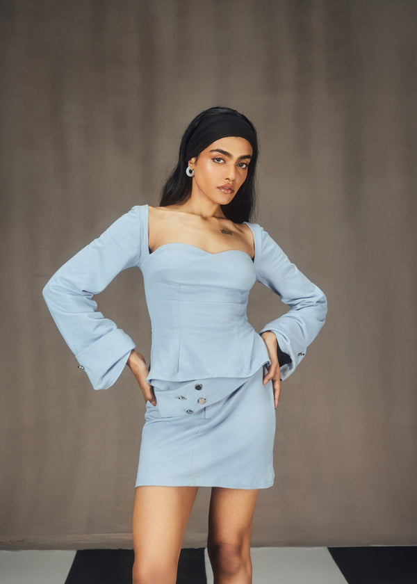 Lois White and Tan Corset Skirt and Shirt Set CL