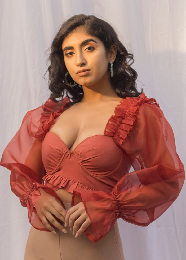 Sasha Yellow Embroidered Organza Sleeve Corset Top