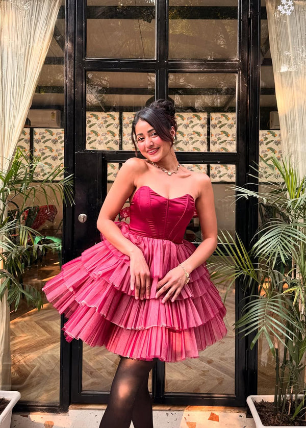 Belle Pink Ombre Ruffle Tulle Corset Dress