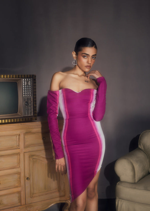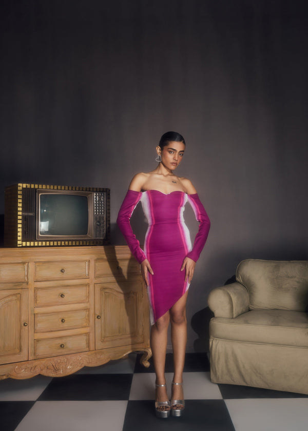 Stephanie Black & Pink Satin Mini Dress with Gloves CL
