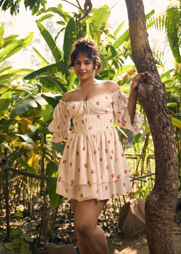 Livia Baby Pink Cherry Print Rib Bodycon Dress
