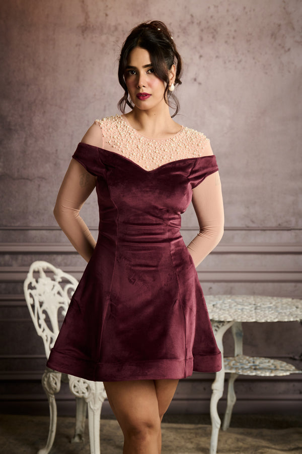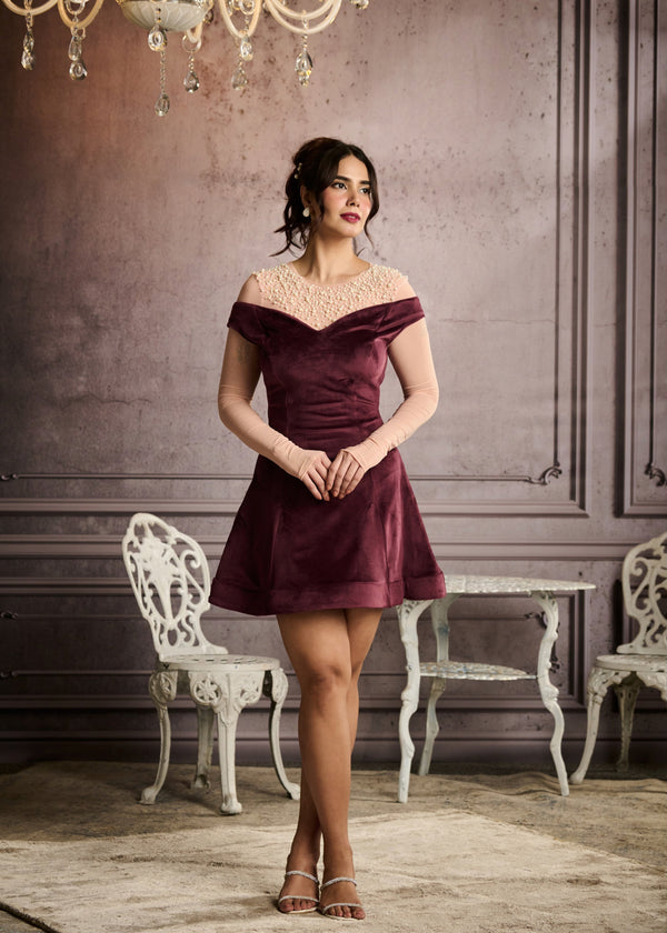 Rosetta Burgundy Structured Corset Dress with Detachable Sleeves