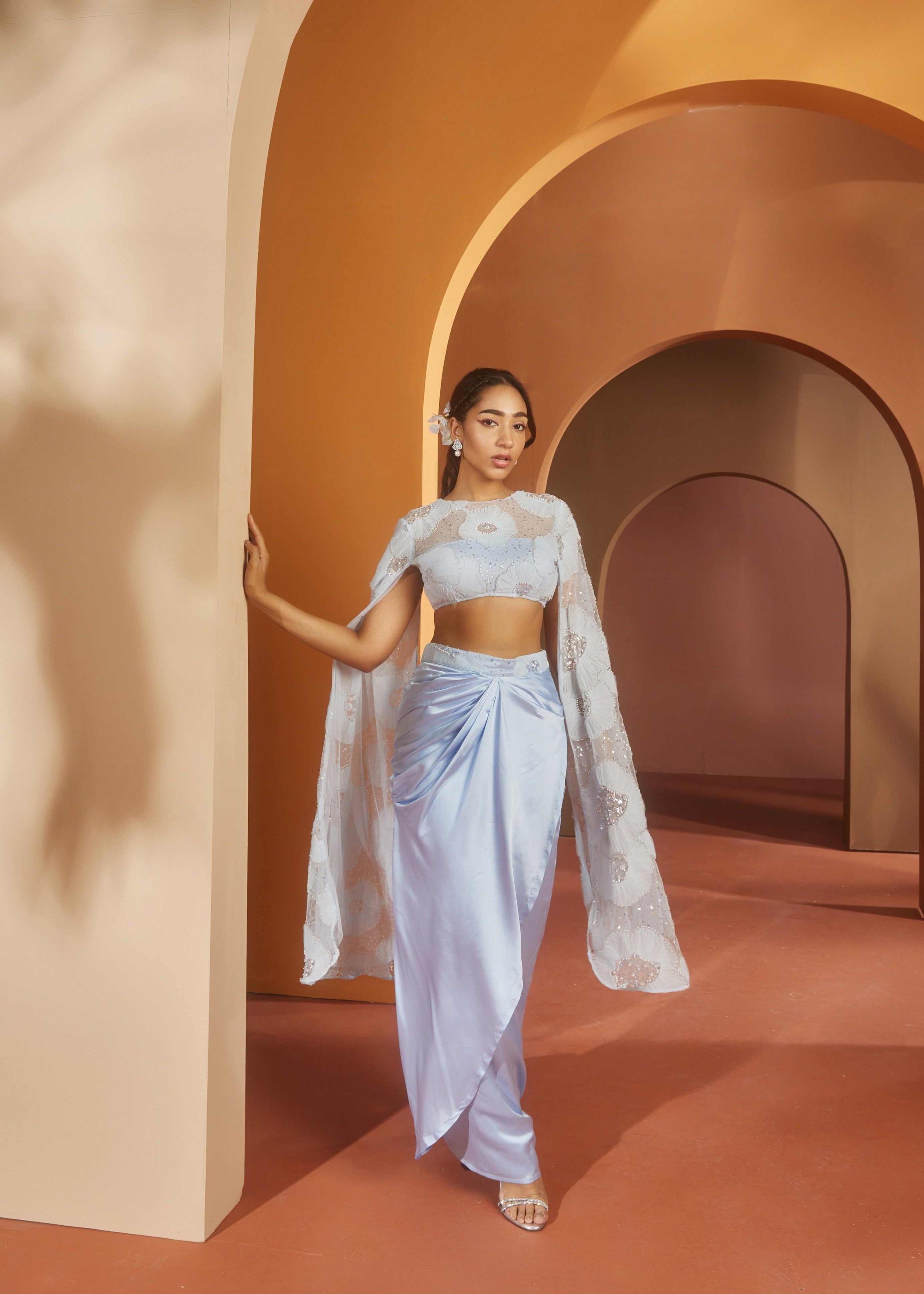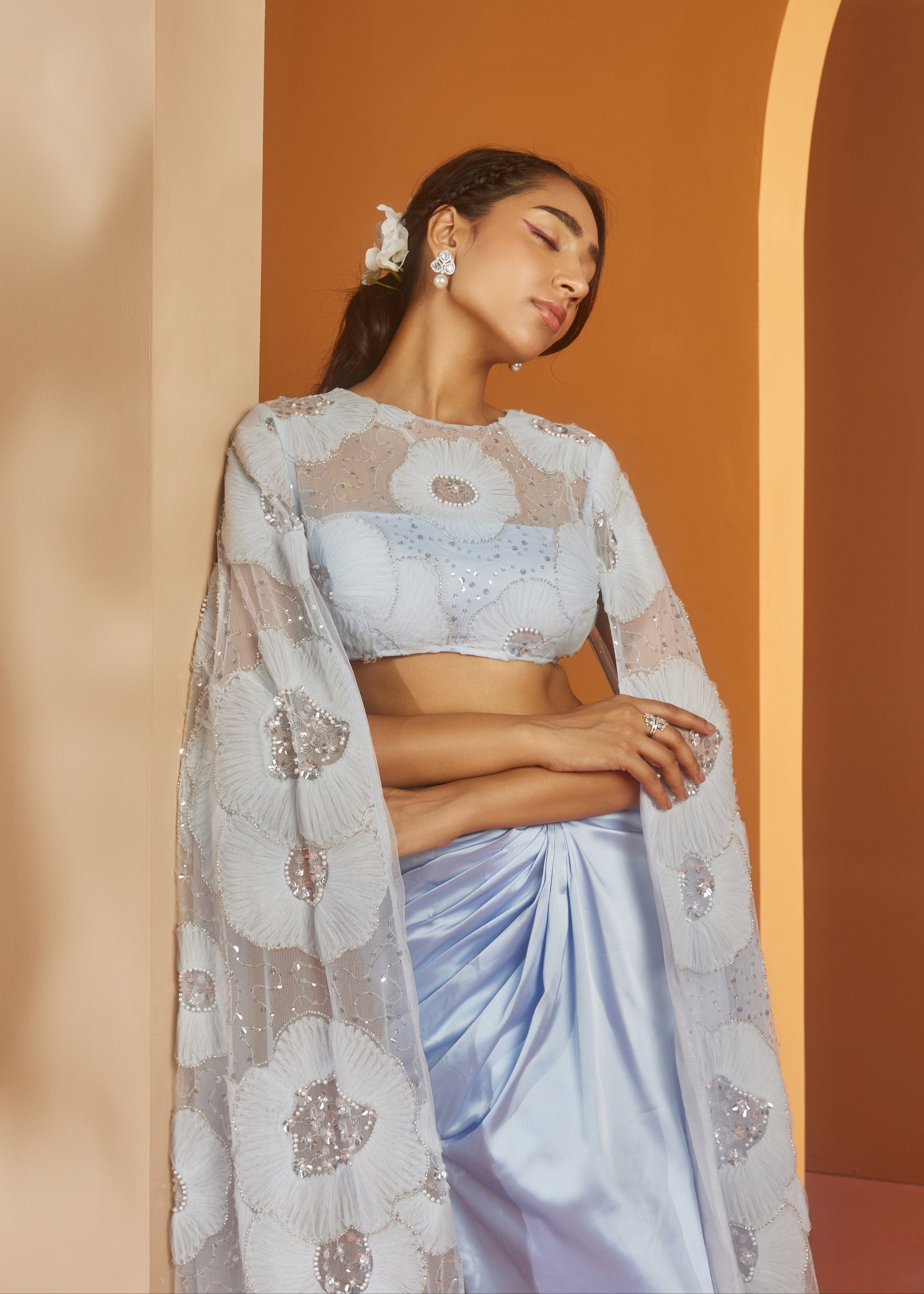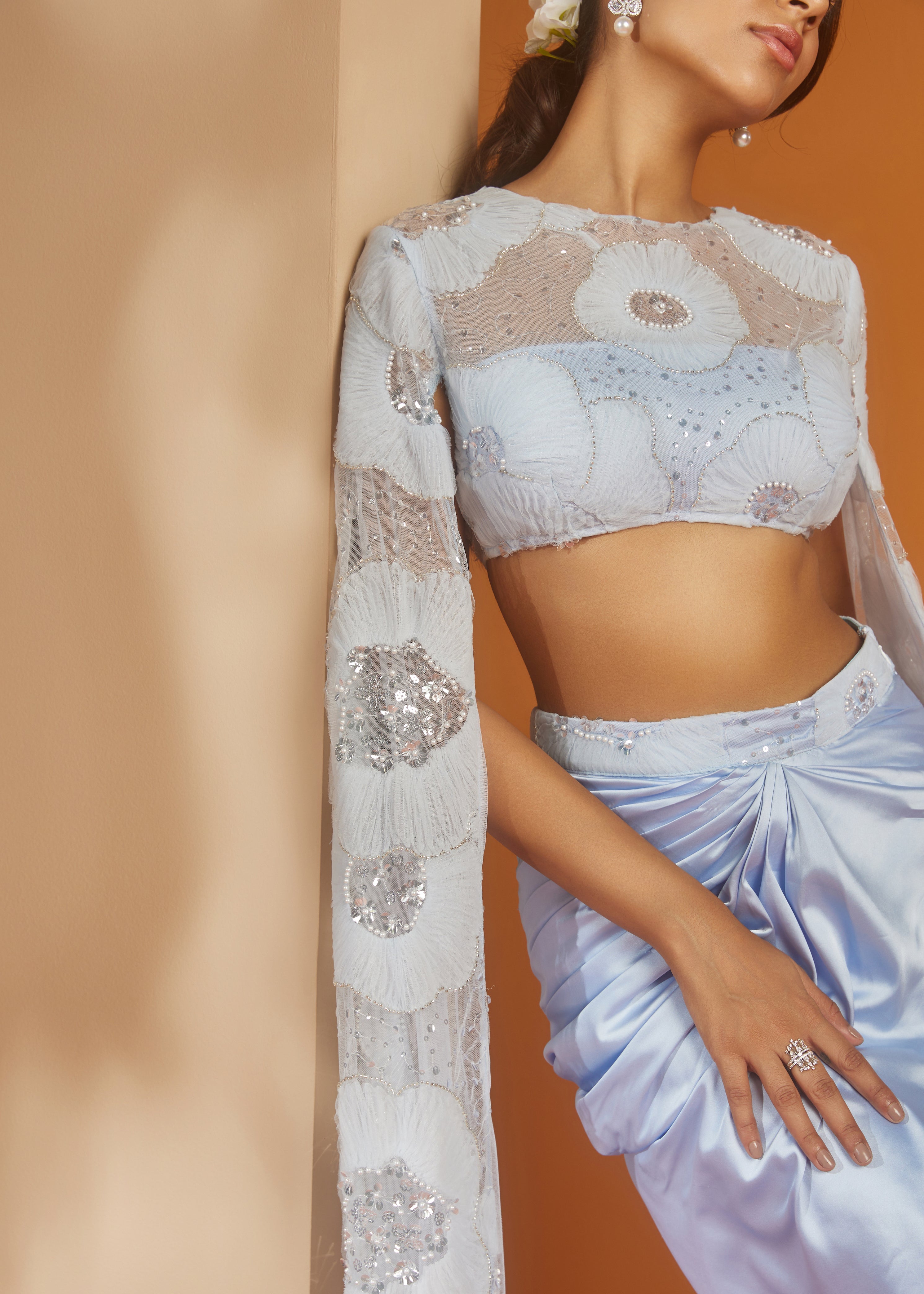 Jasmine Powder Blue Satin and Shimmer Chiffon Lehenga Set