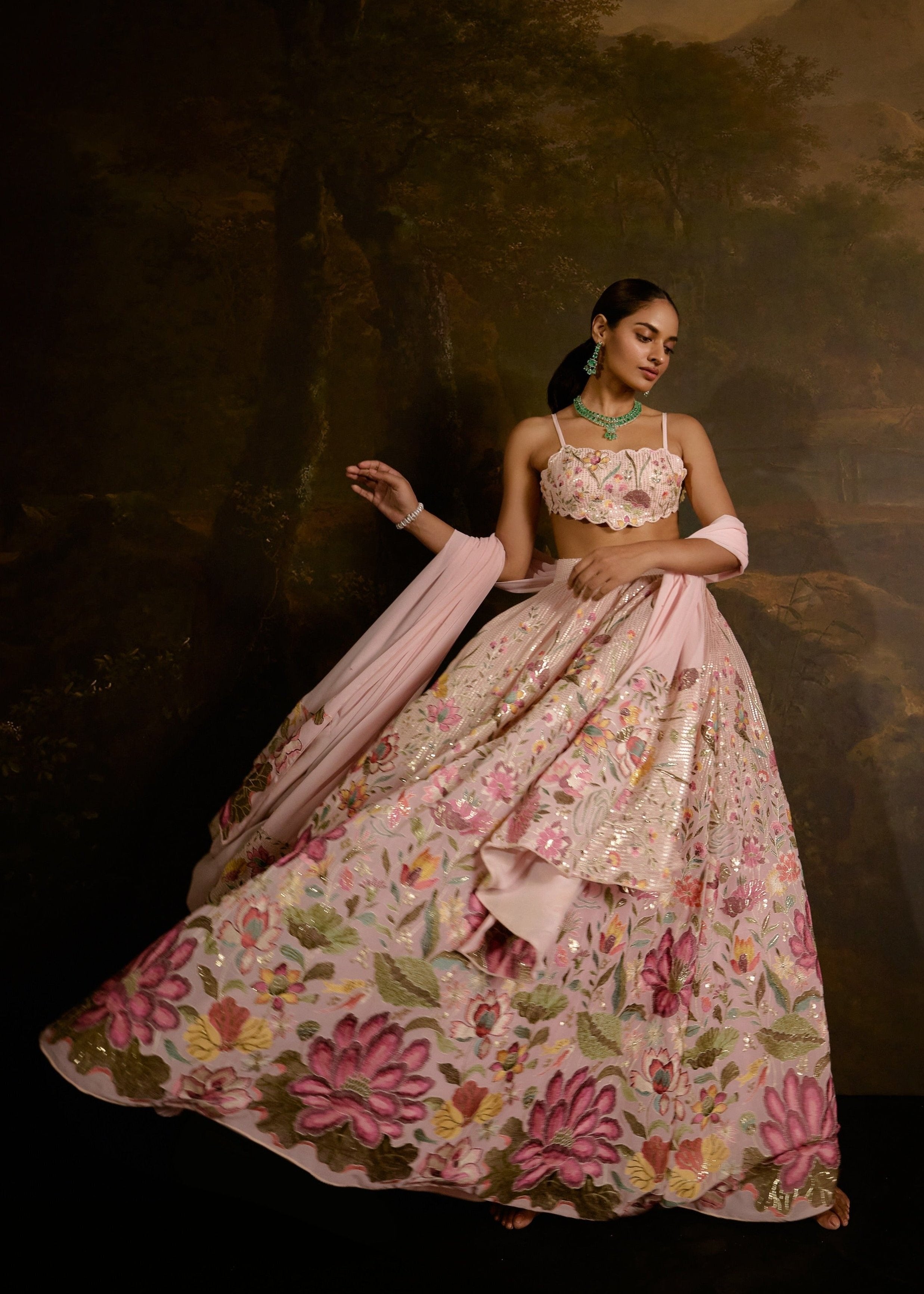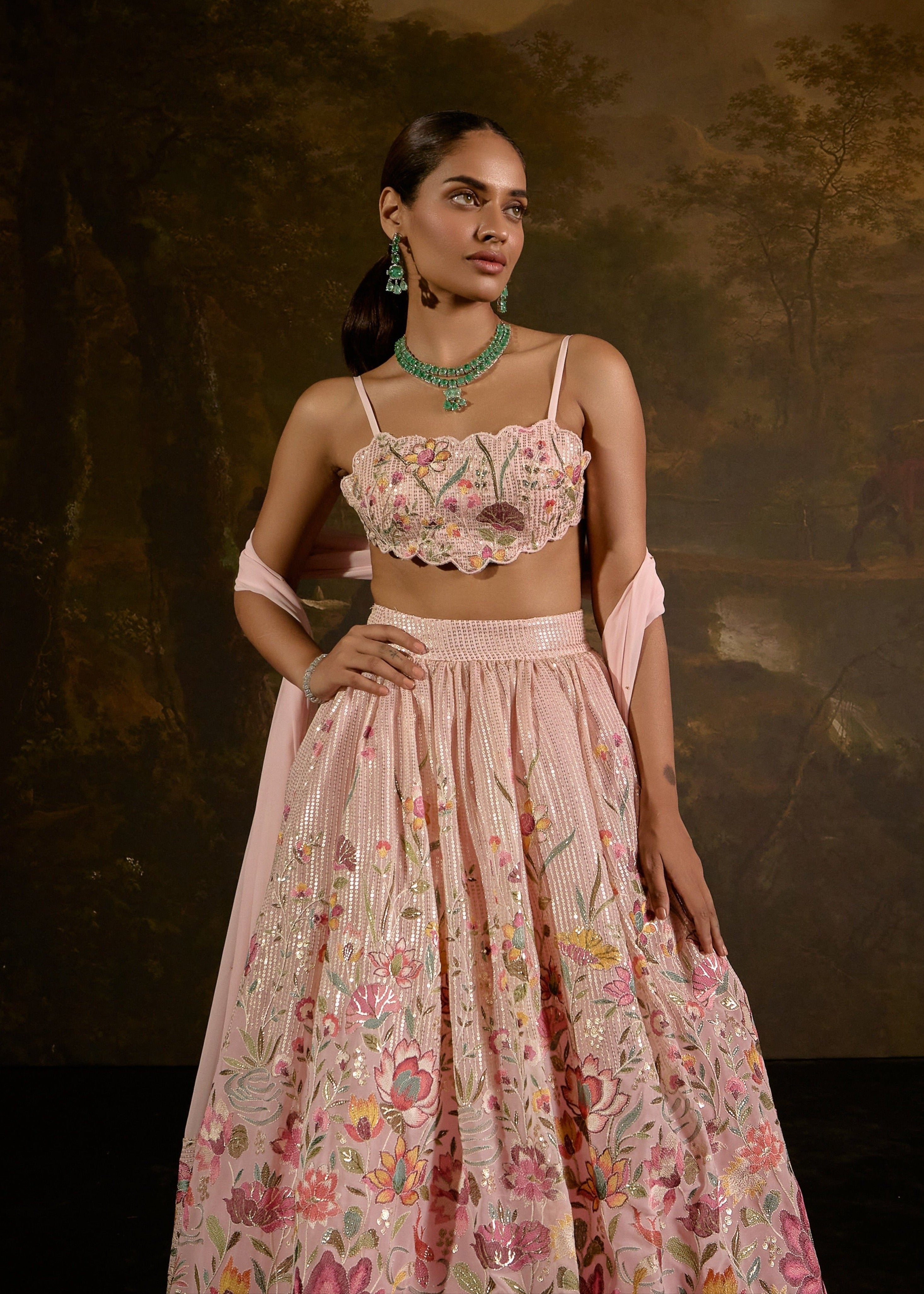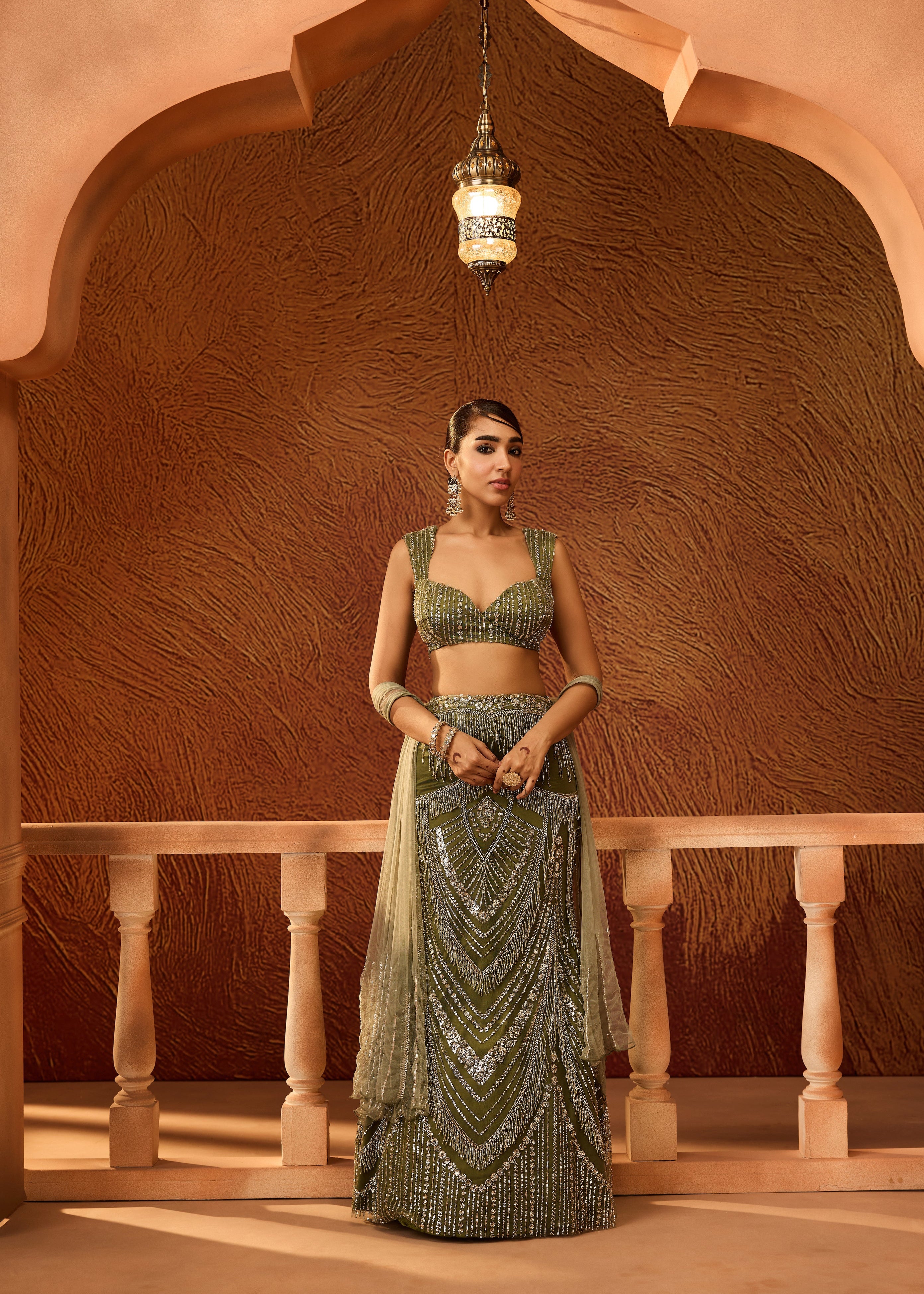 Jasmine Powder Blue Satin and Shimmer Chiffon Lehenga Set