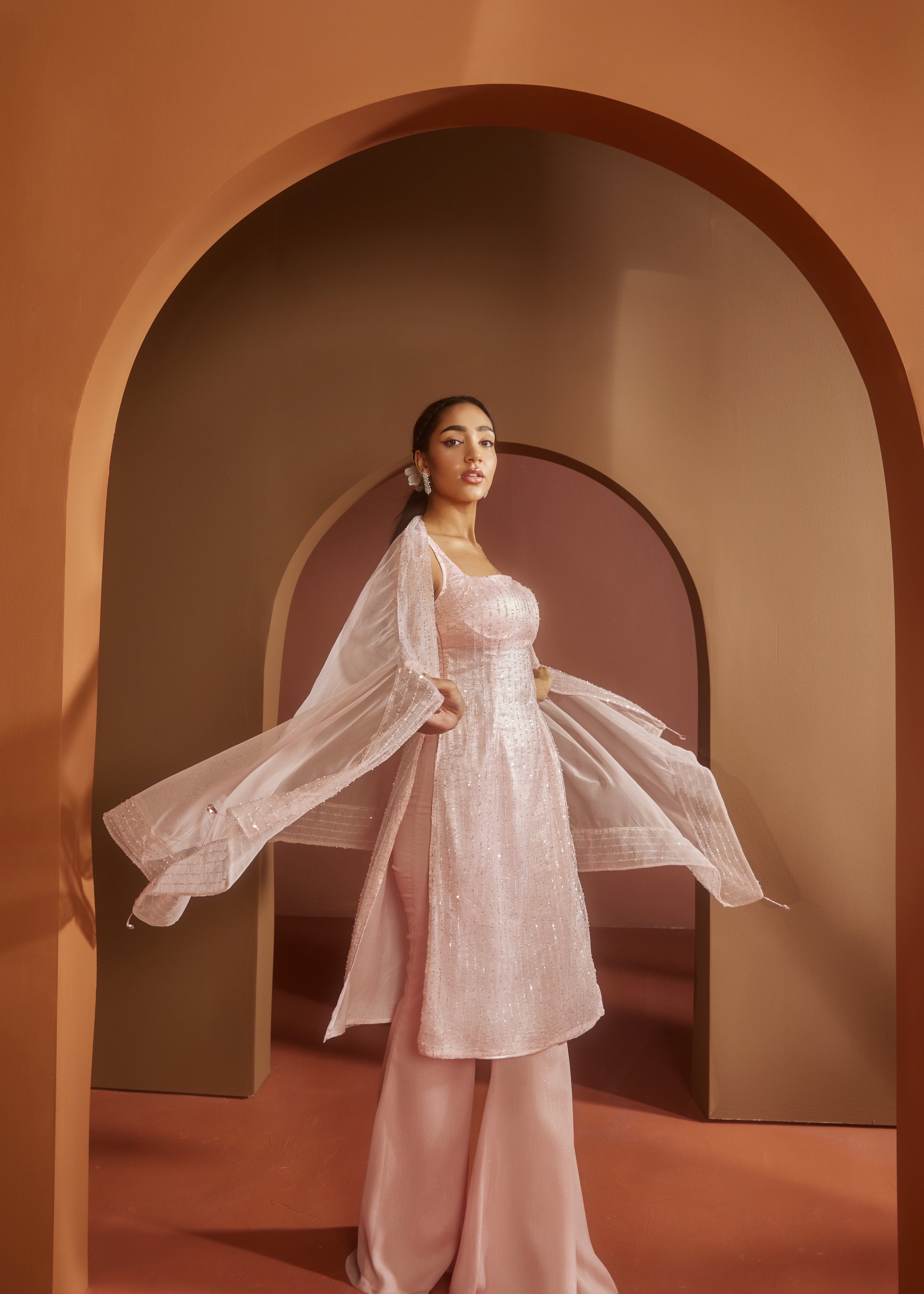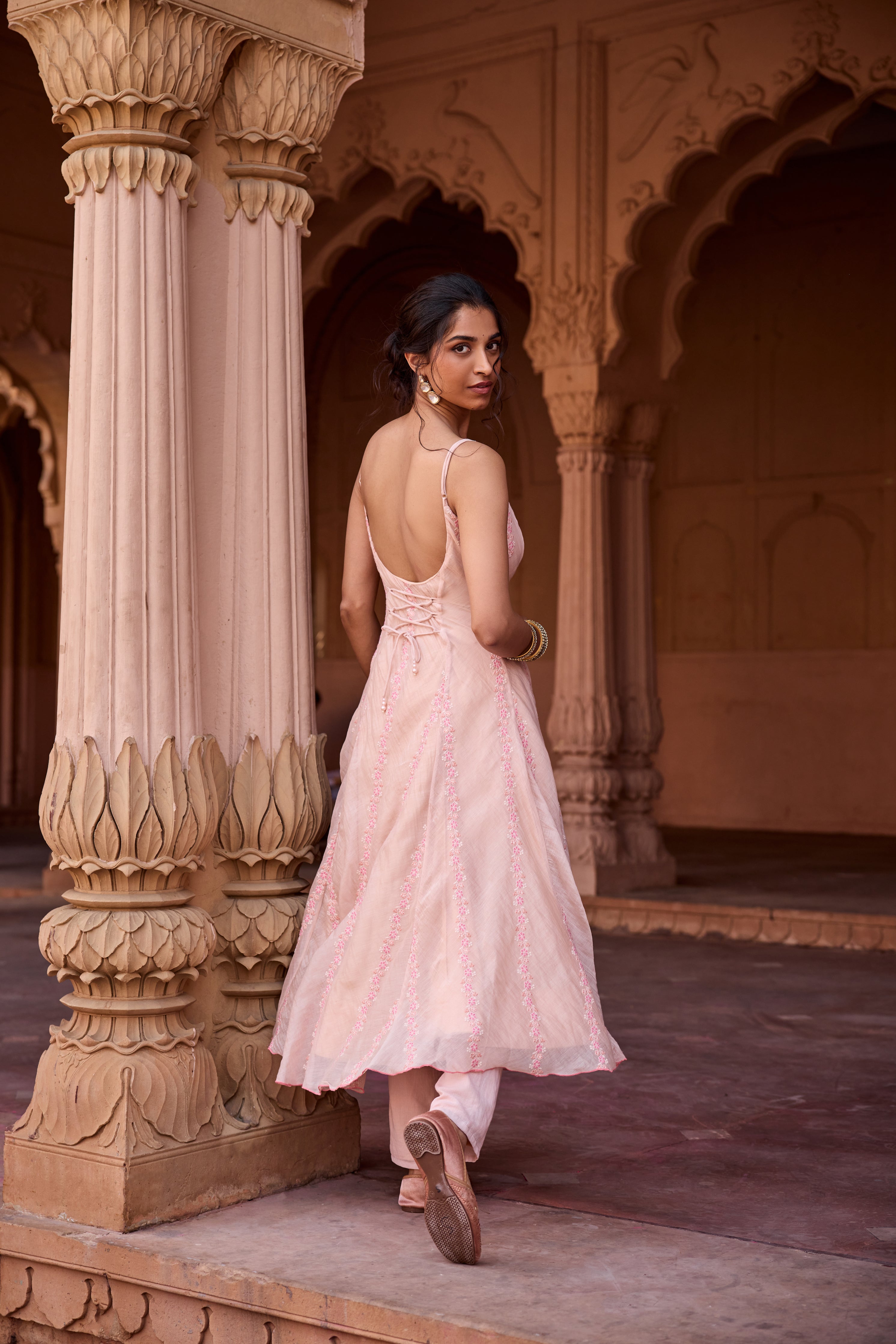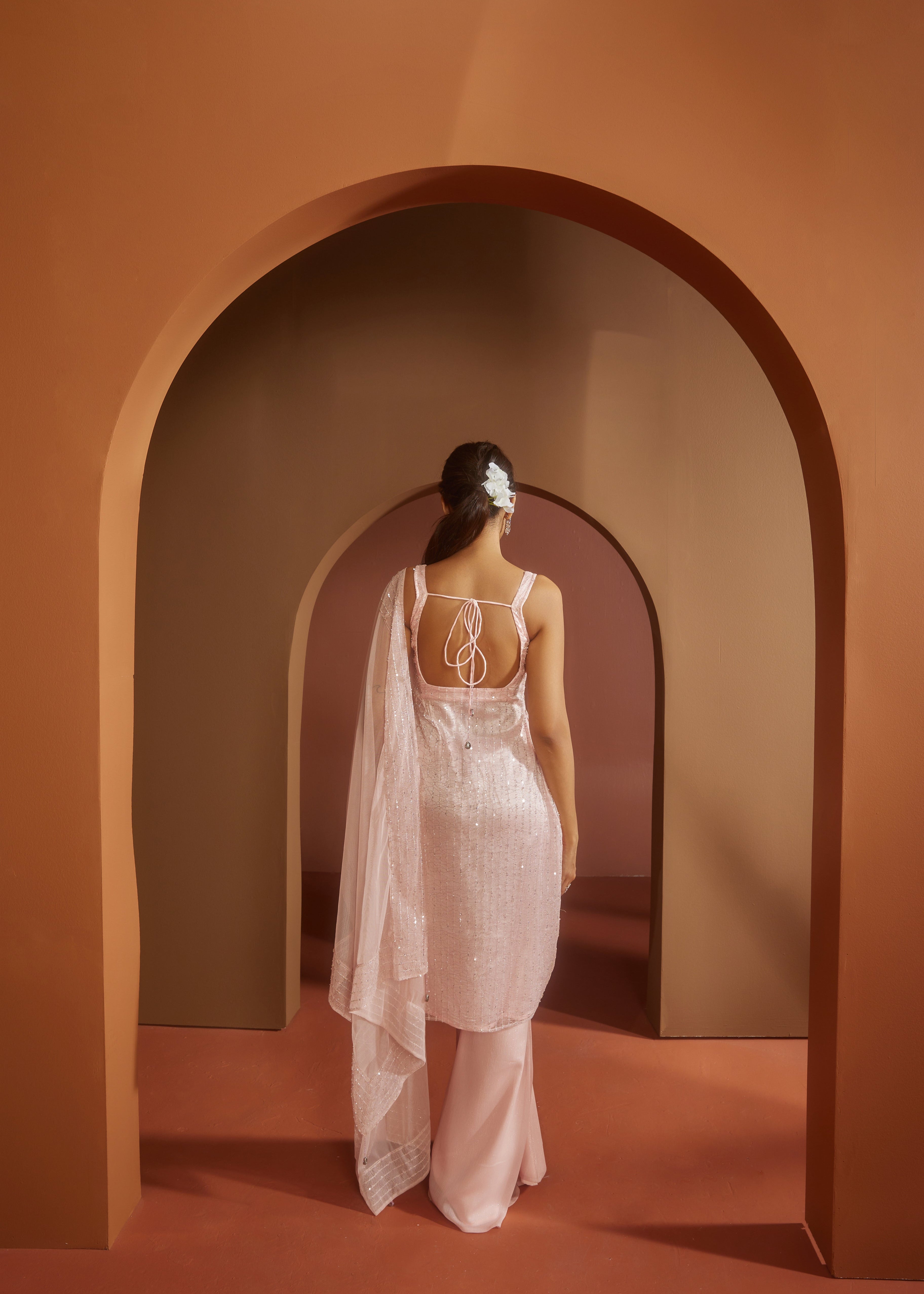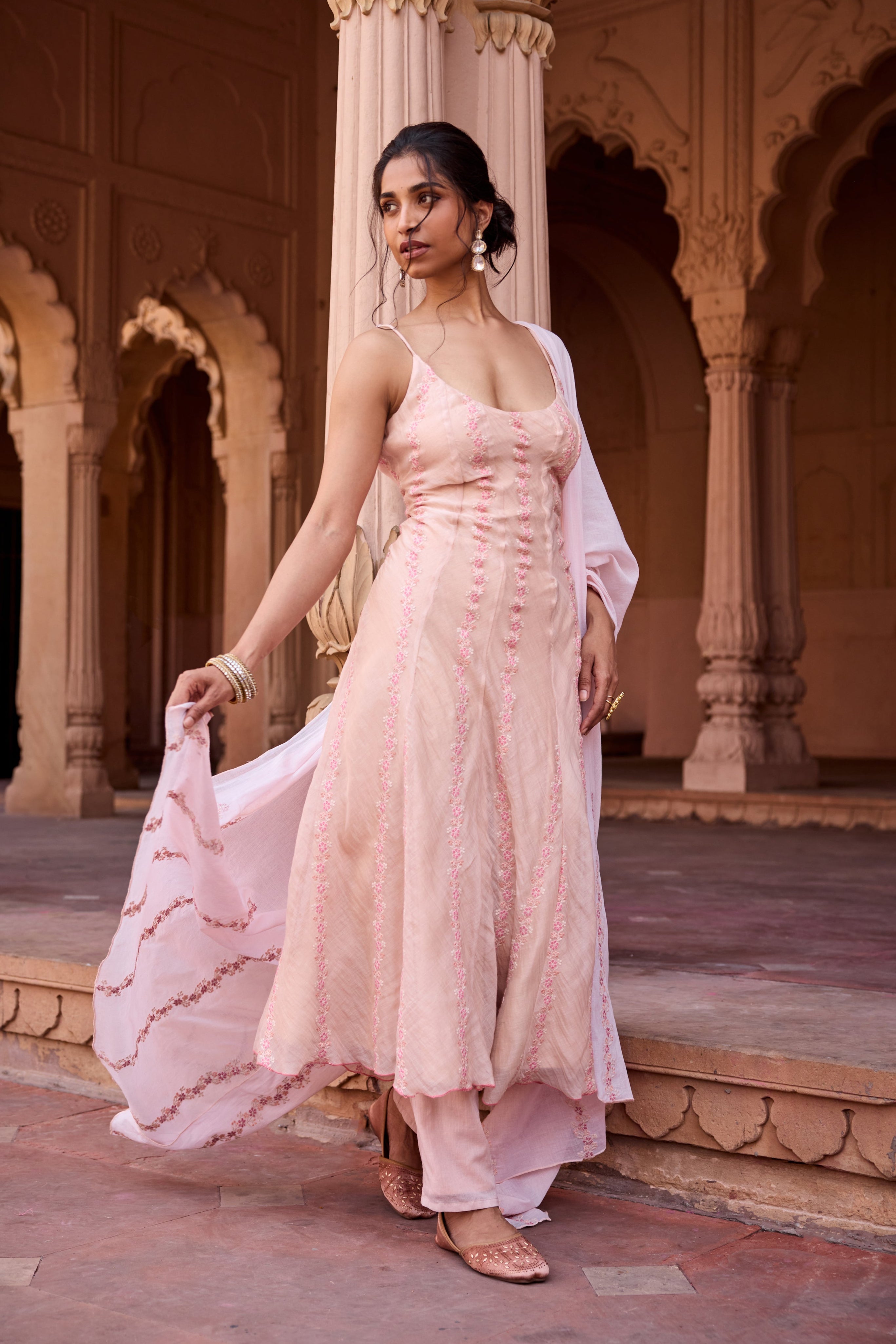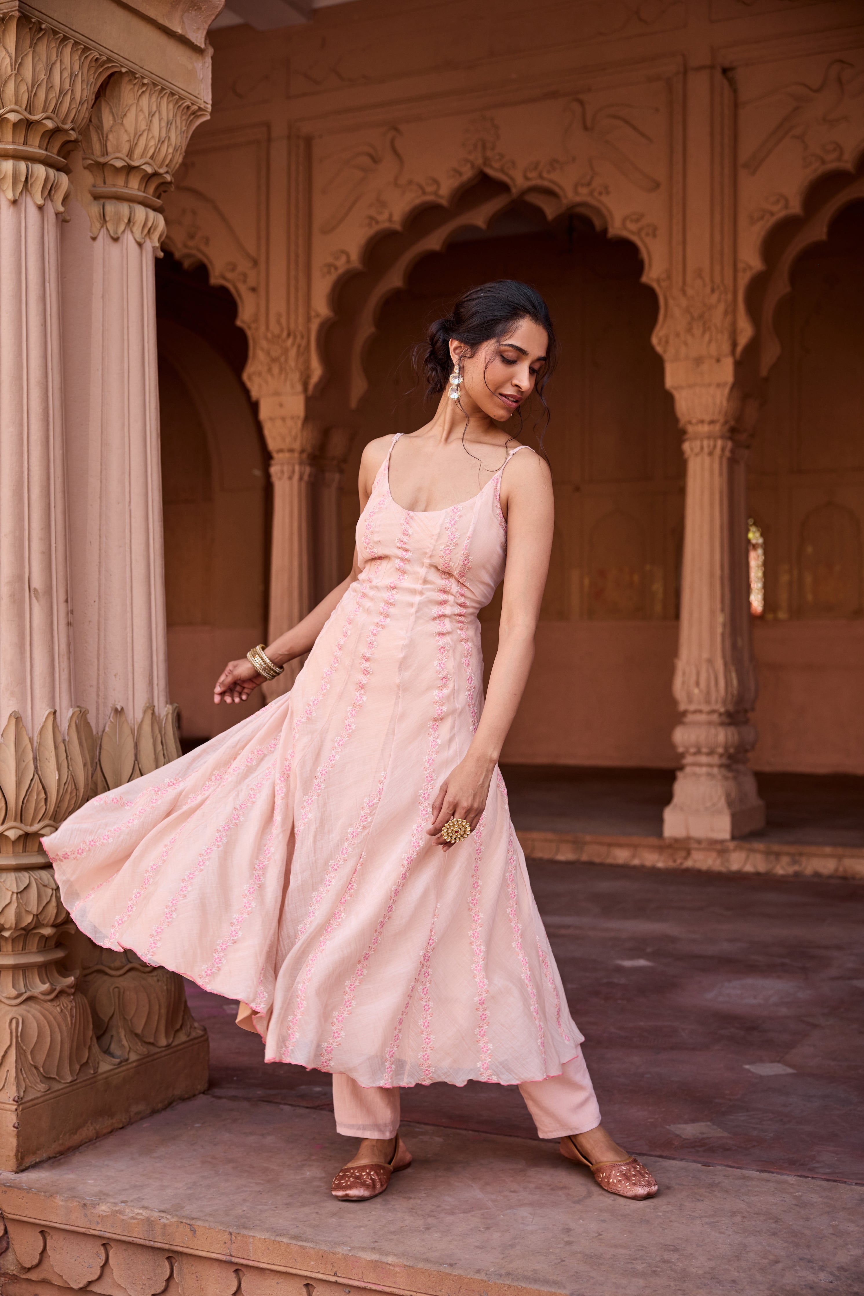Gulbaano Light Pink Embroidered Sleeveless Kurta Set