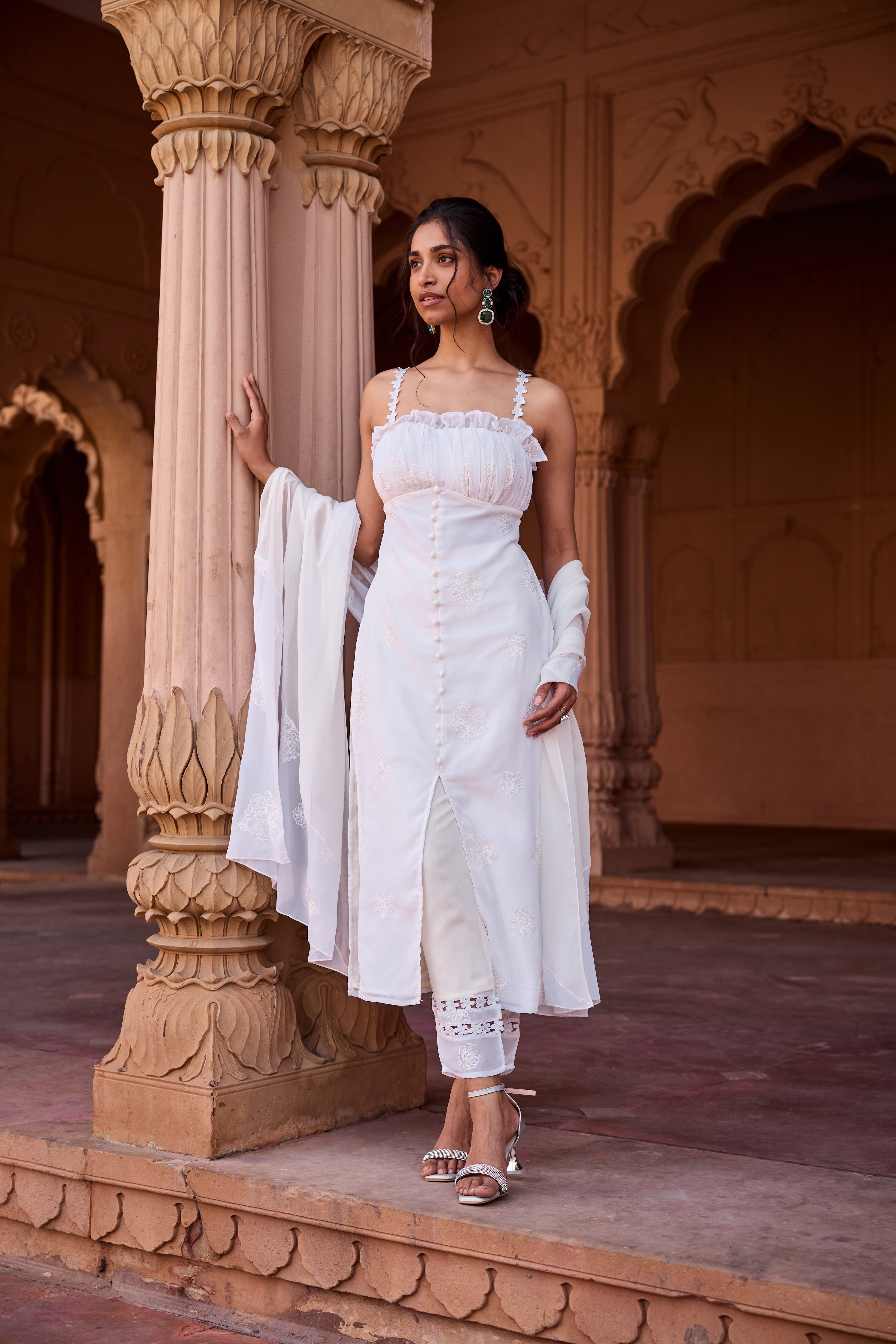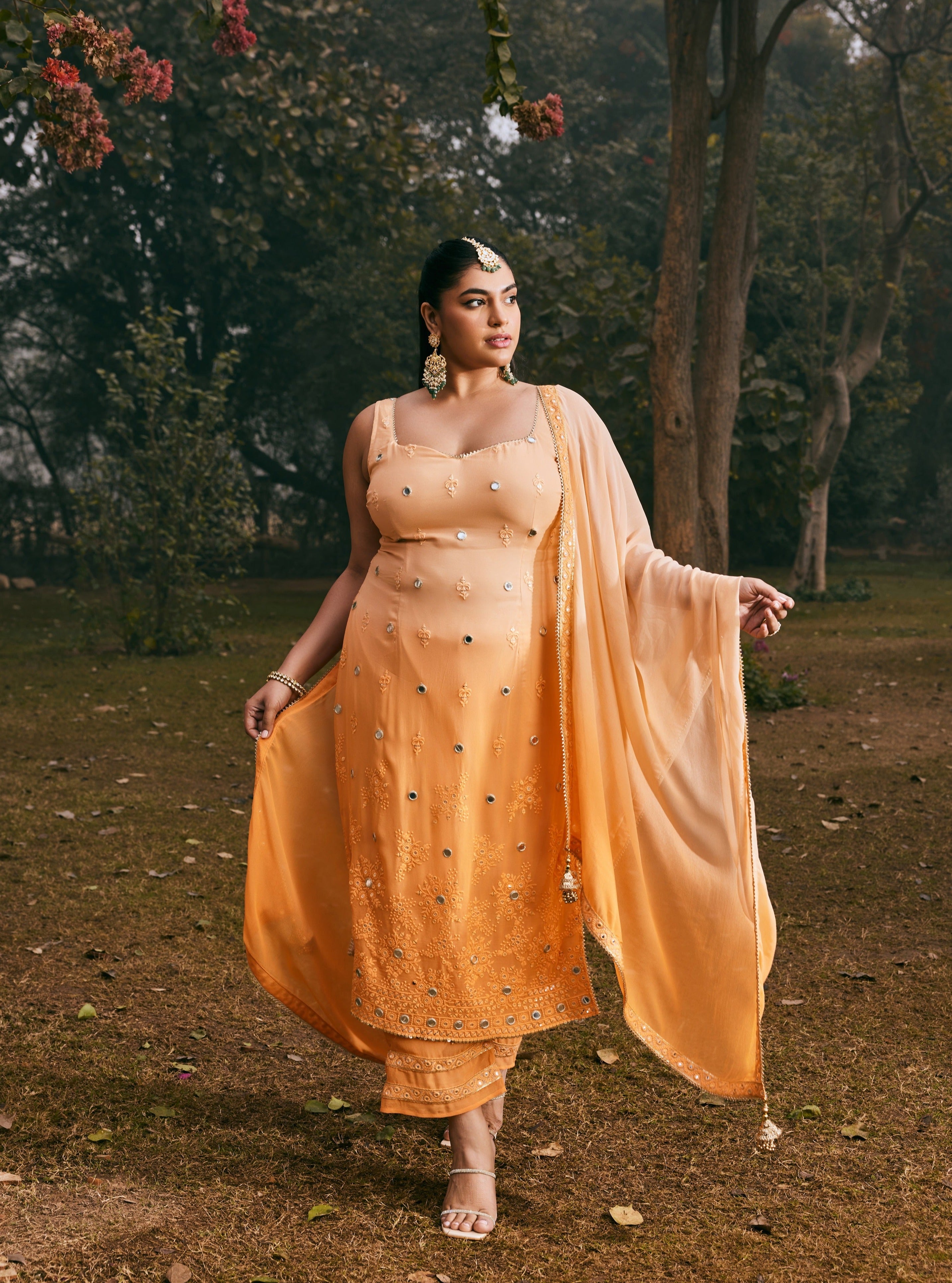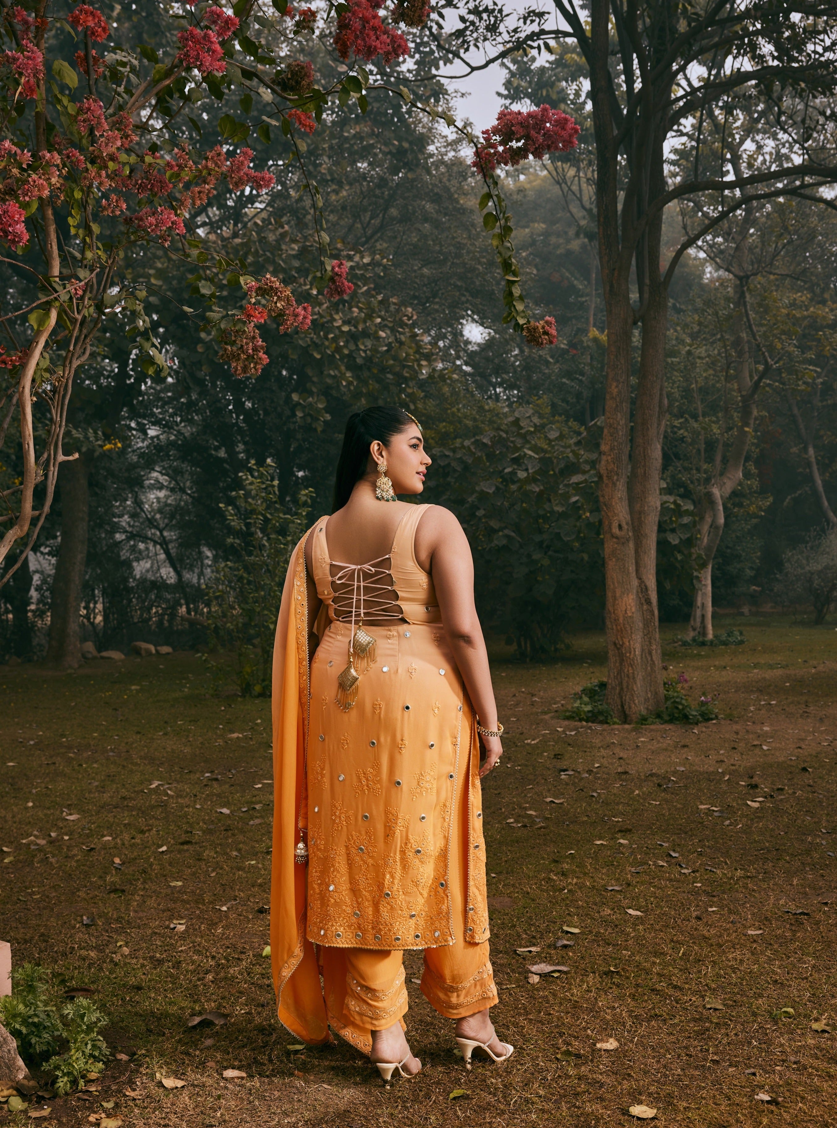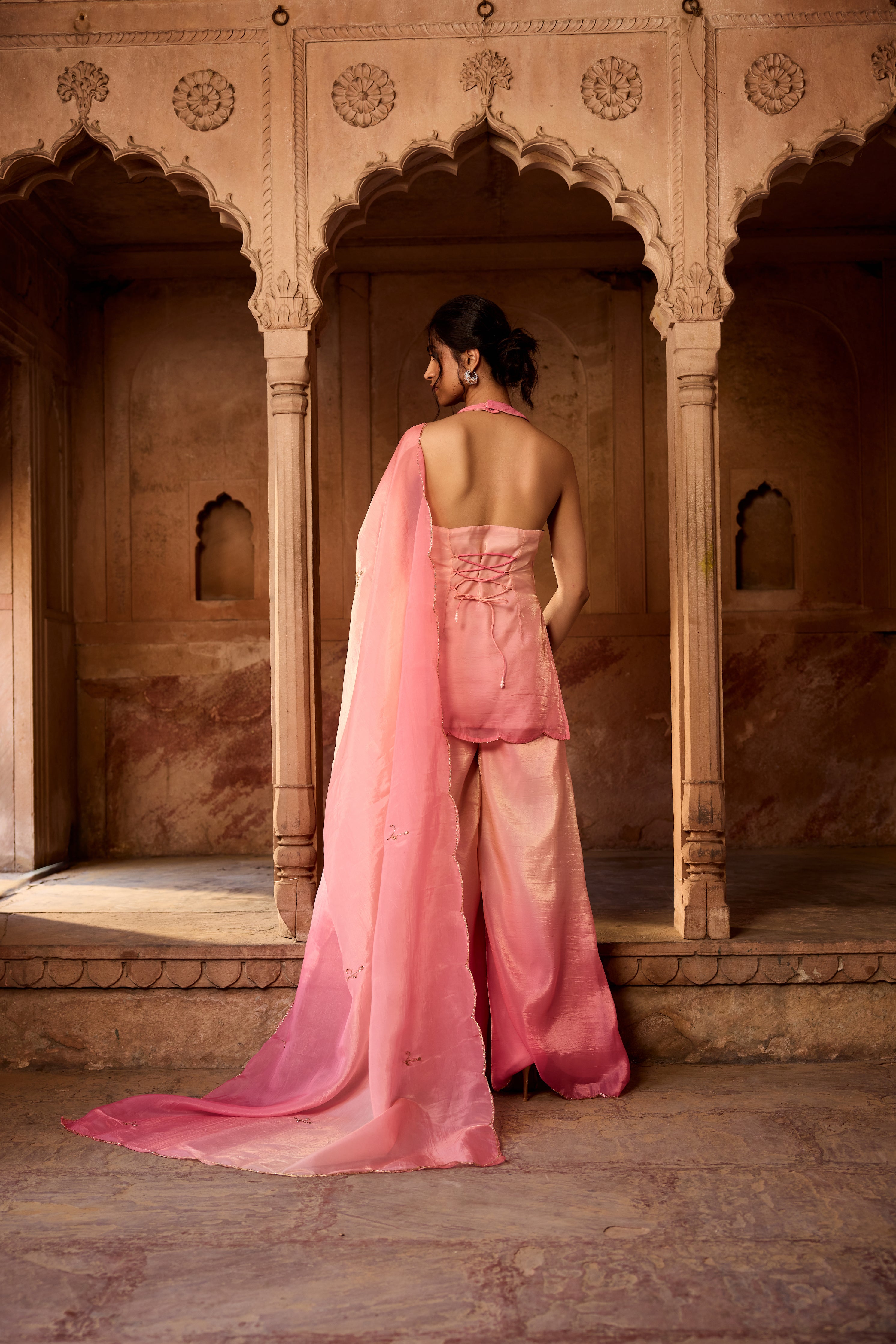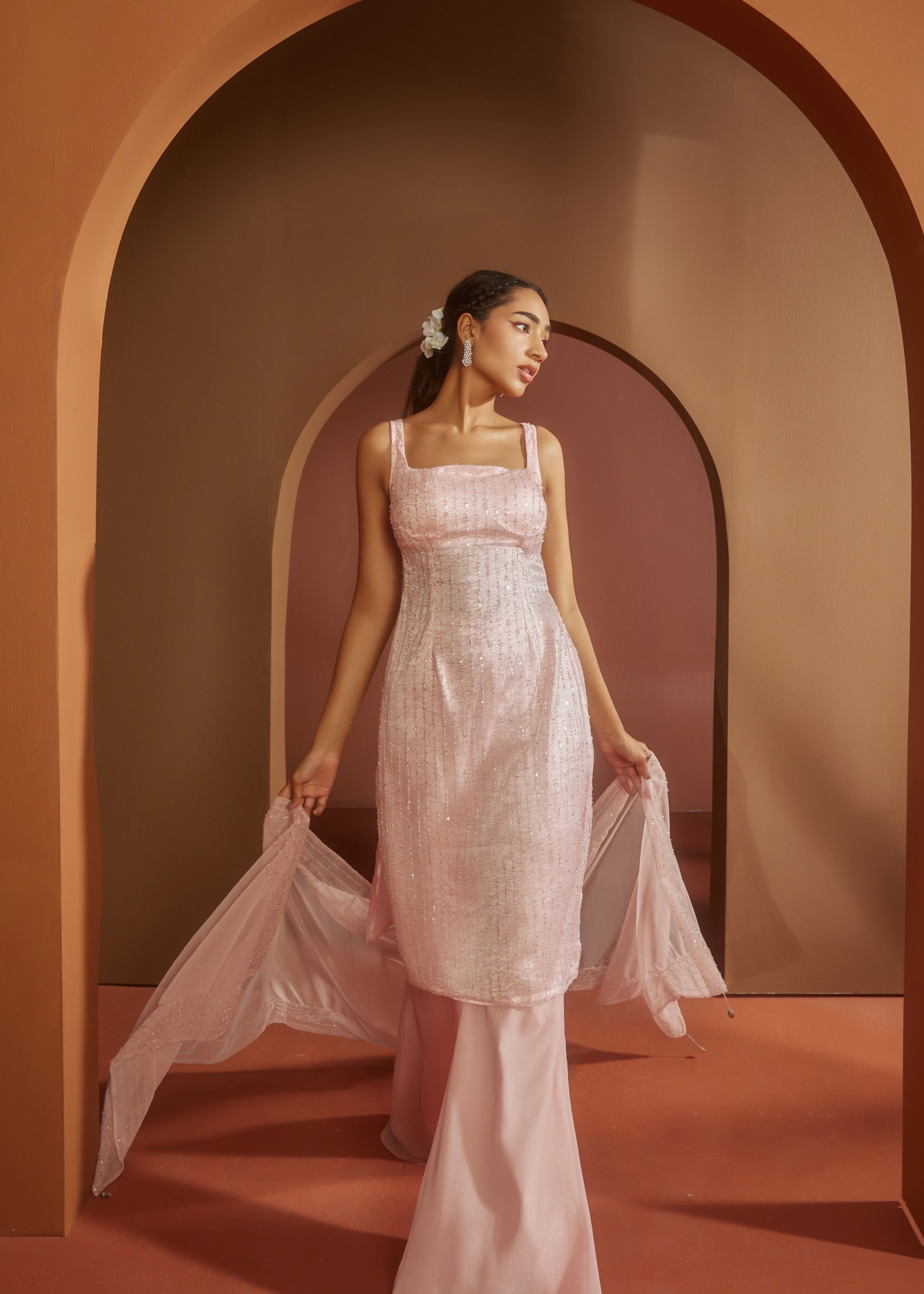 Gulbaano Light Pink Embroidered Sleeveless Kurta Set