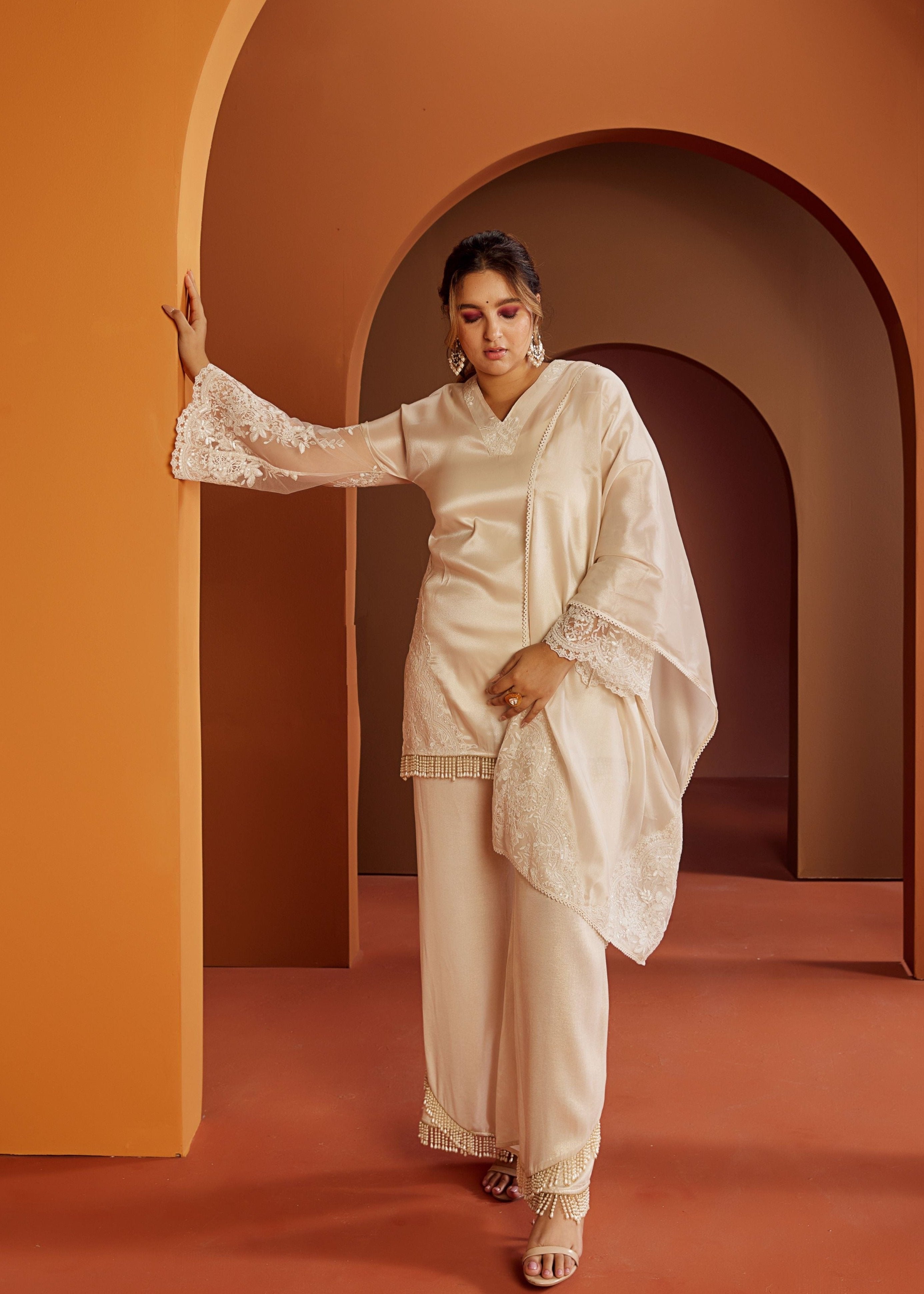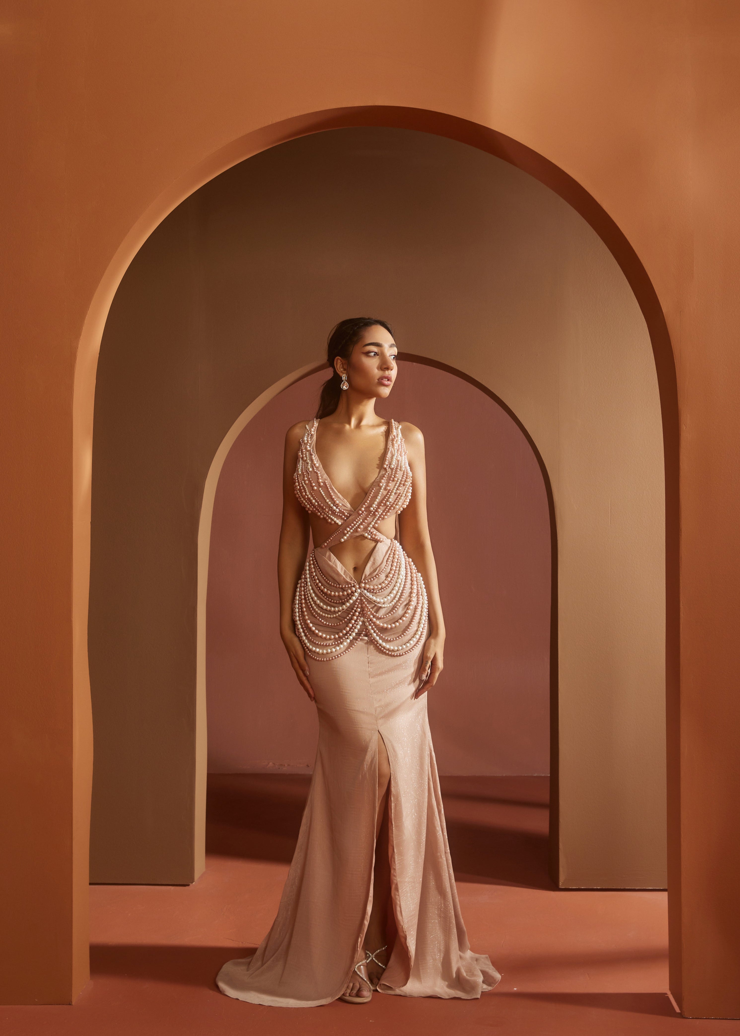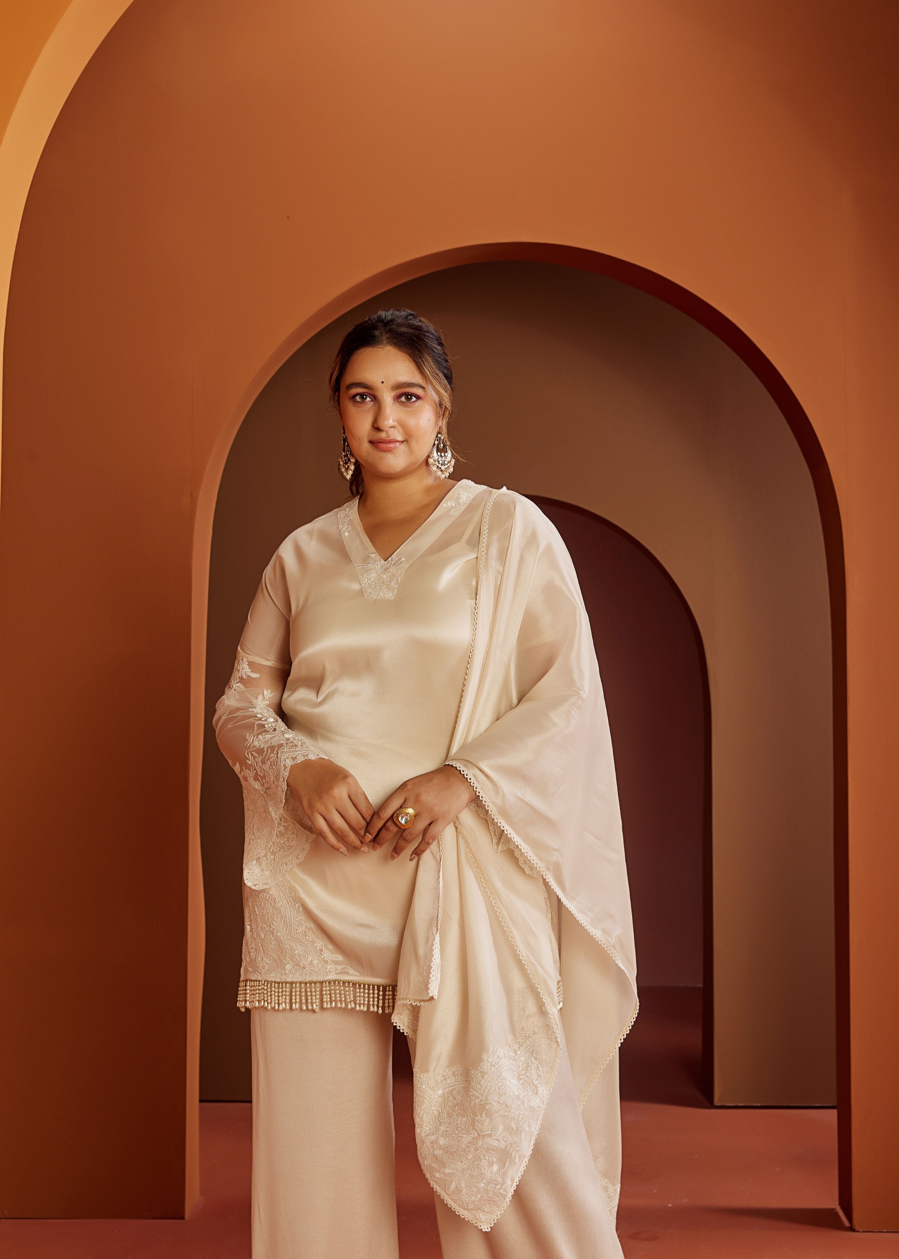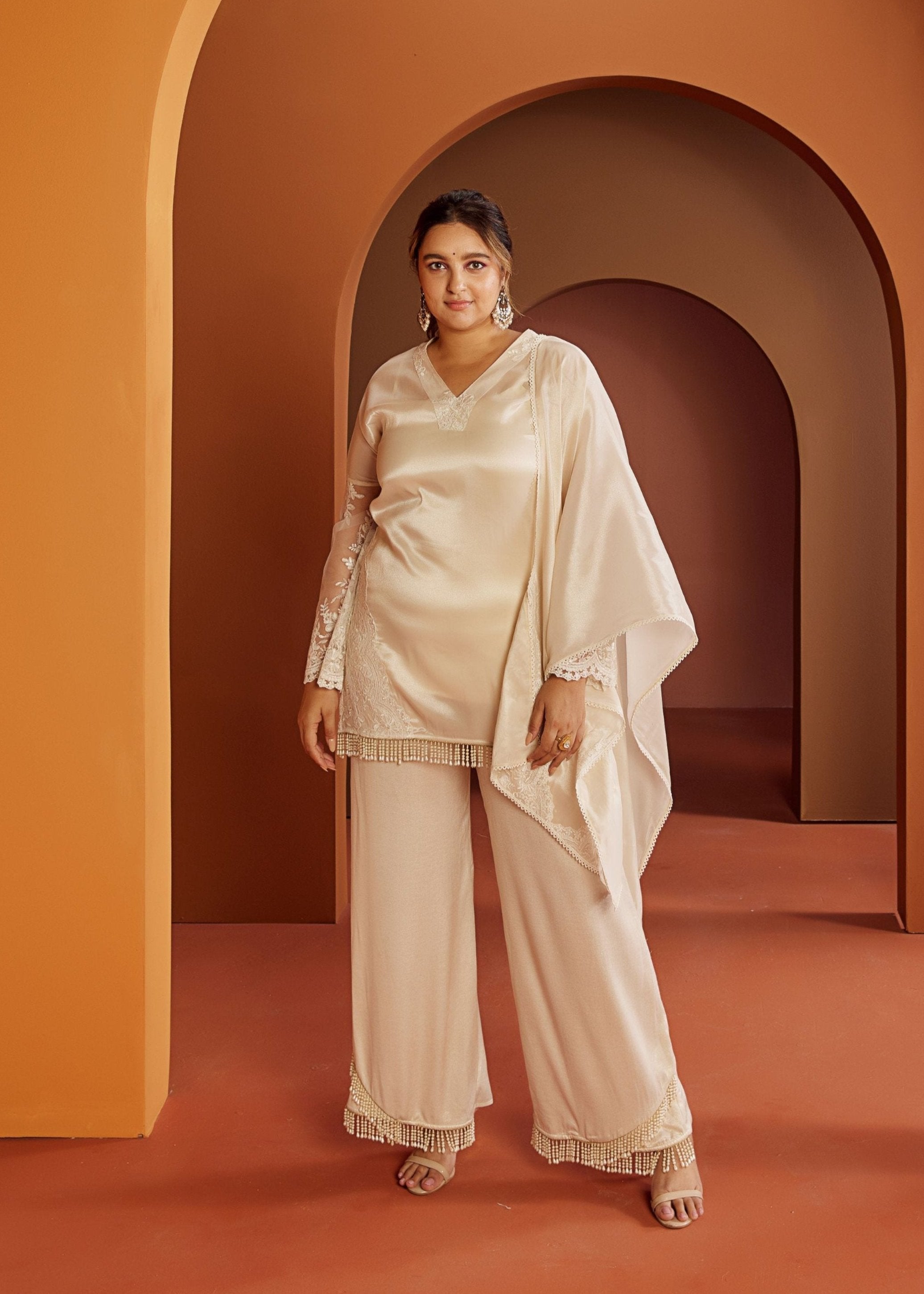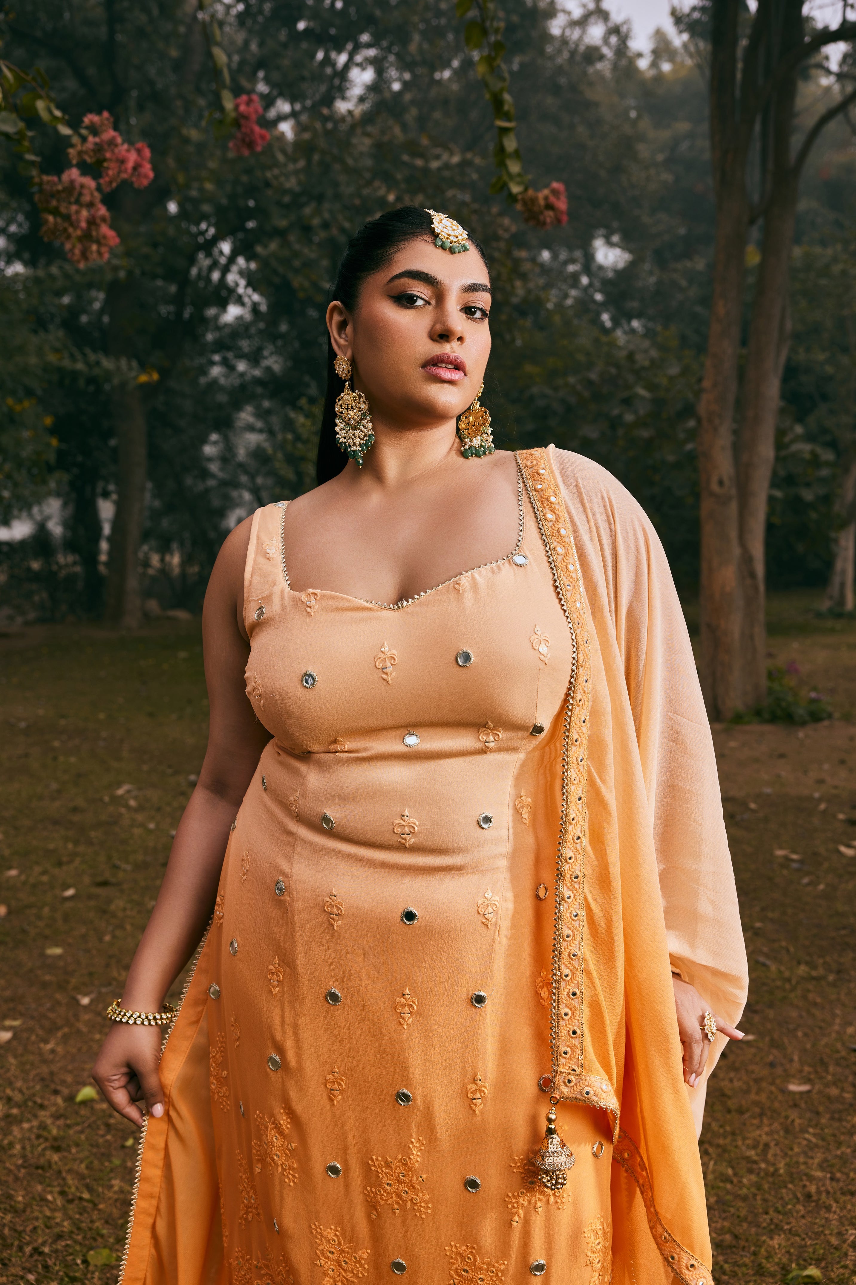 Gulbaano Light Pink Embroidered Sleeveless Kurta Set