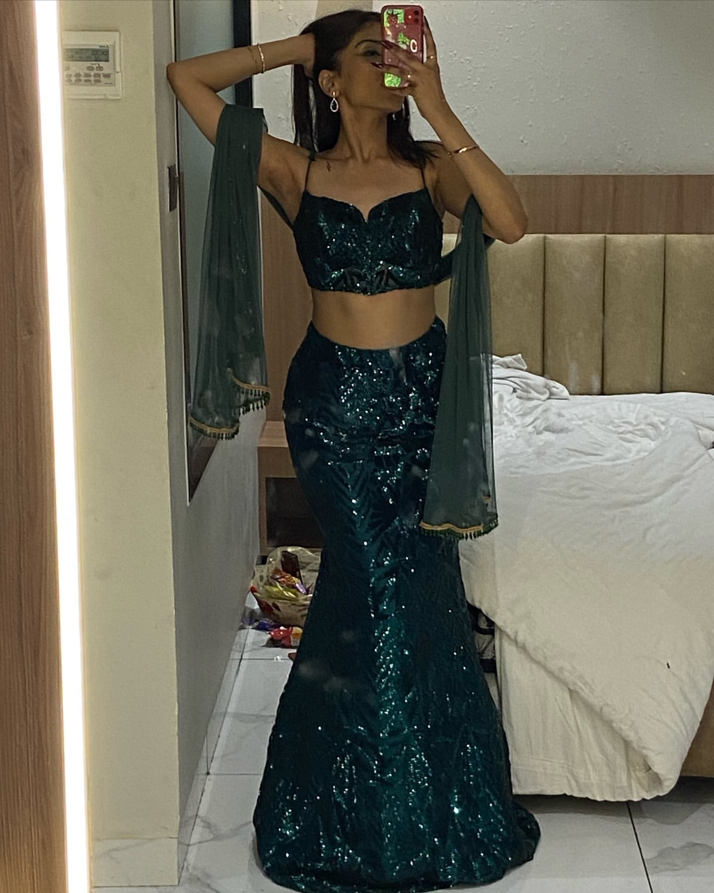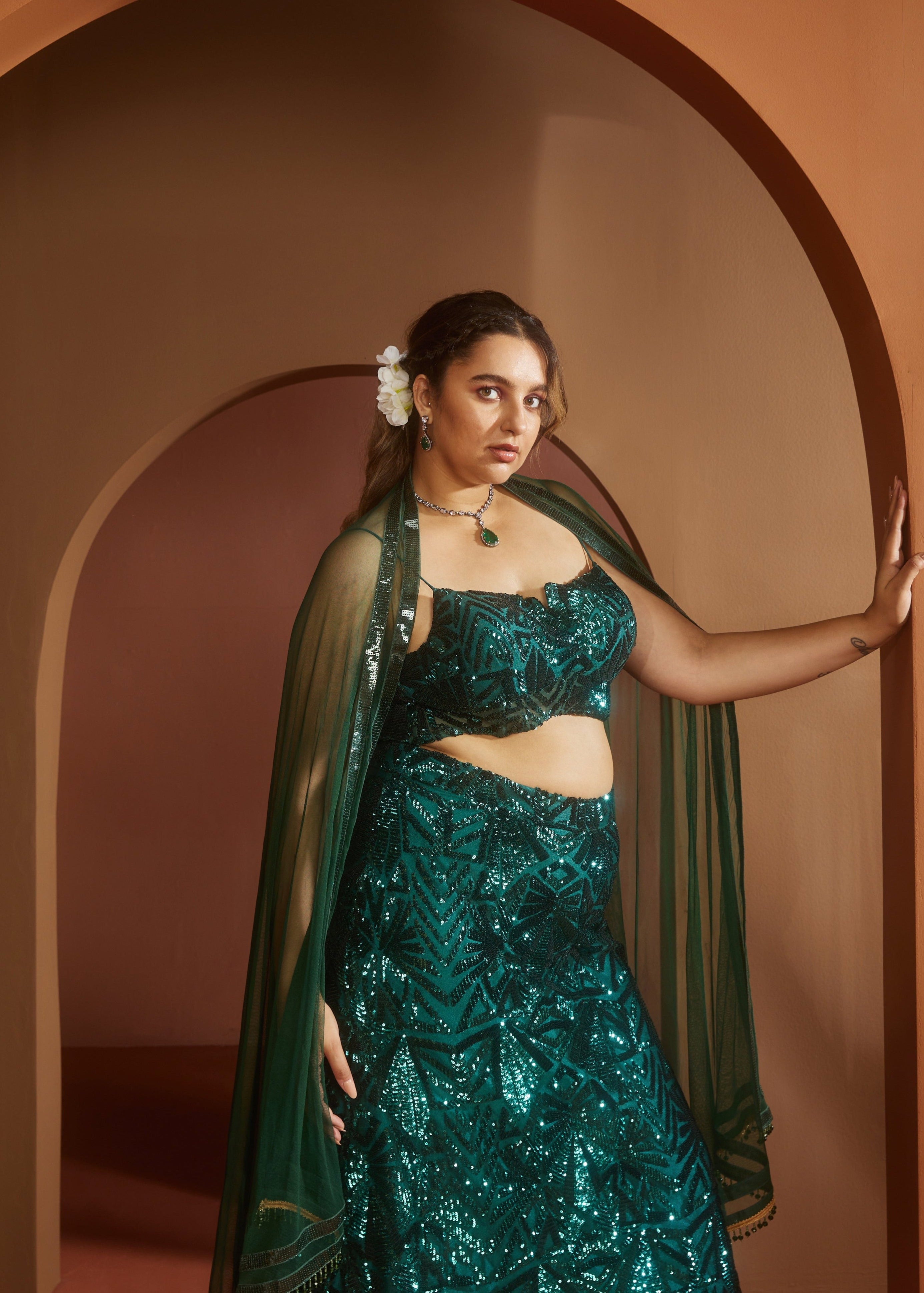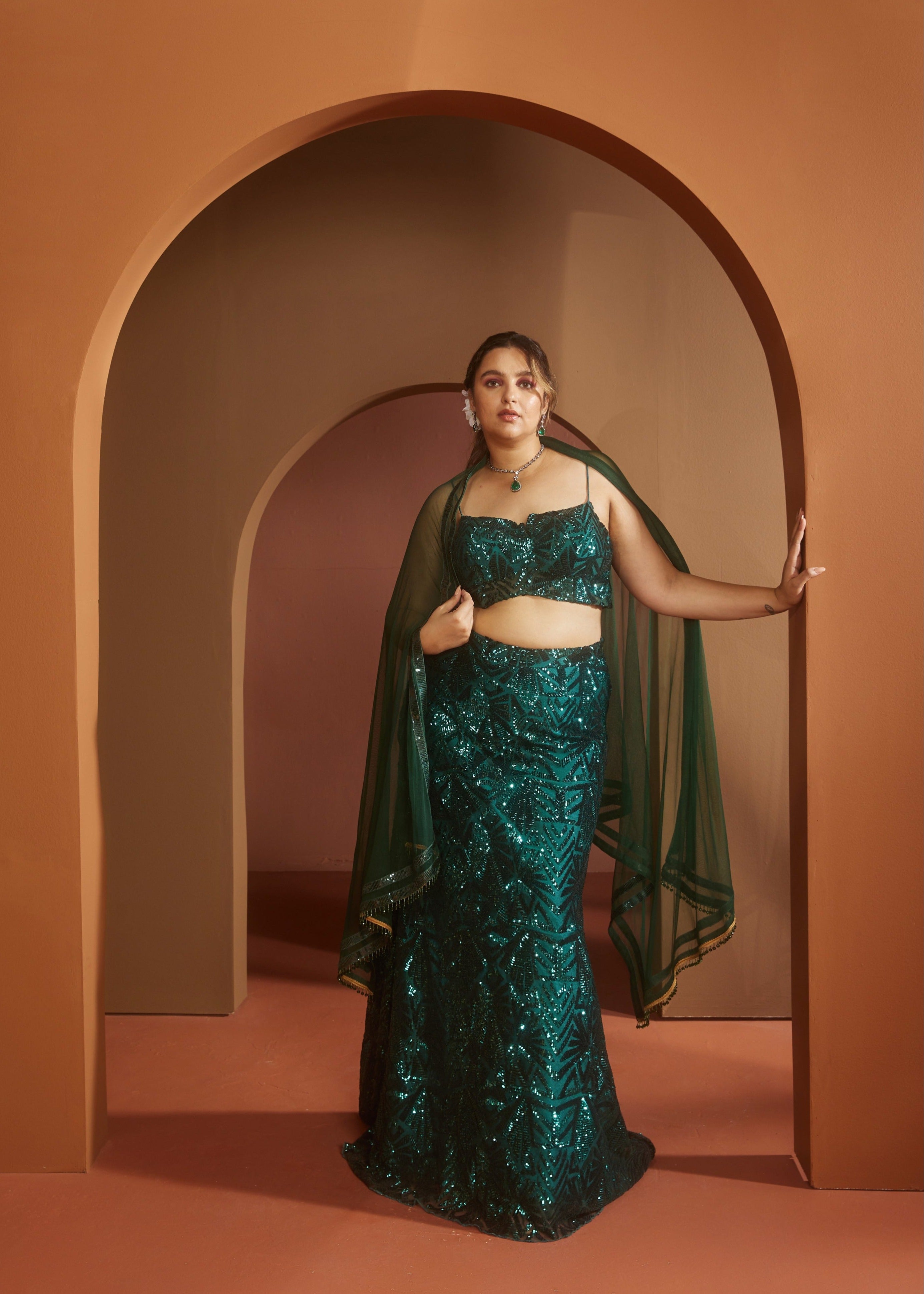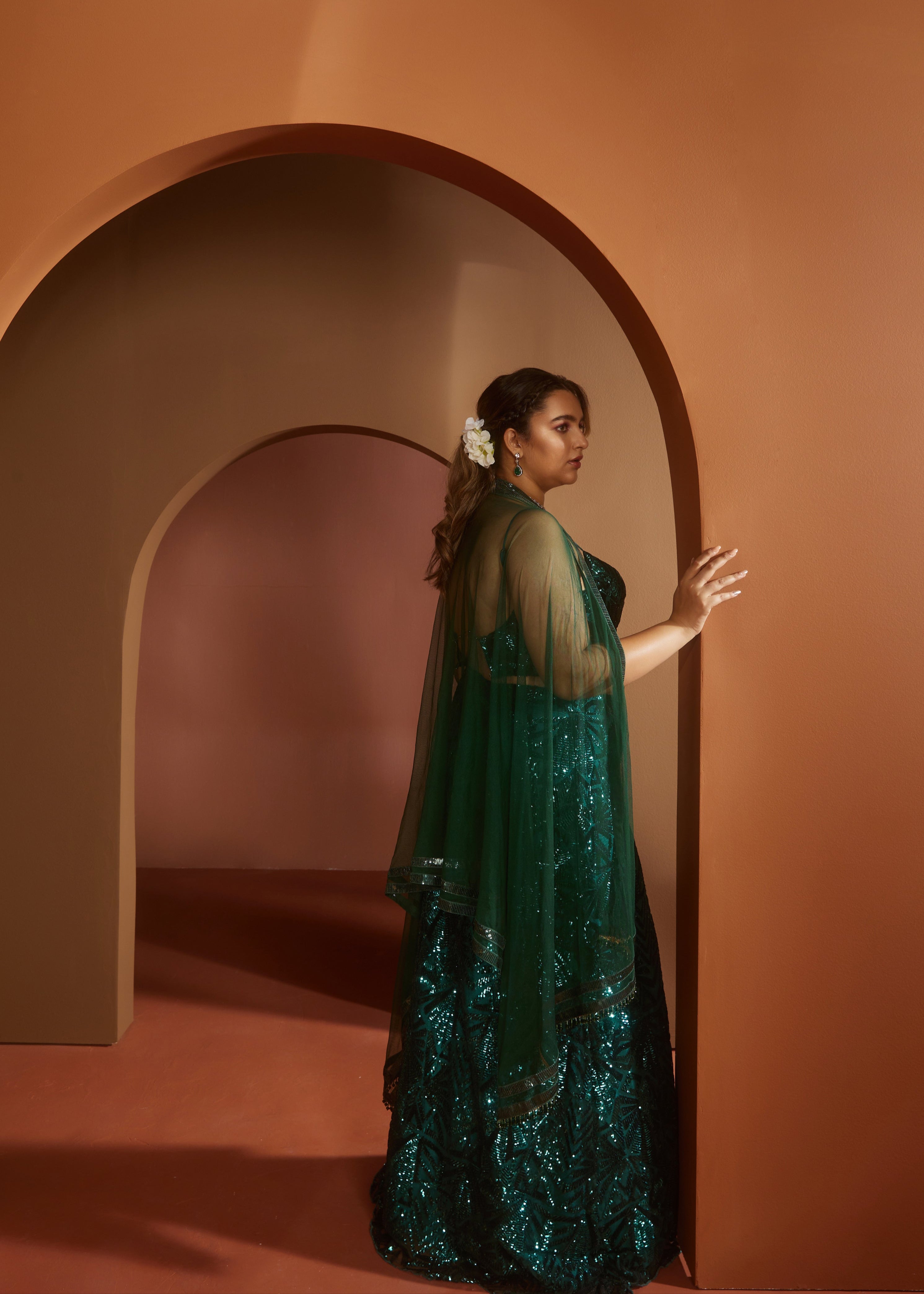 Fariha Green Embroidered Corset Anarkali Suit Set