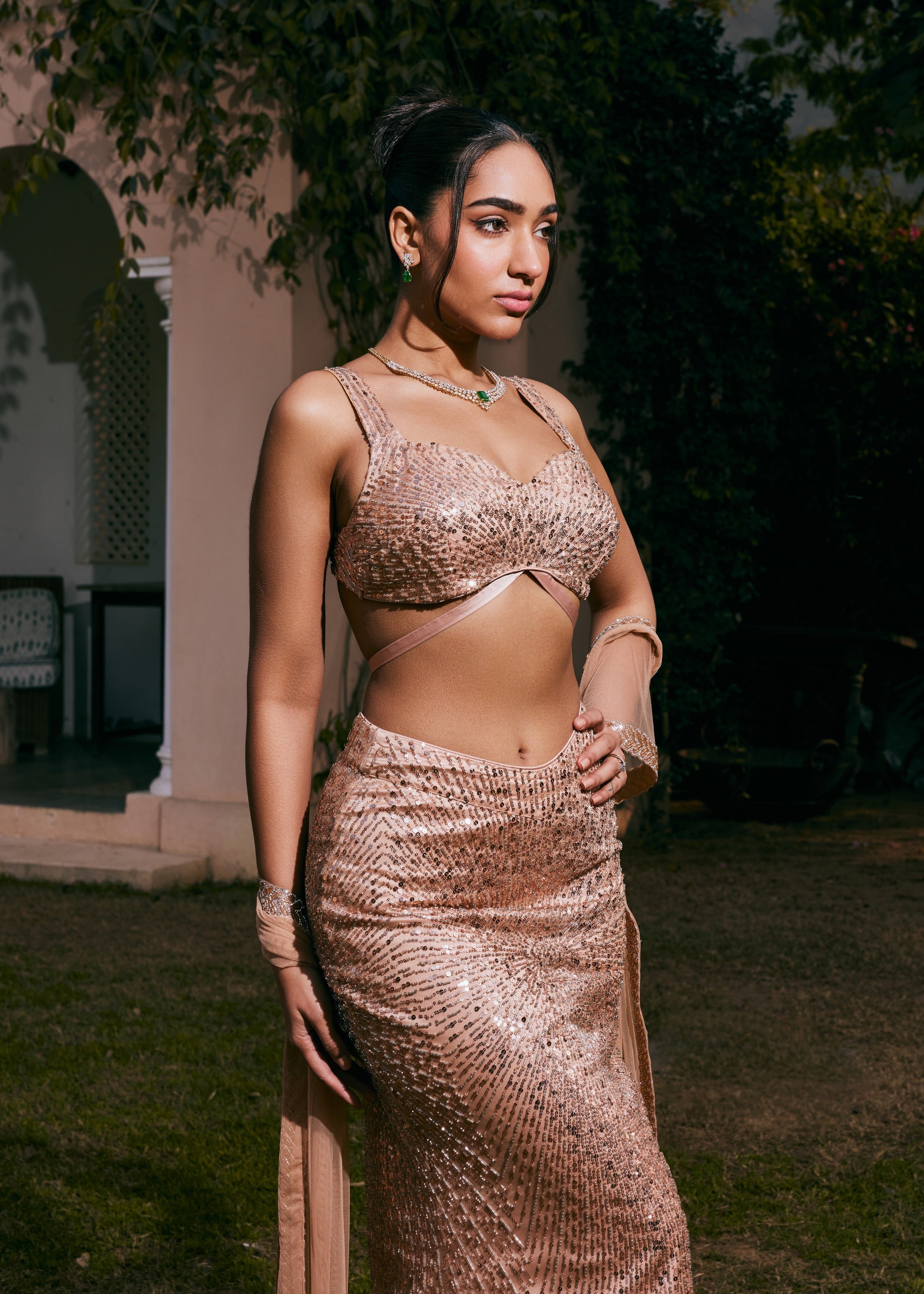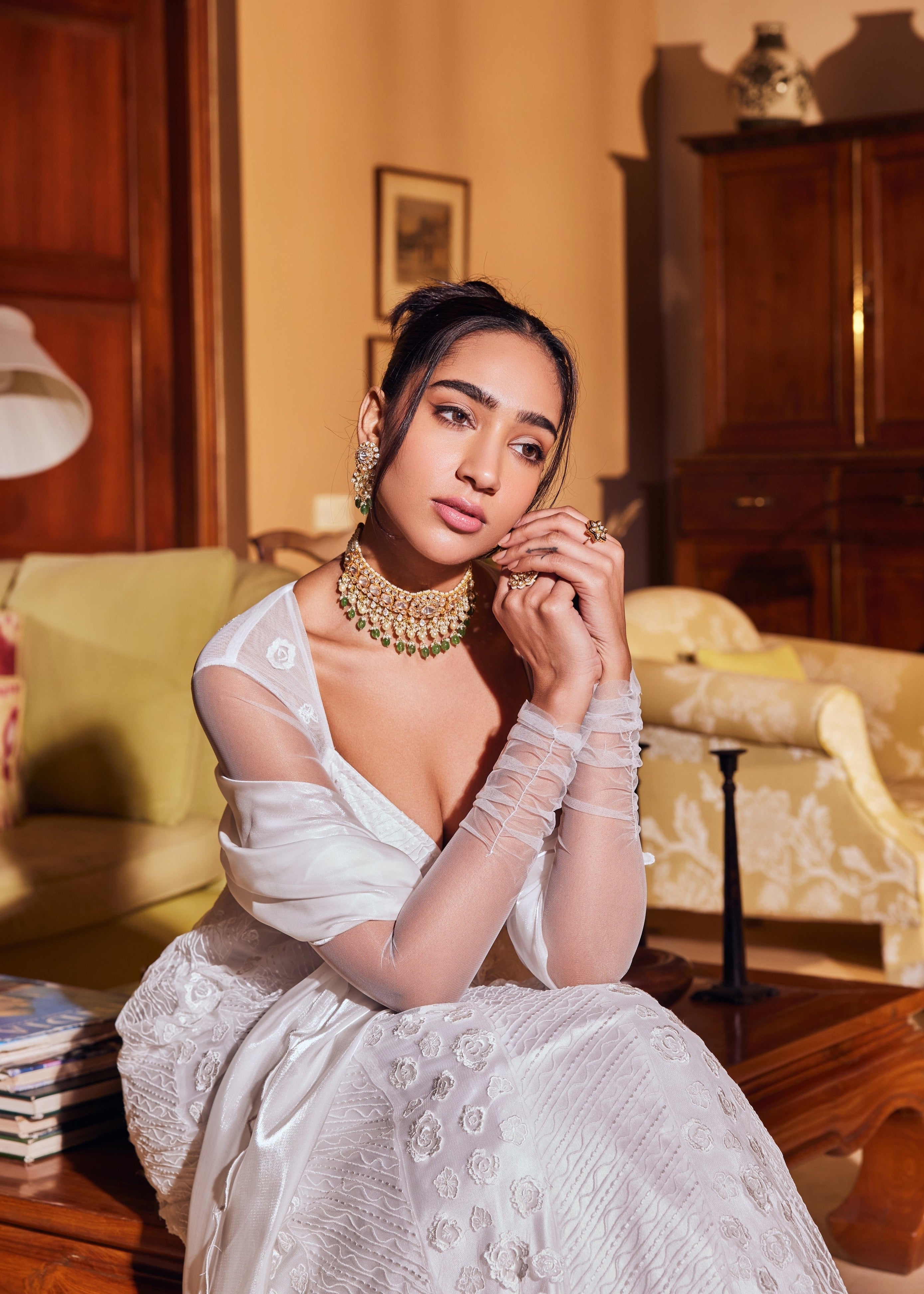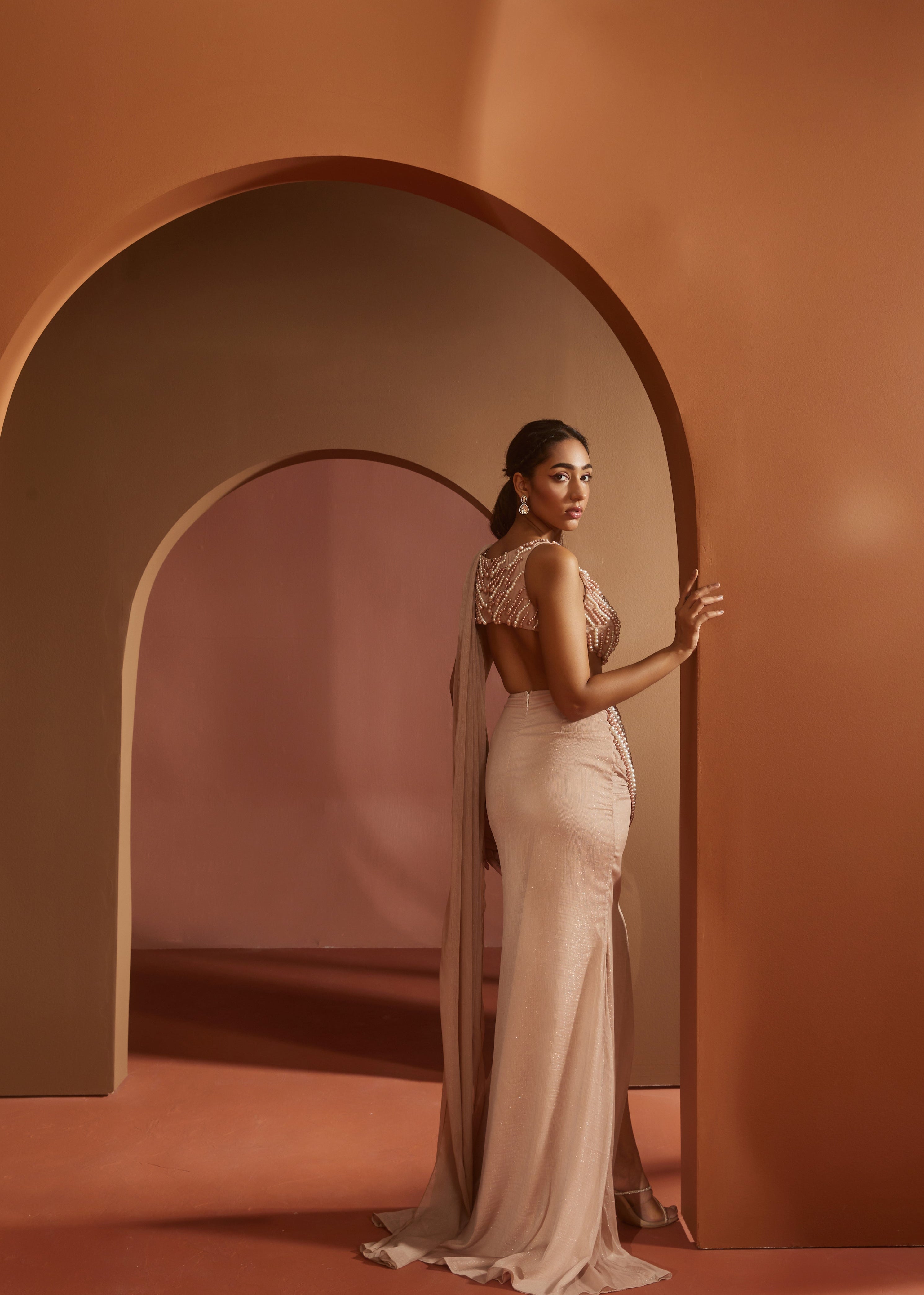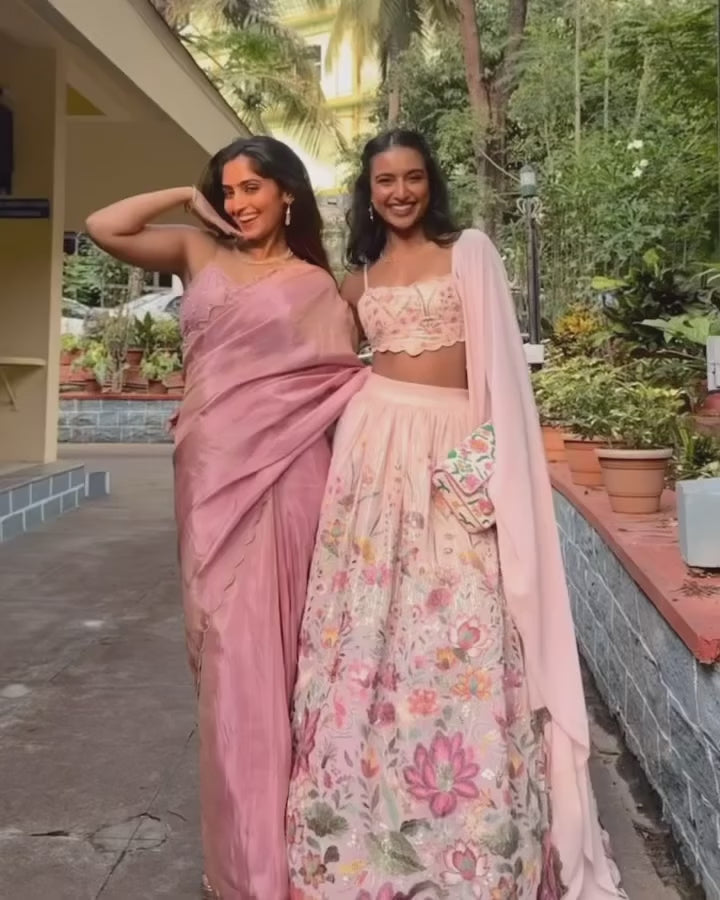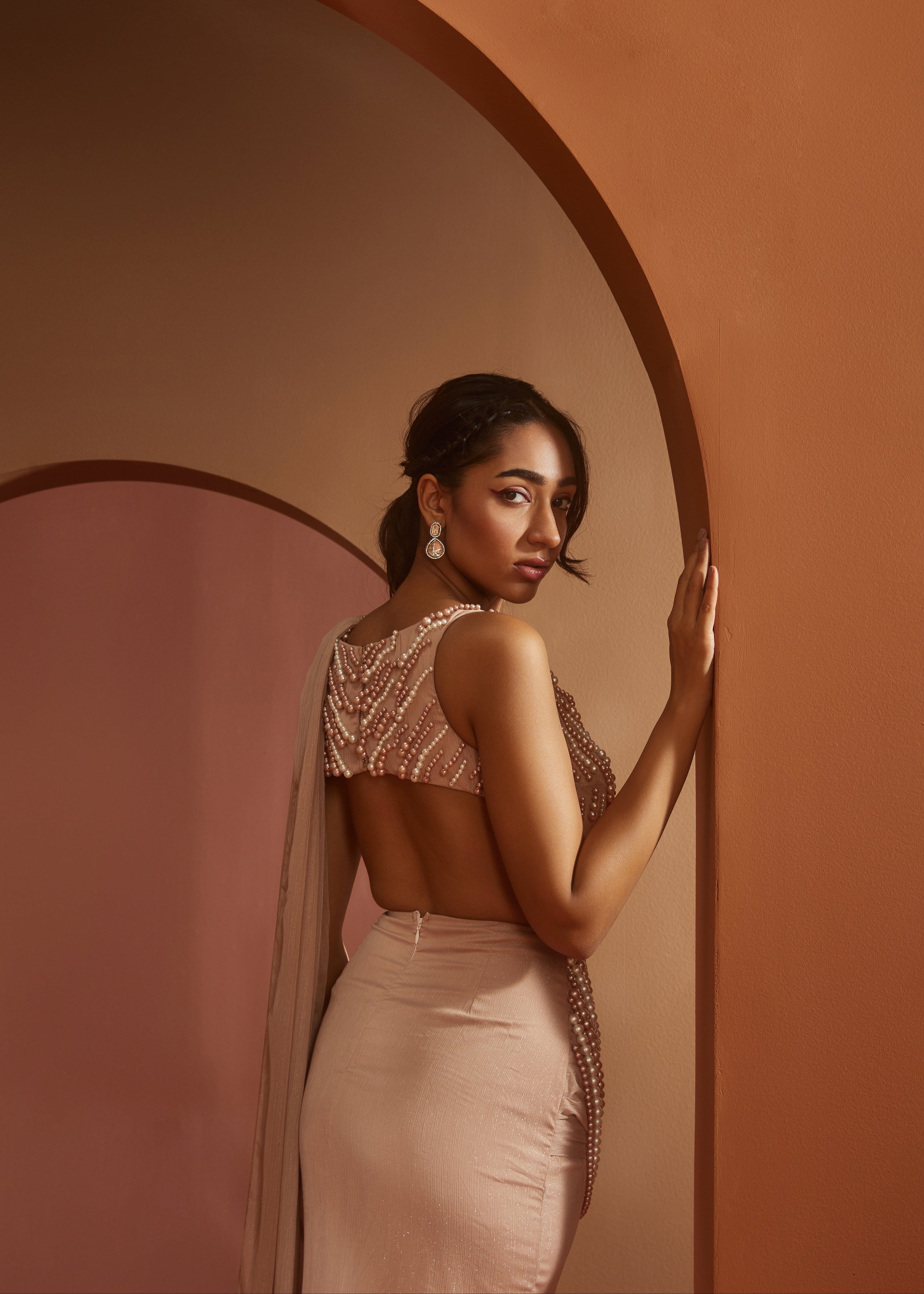 Sarika Pink Flower Embroidery Pre- Draped Saree Set