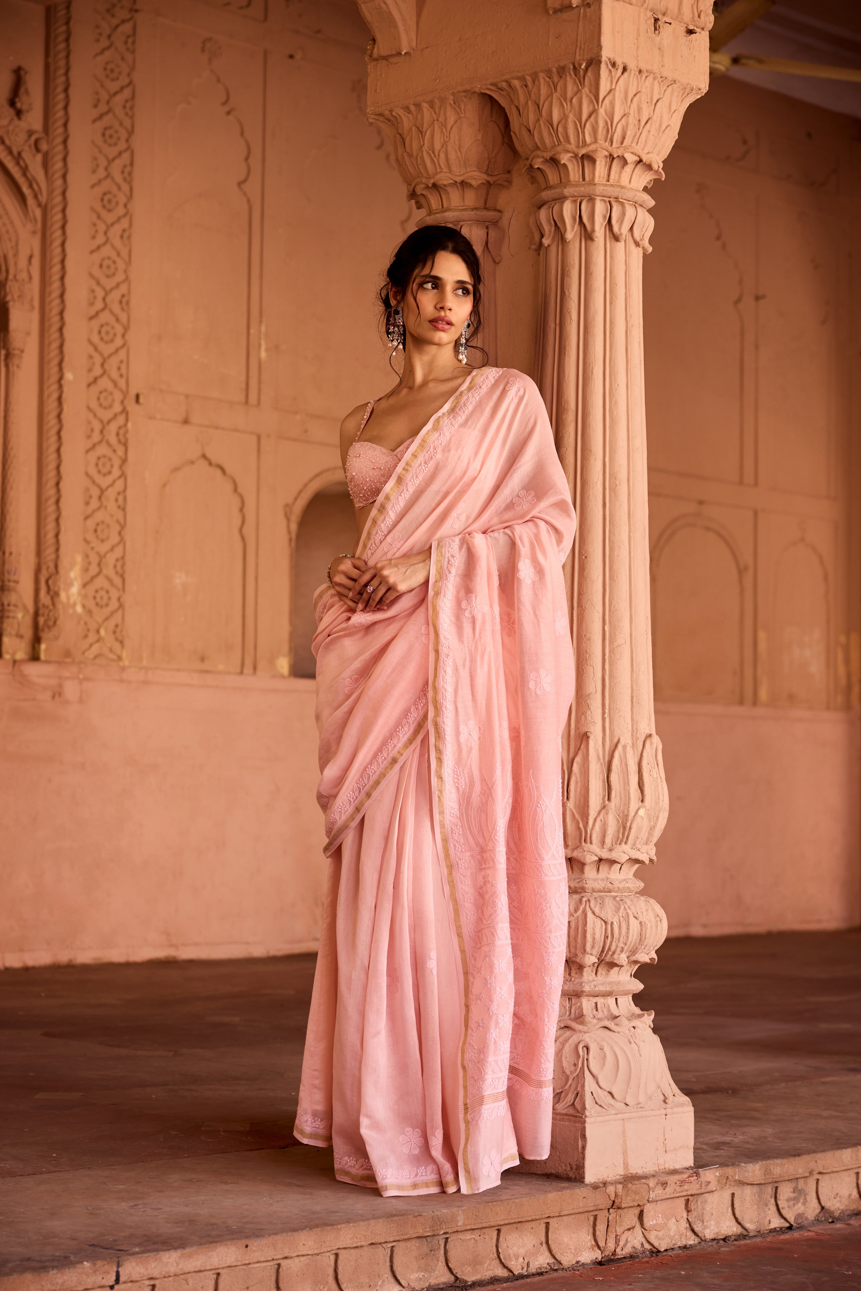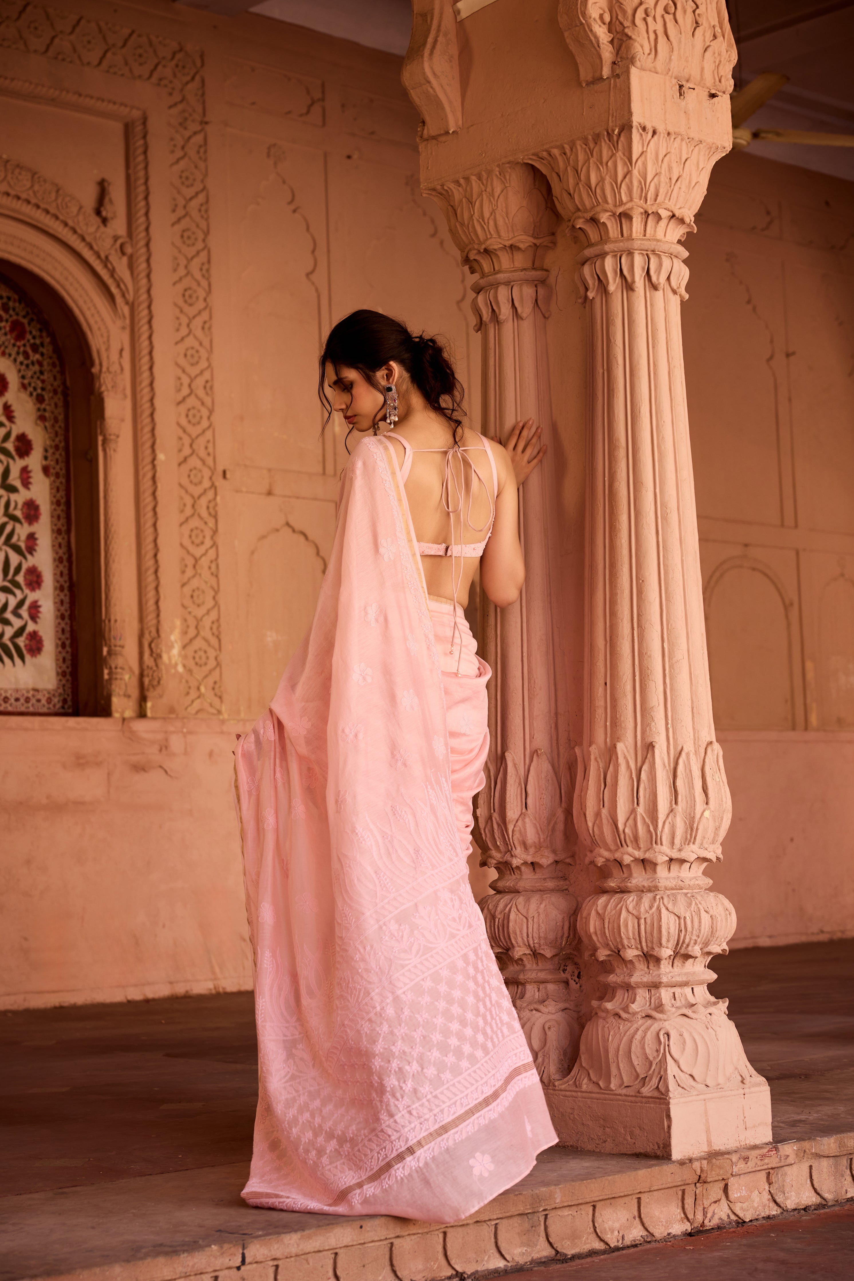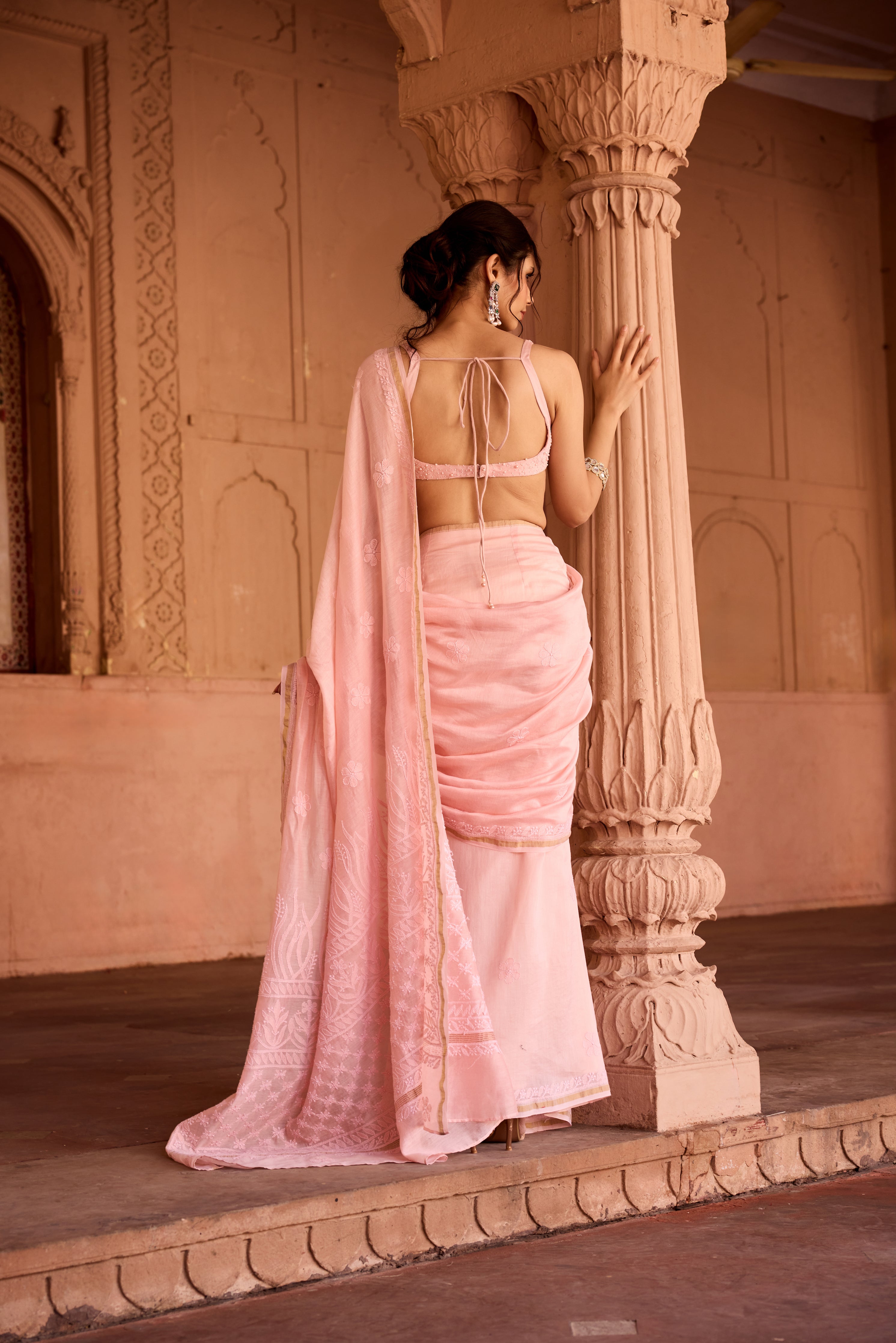 Sidra Baby Pink Chikankari Pre-Stiched Saree
