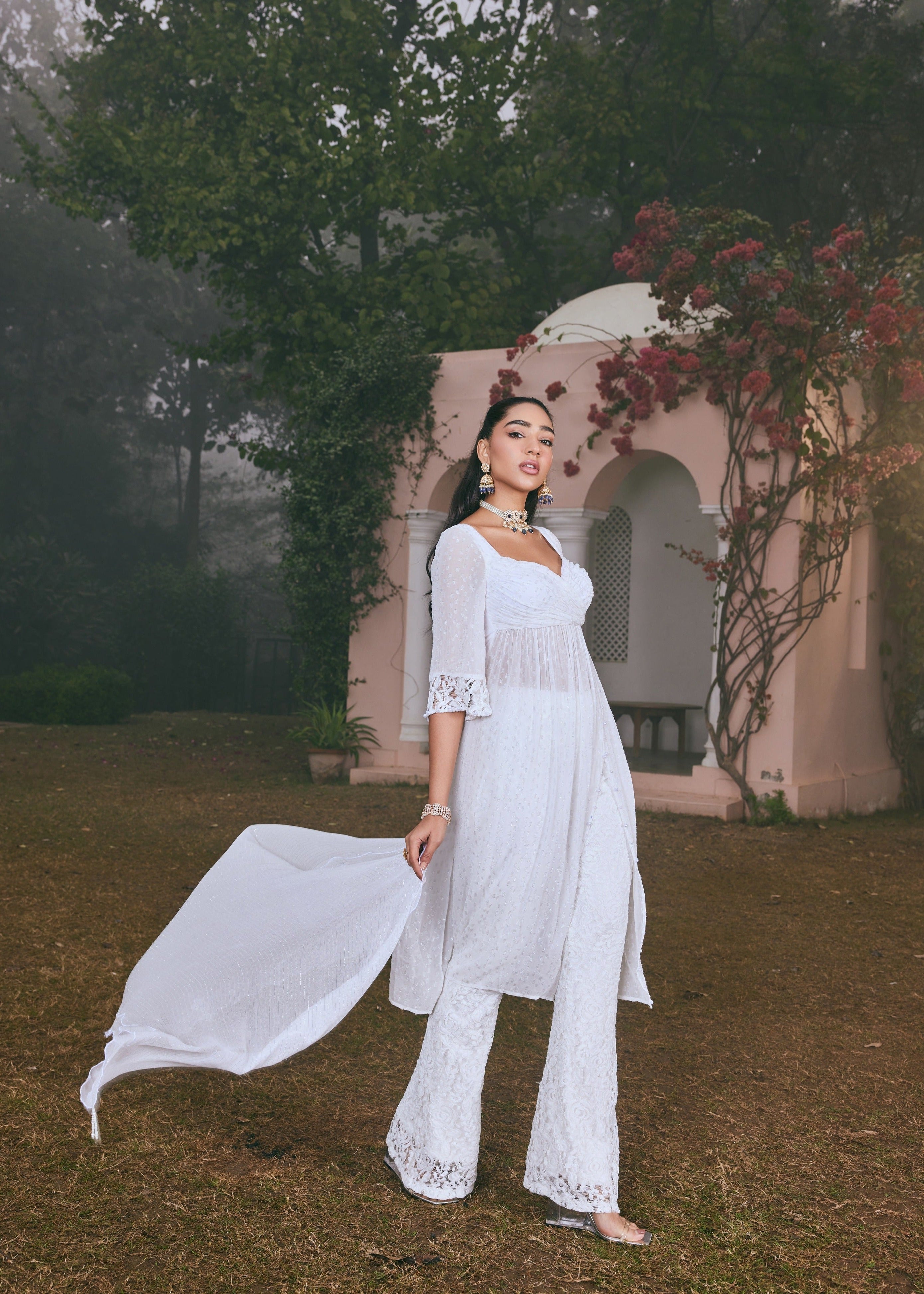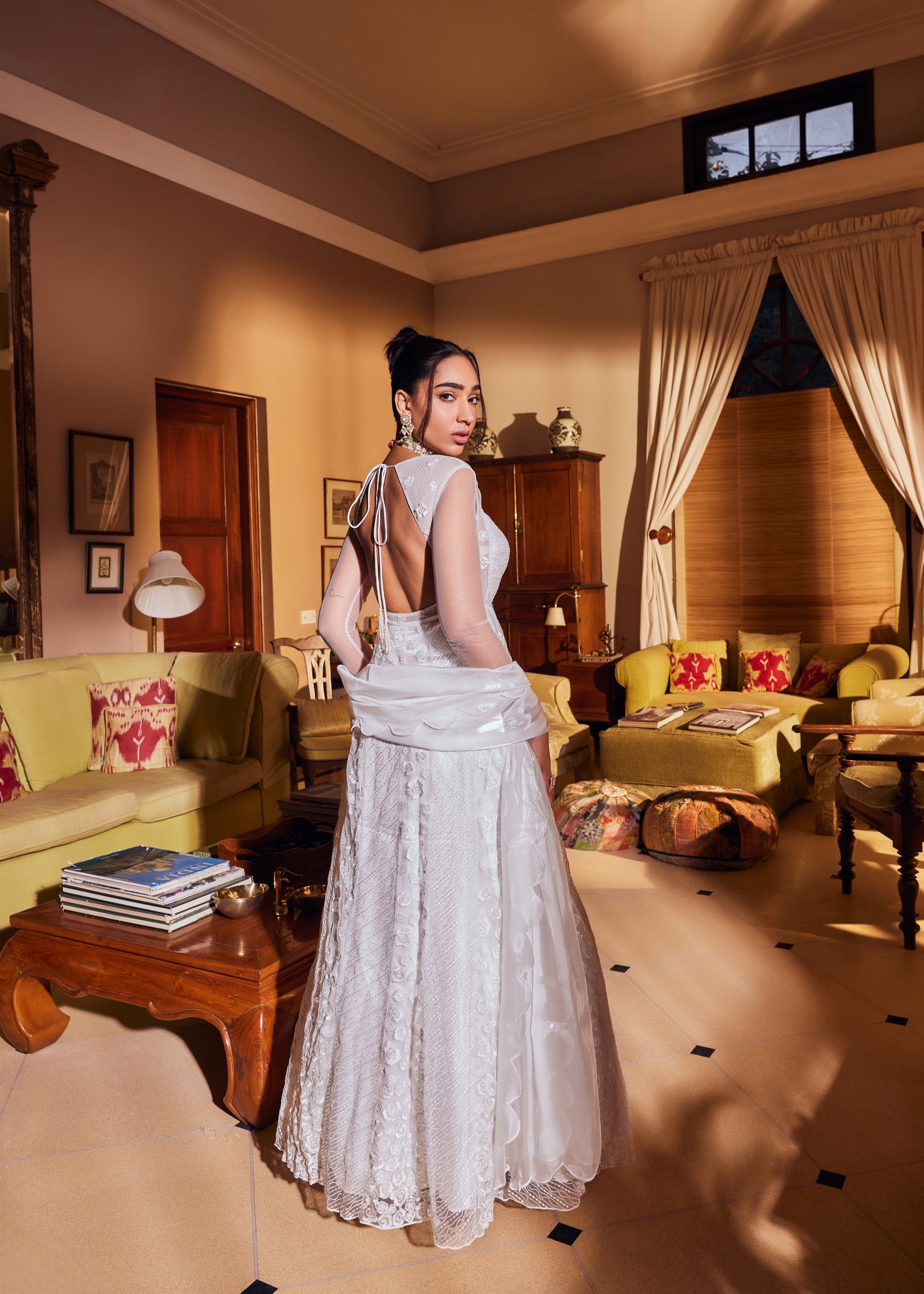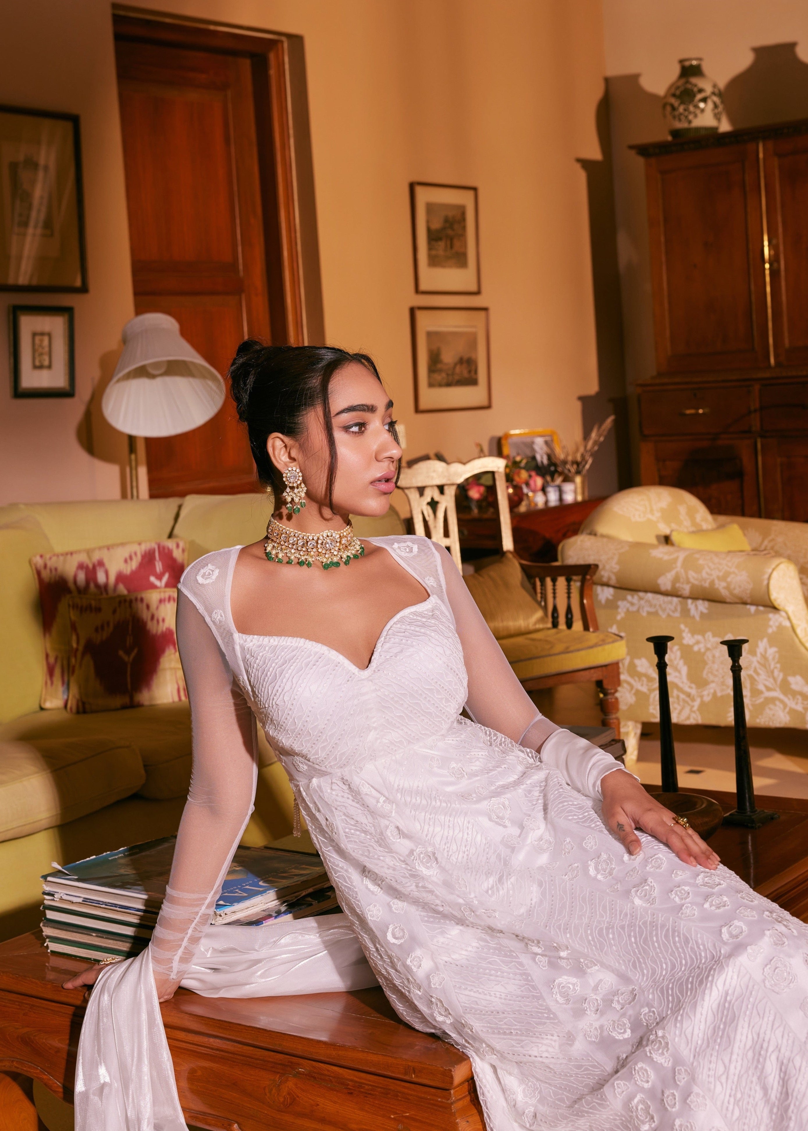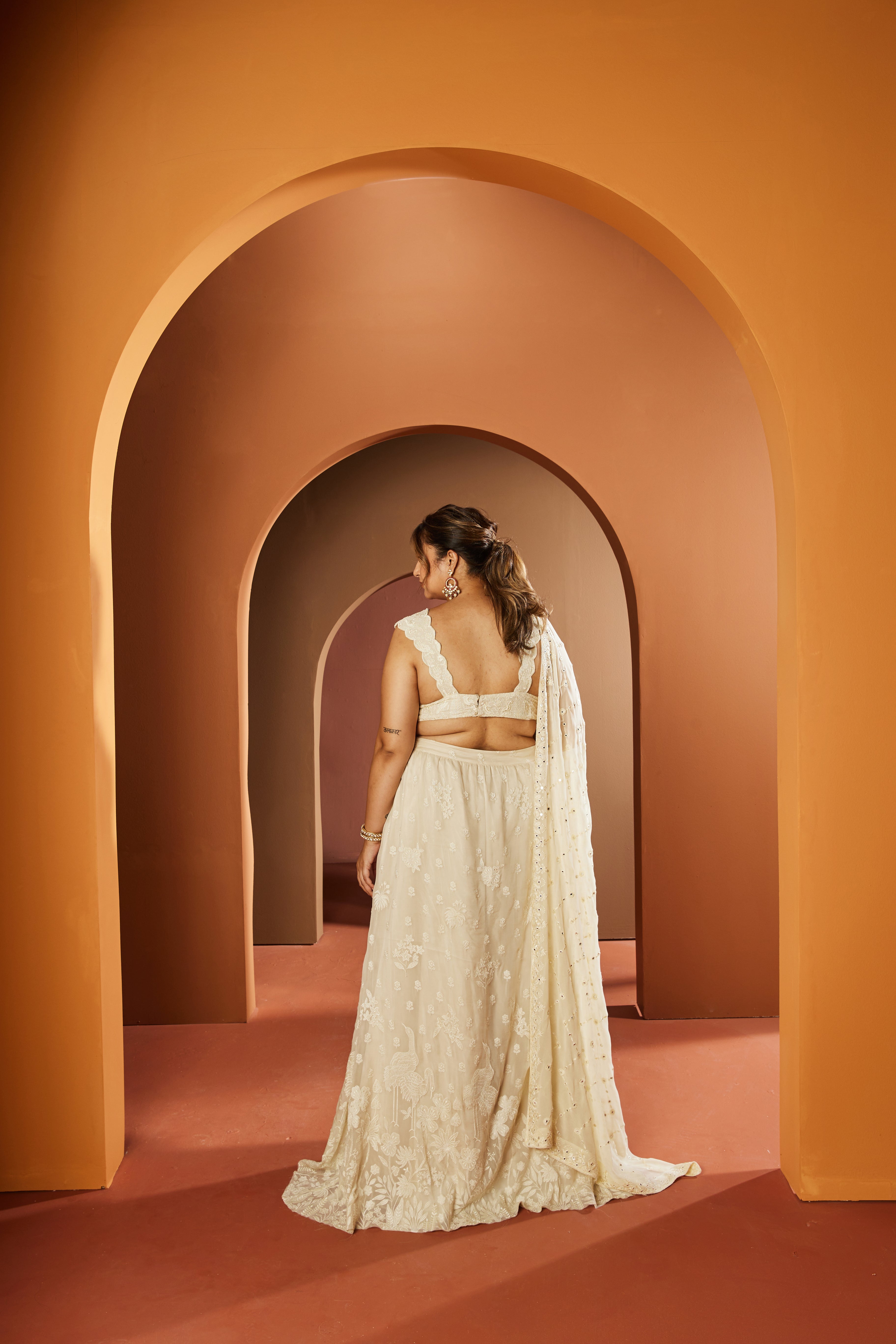 Sidra Baby Pink Chikankari Pre-Stiched Saree