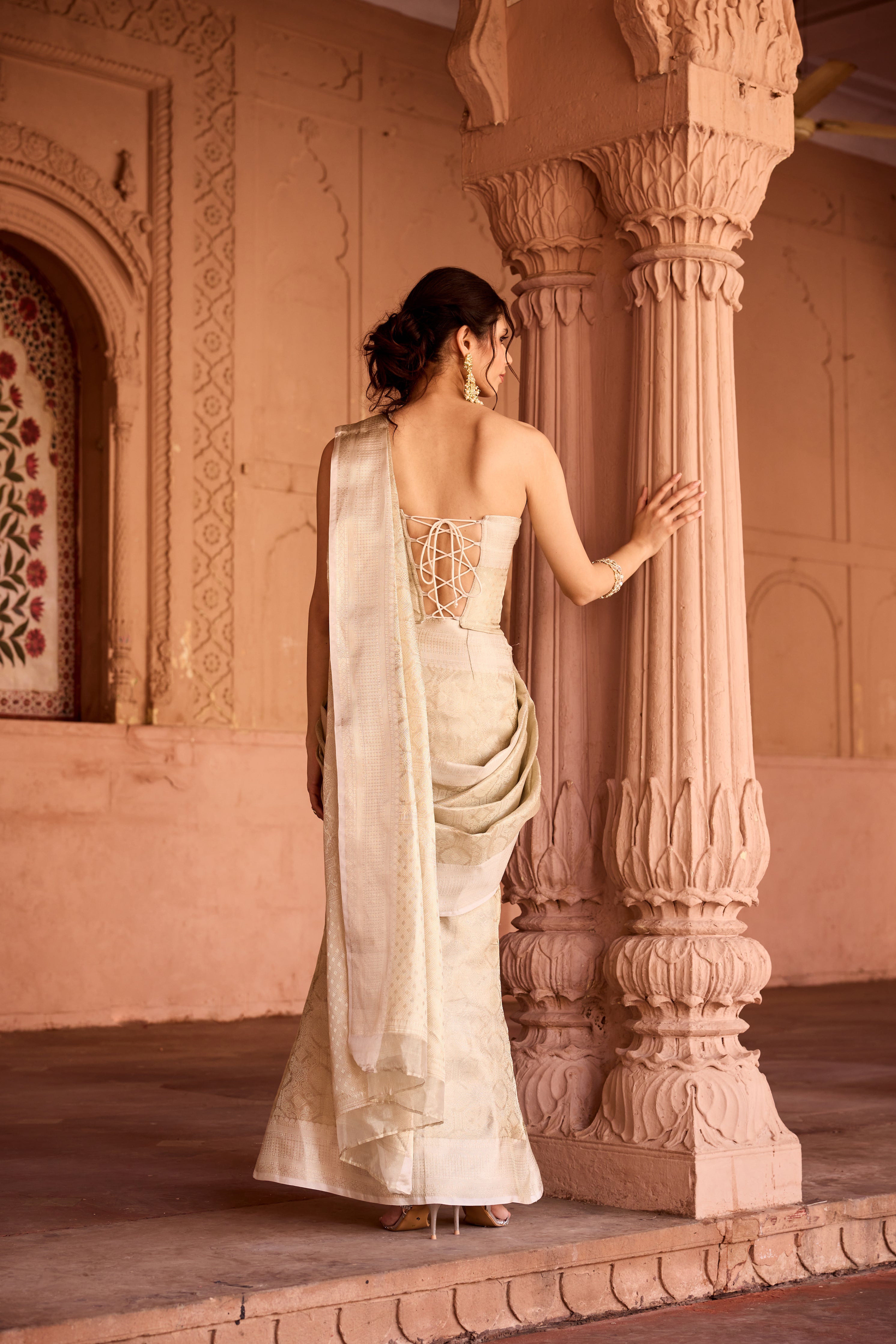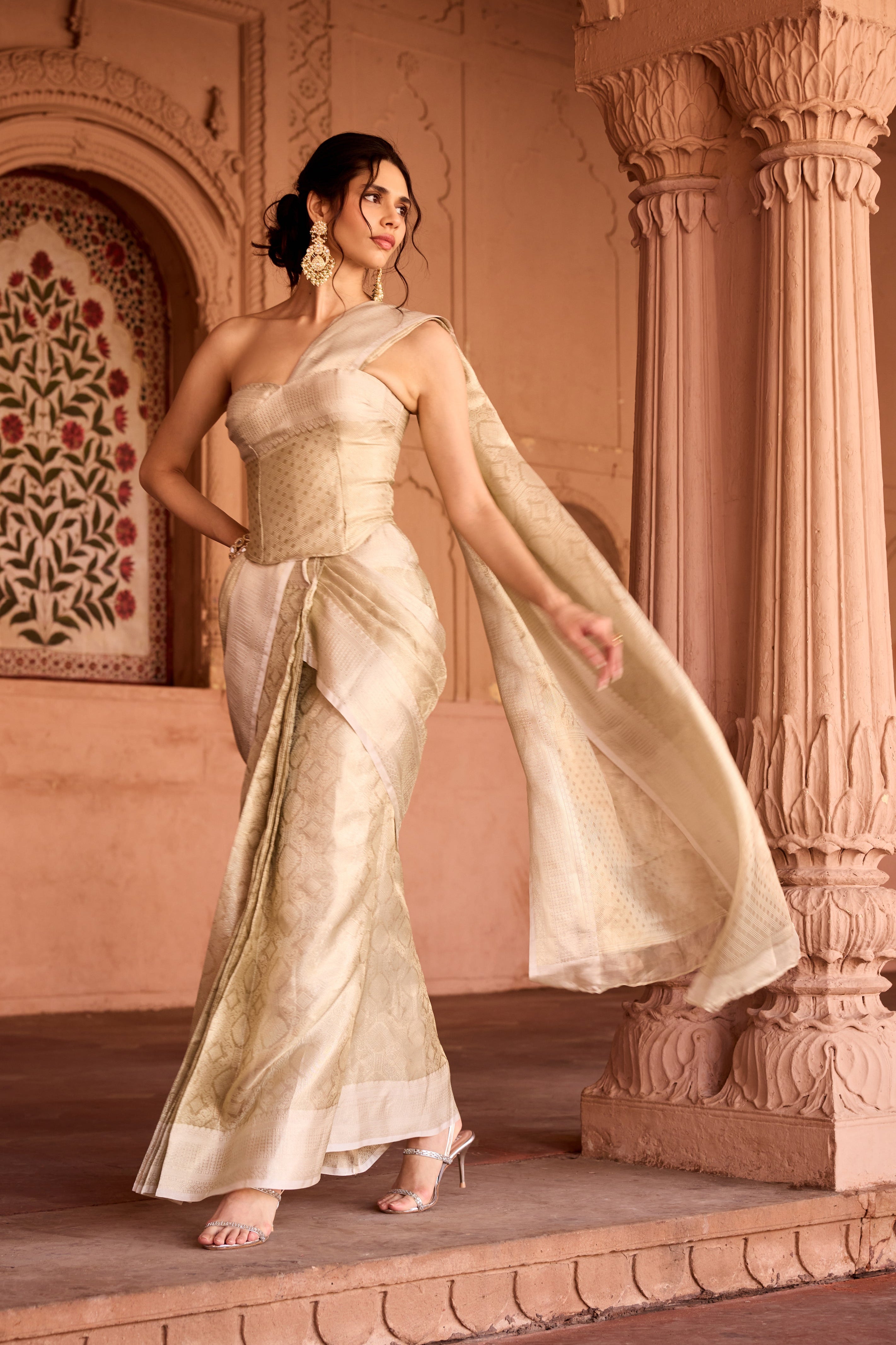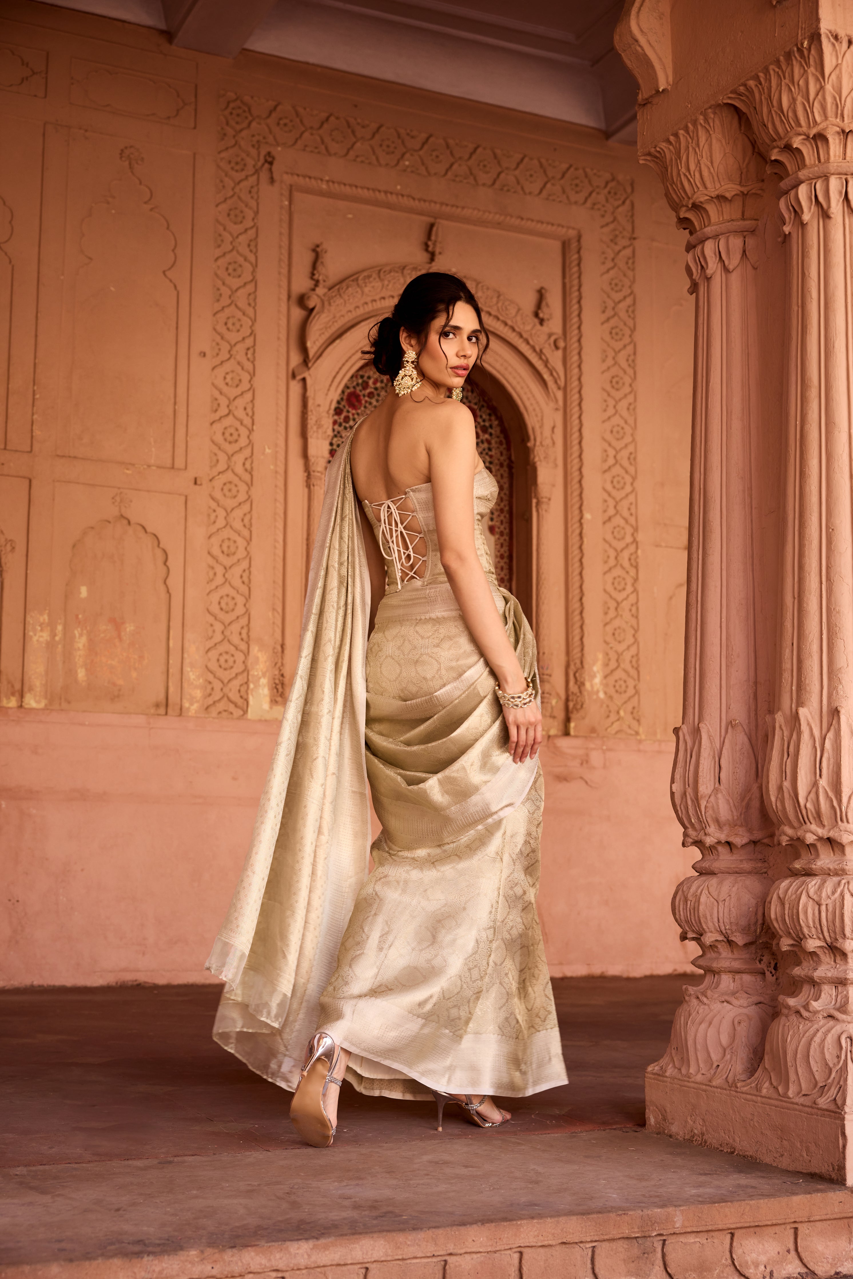 Zaida Gold Banarasi Pre-Draped Saree Set