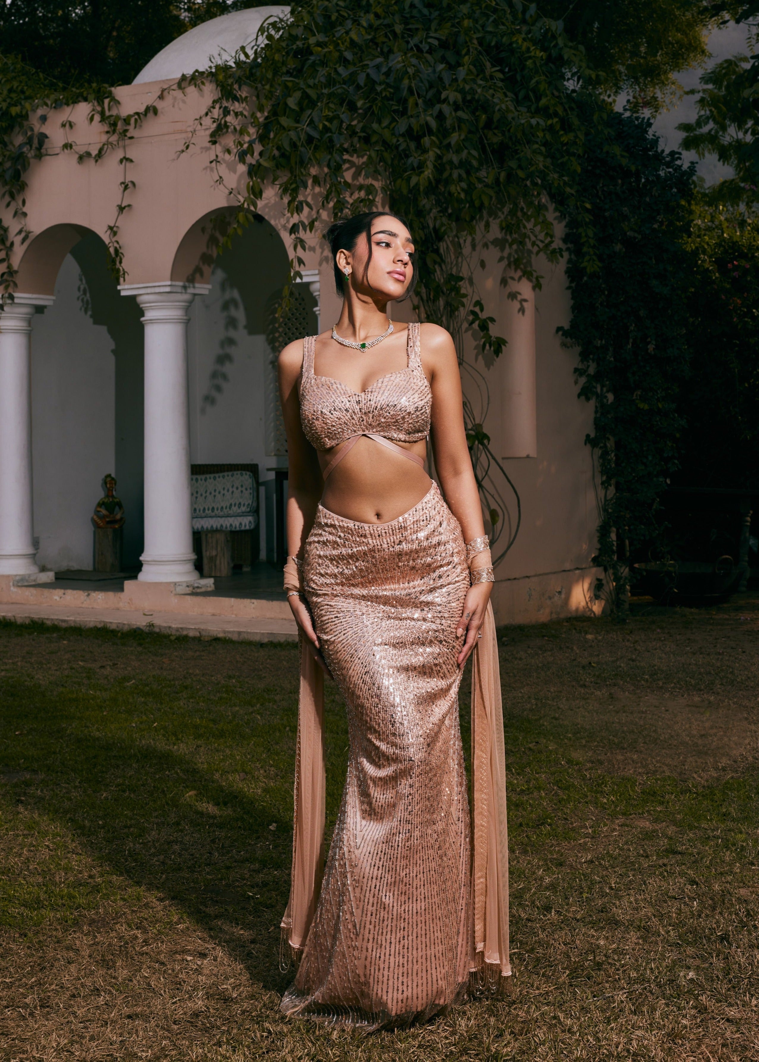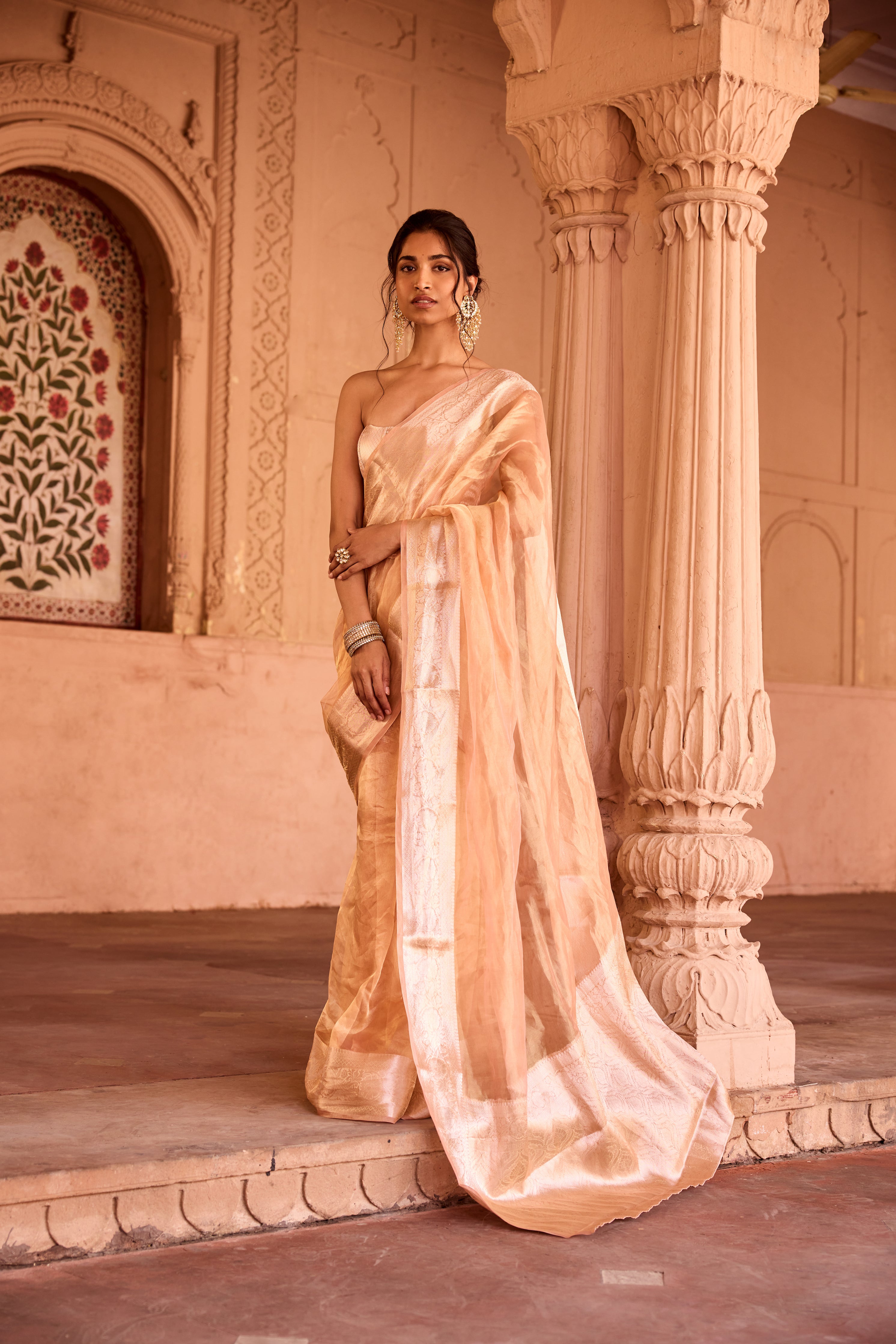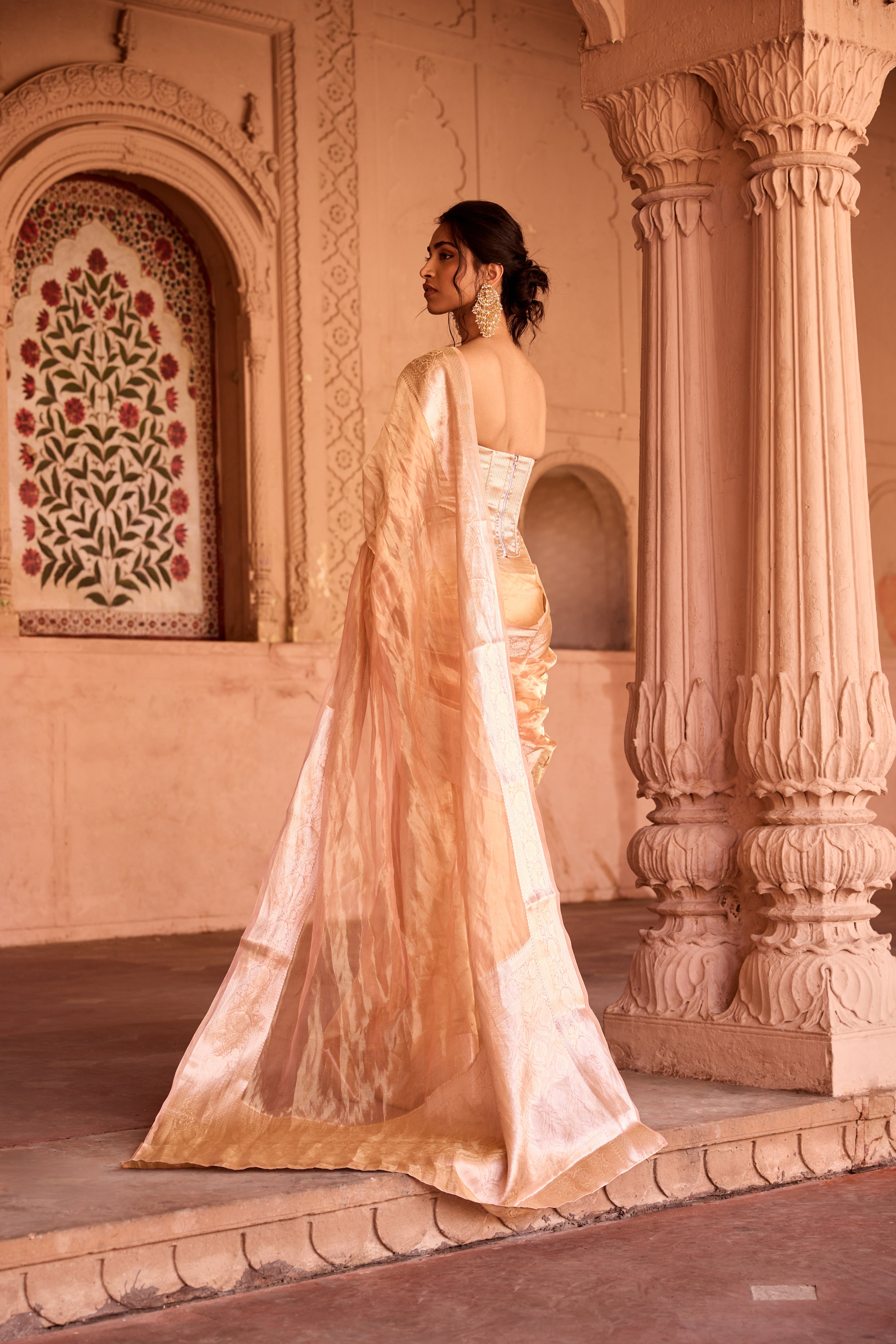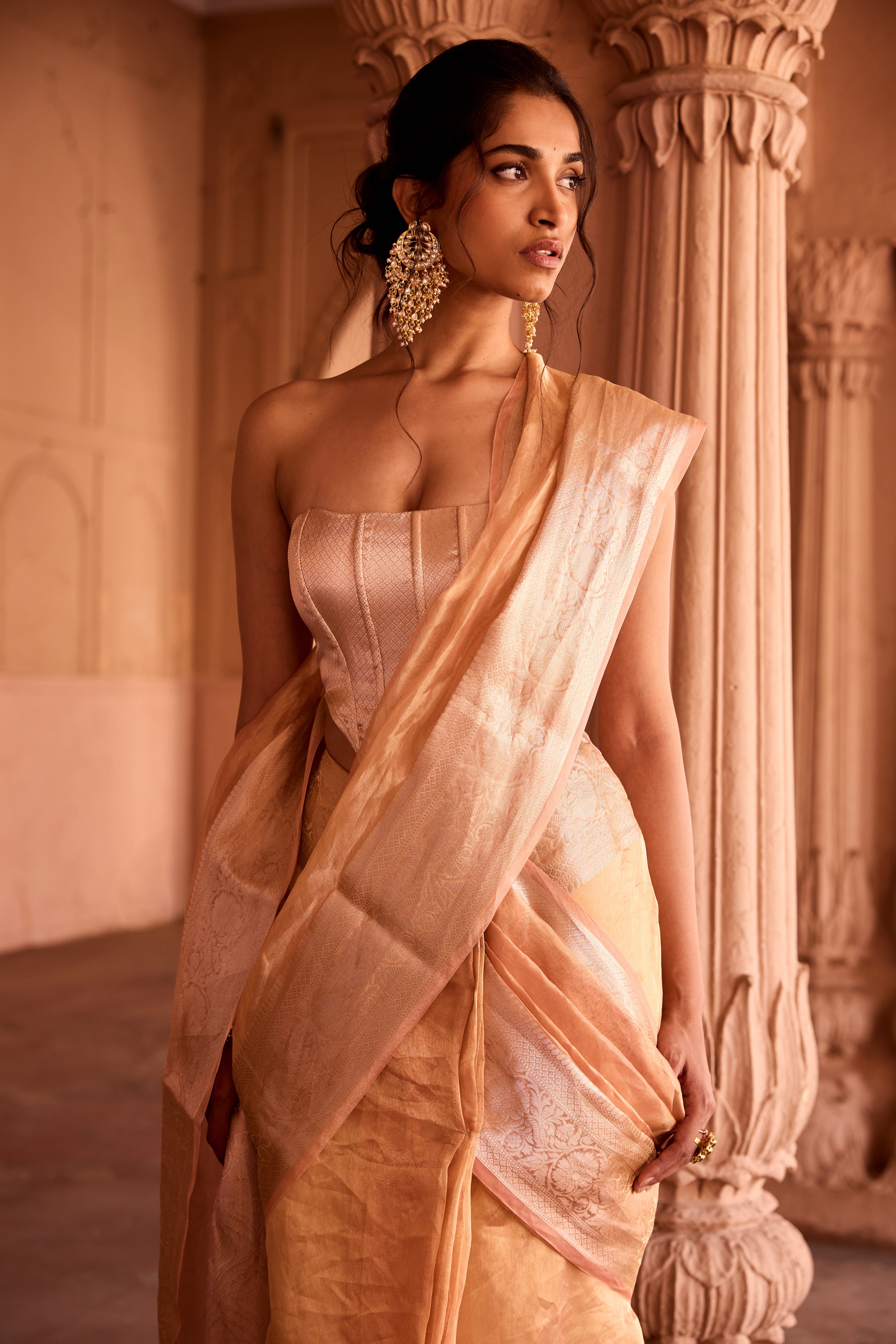 Zaida Gold Banarasi Pre-Draped Saree Set
