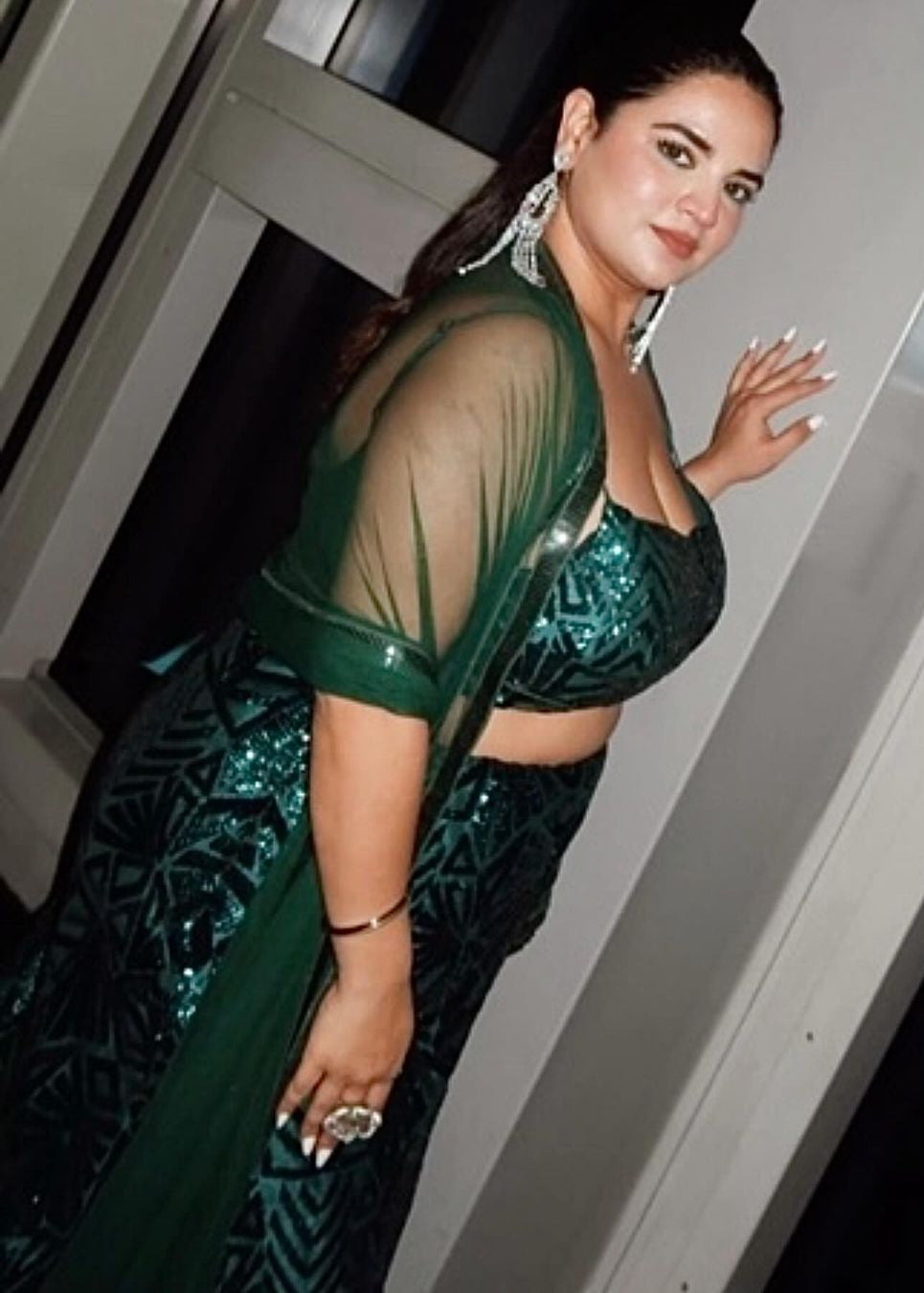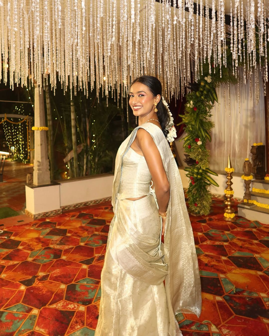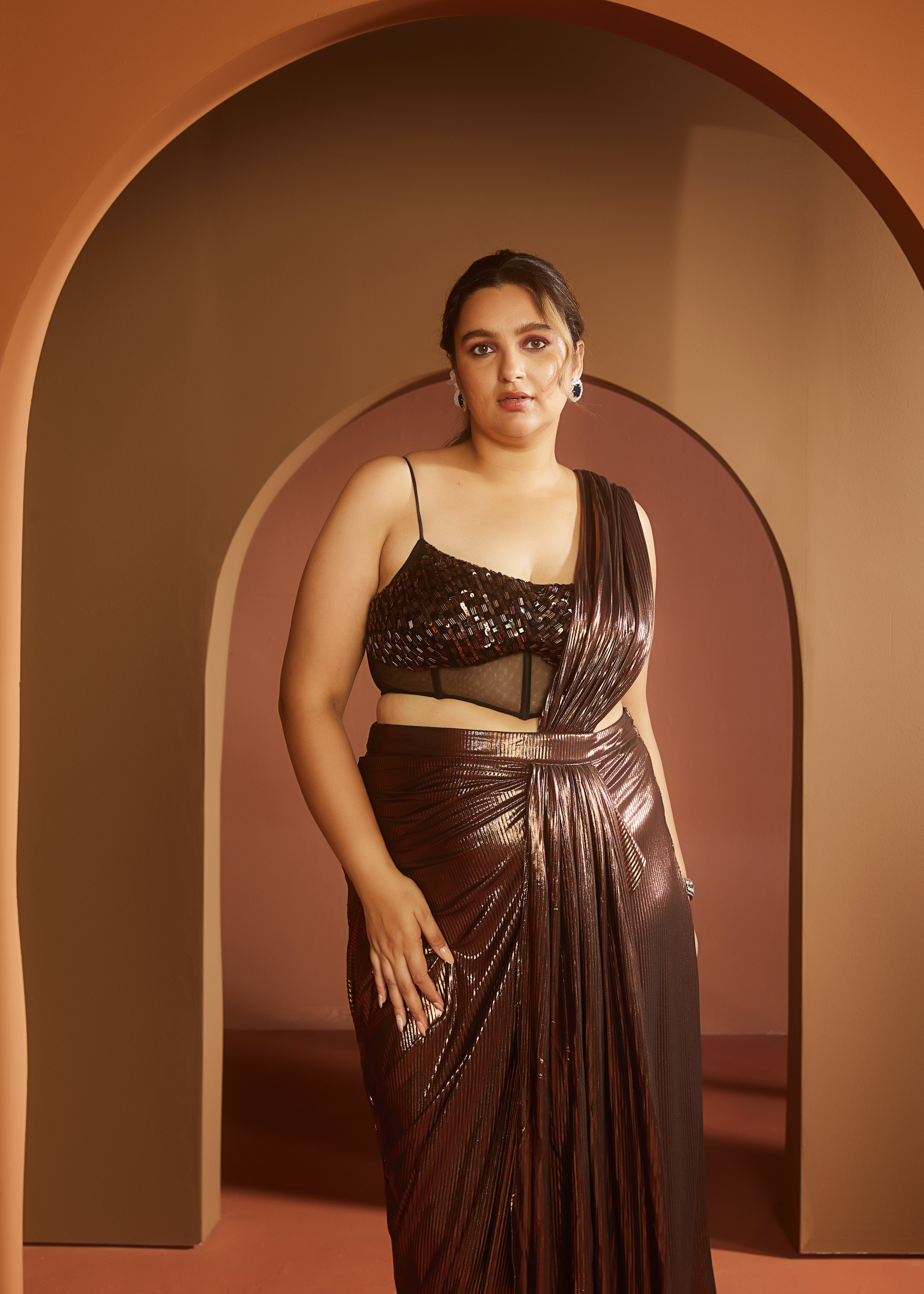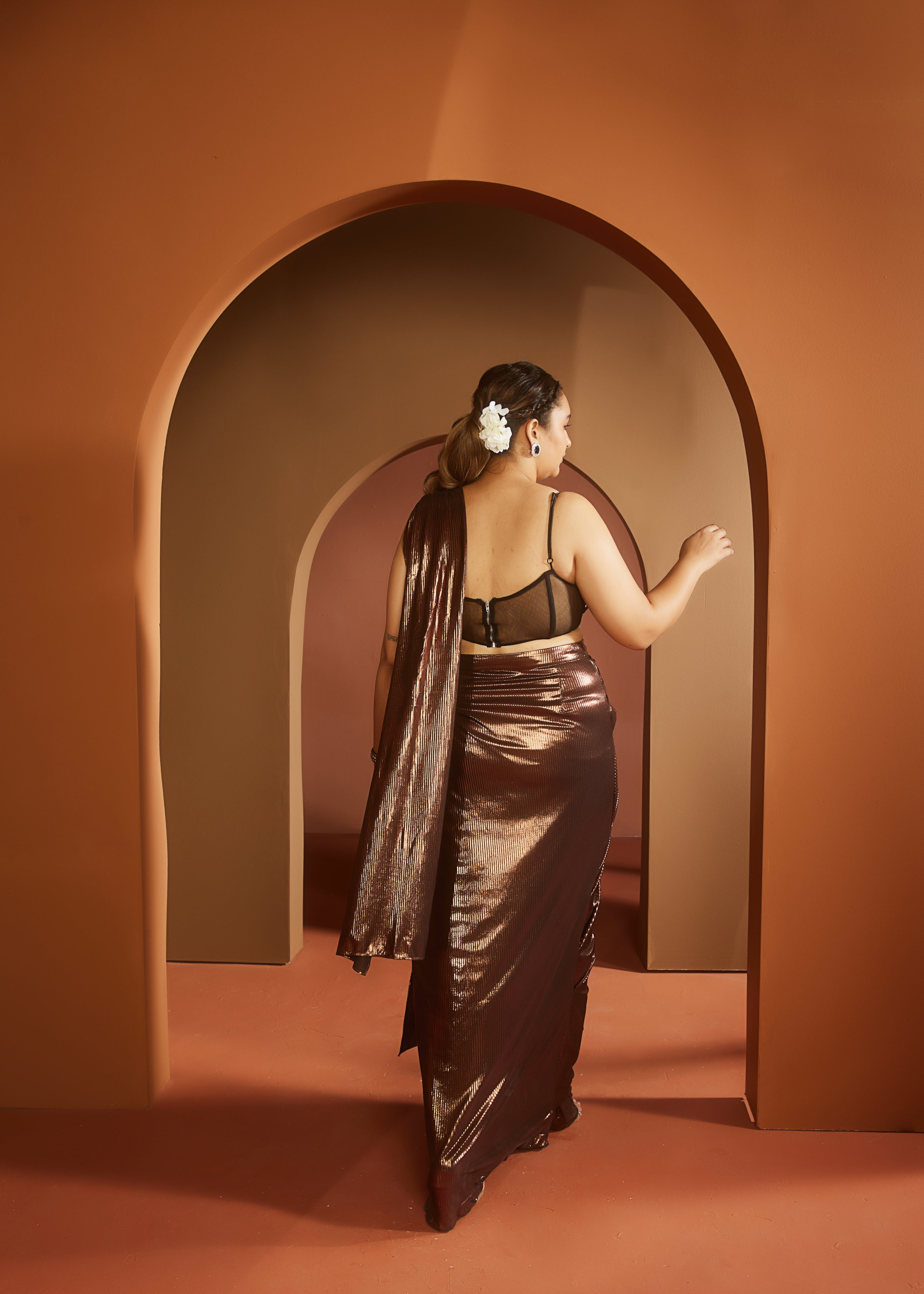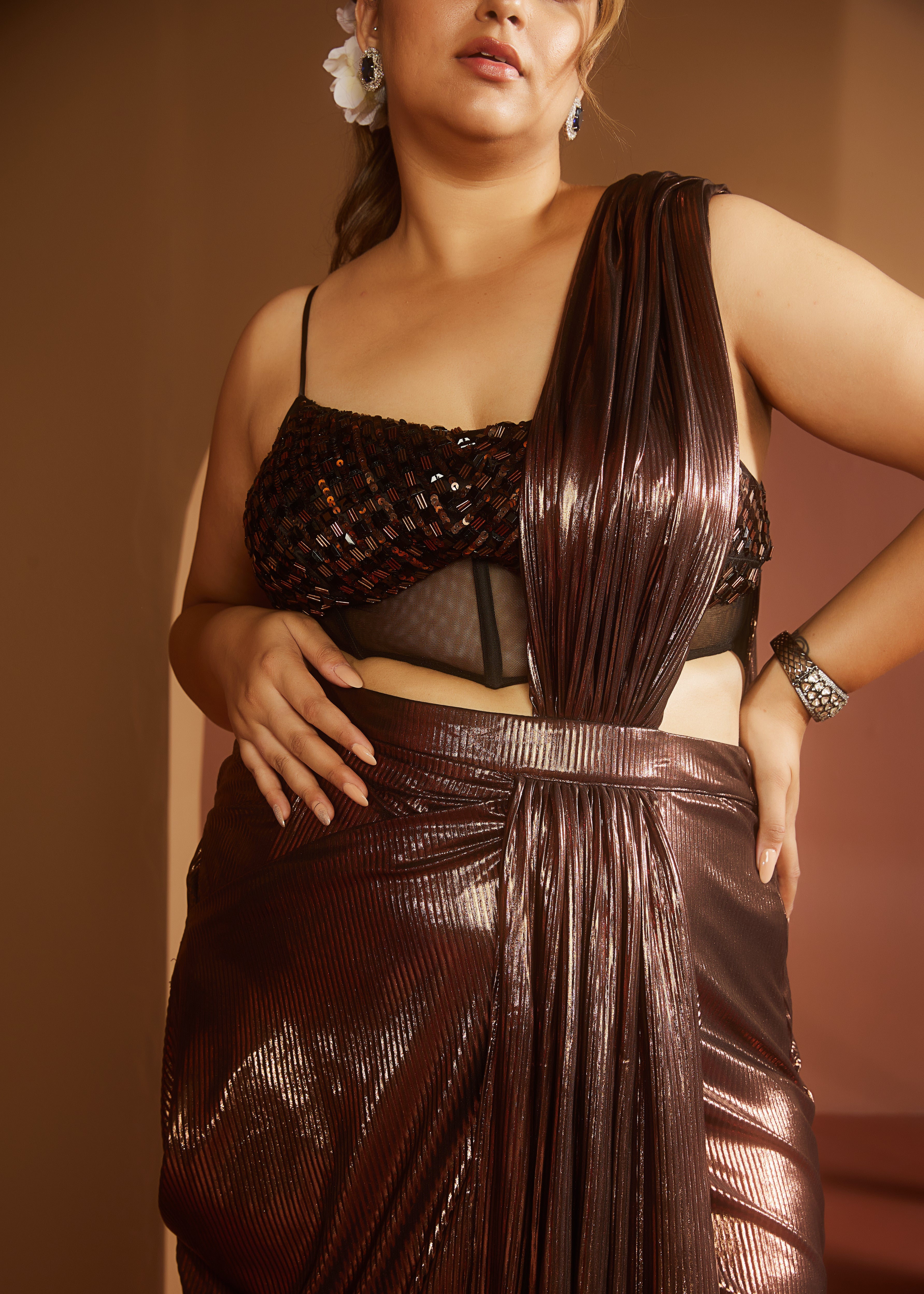 Sobia Grey Shimmer Chiffon Pre- Draped Saree Set