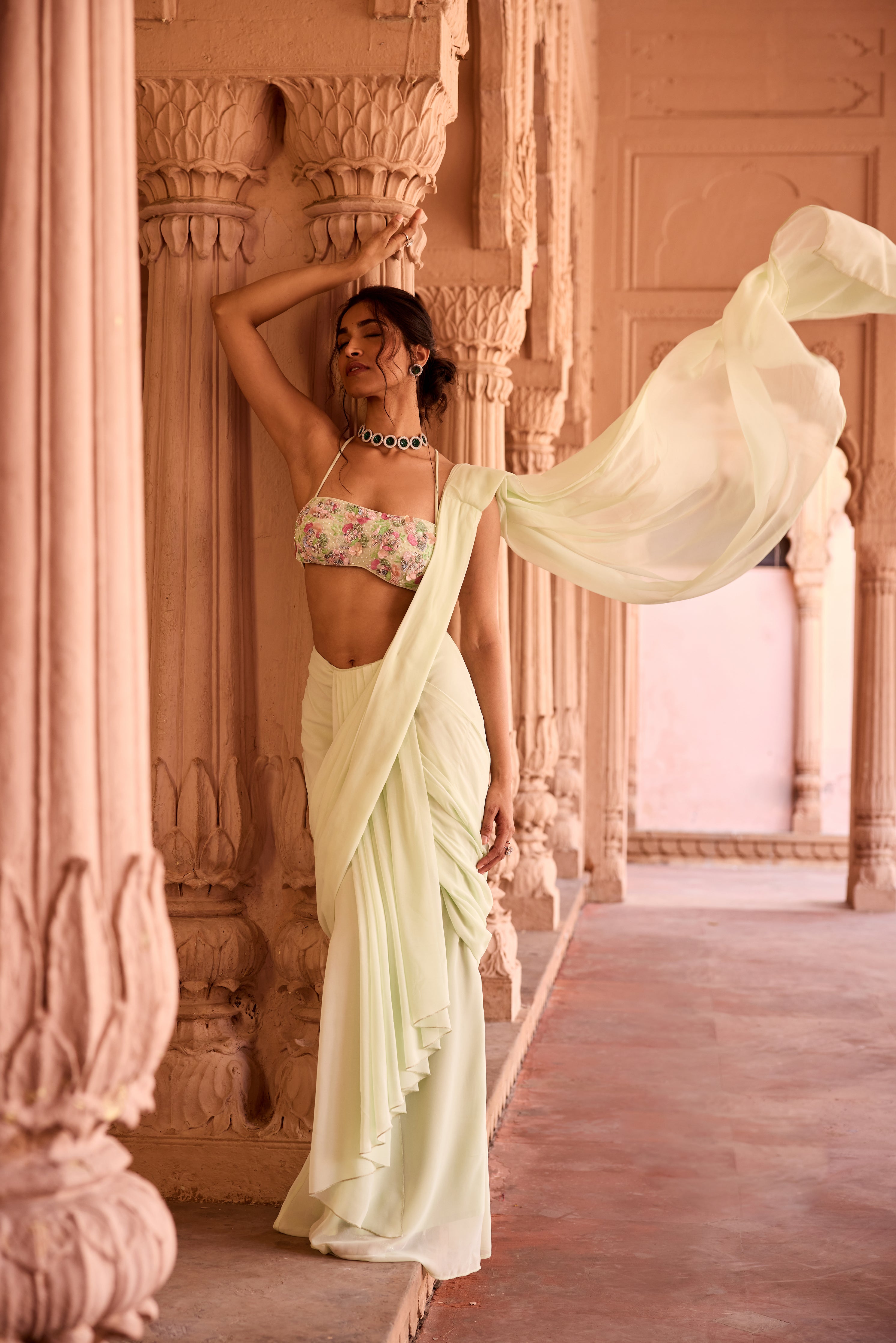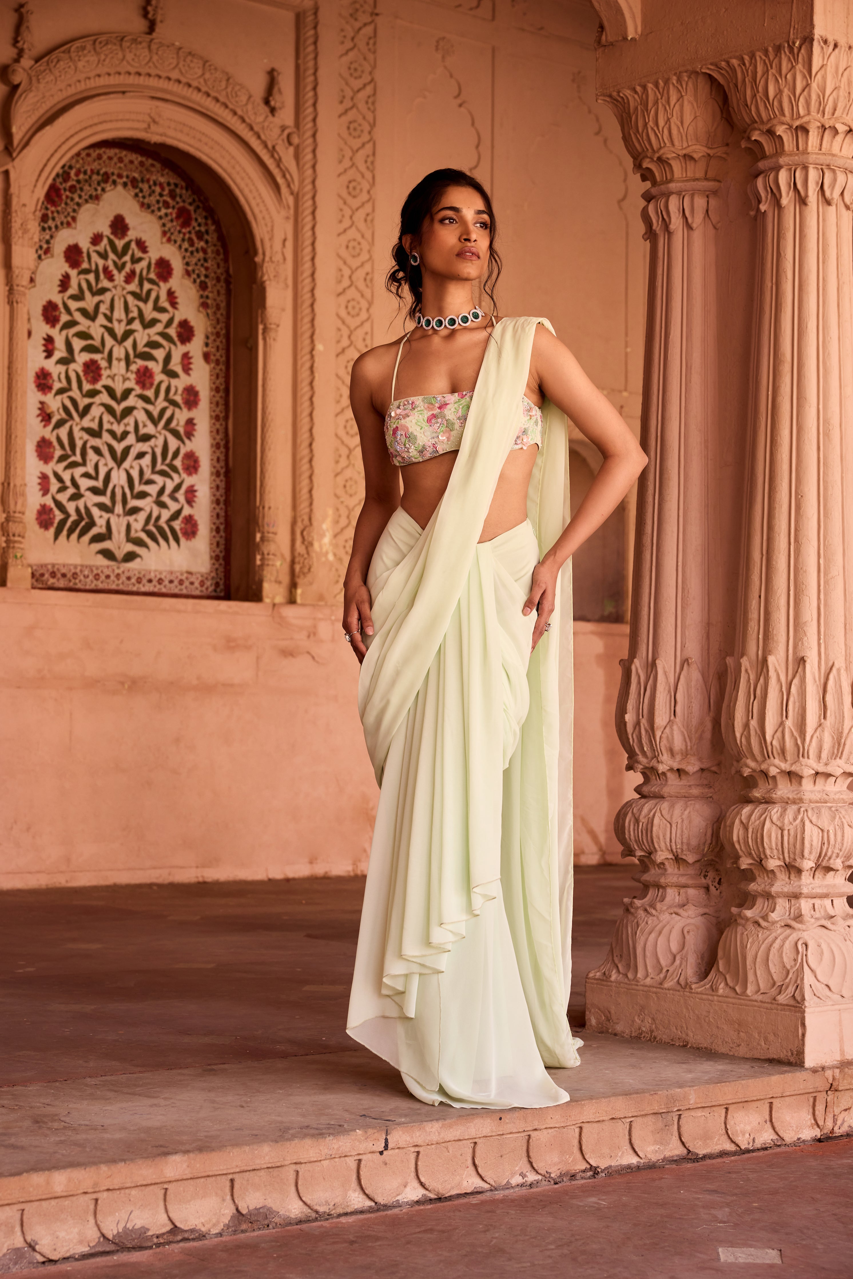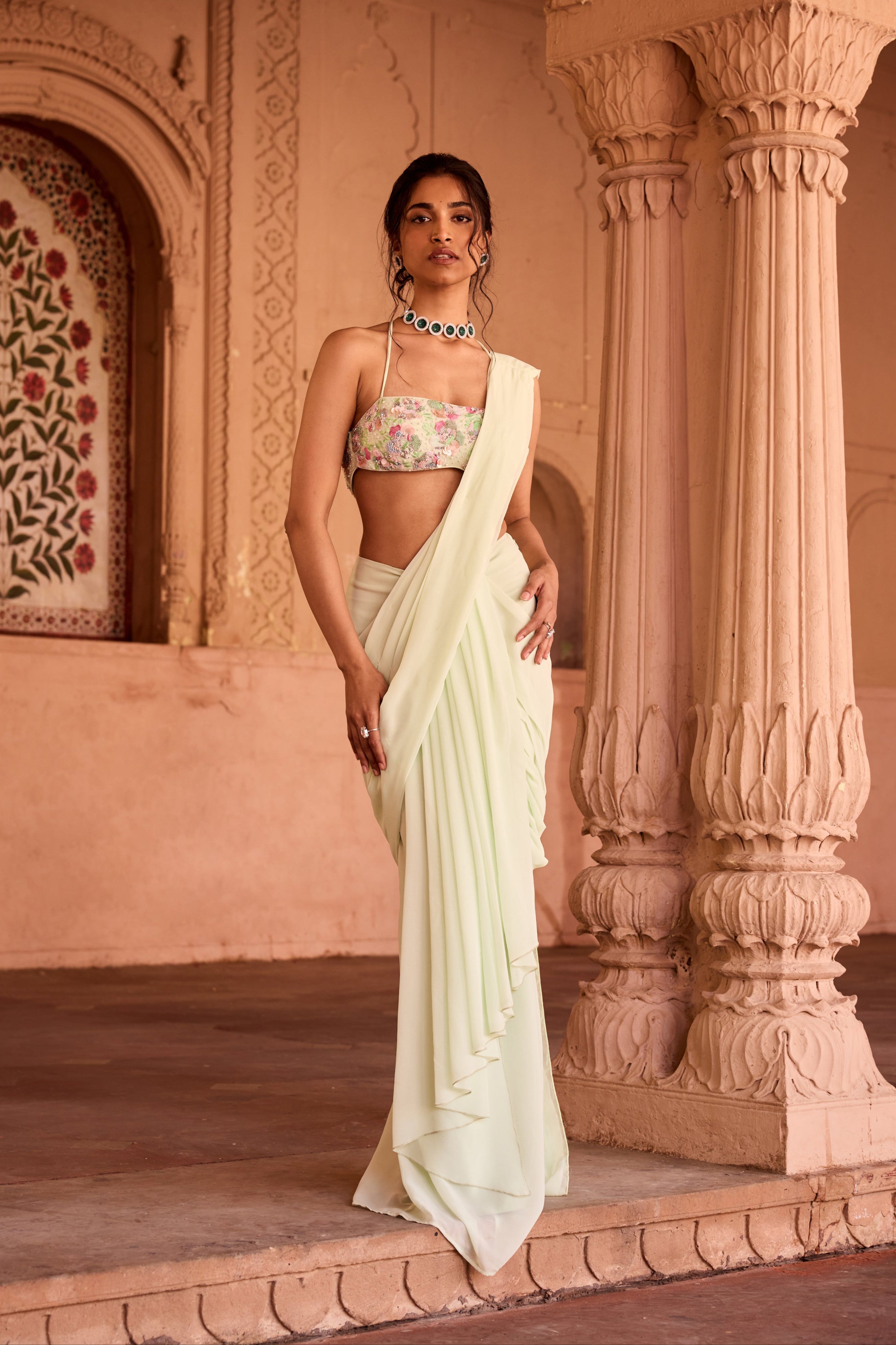 Yasira Pastel Green Georgette Pre-Stitched Saree