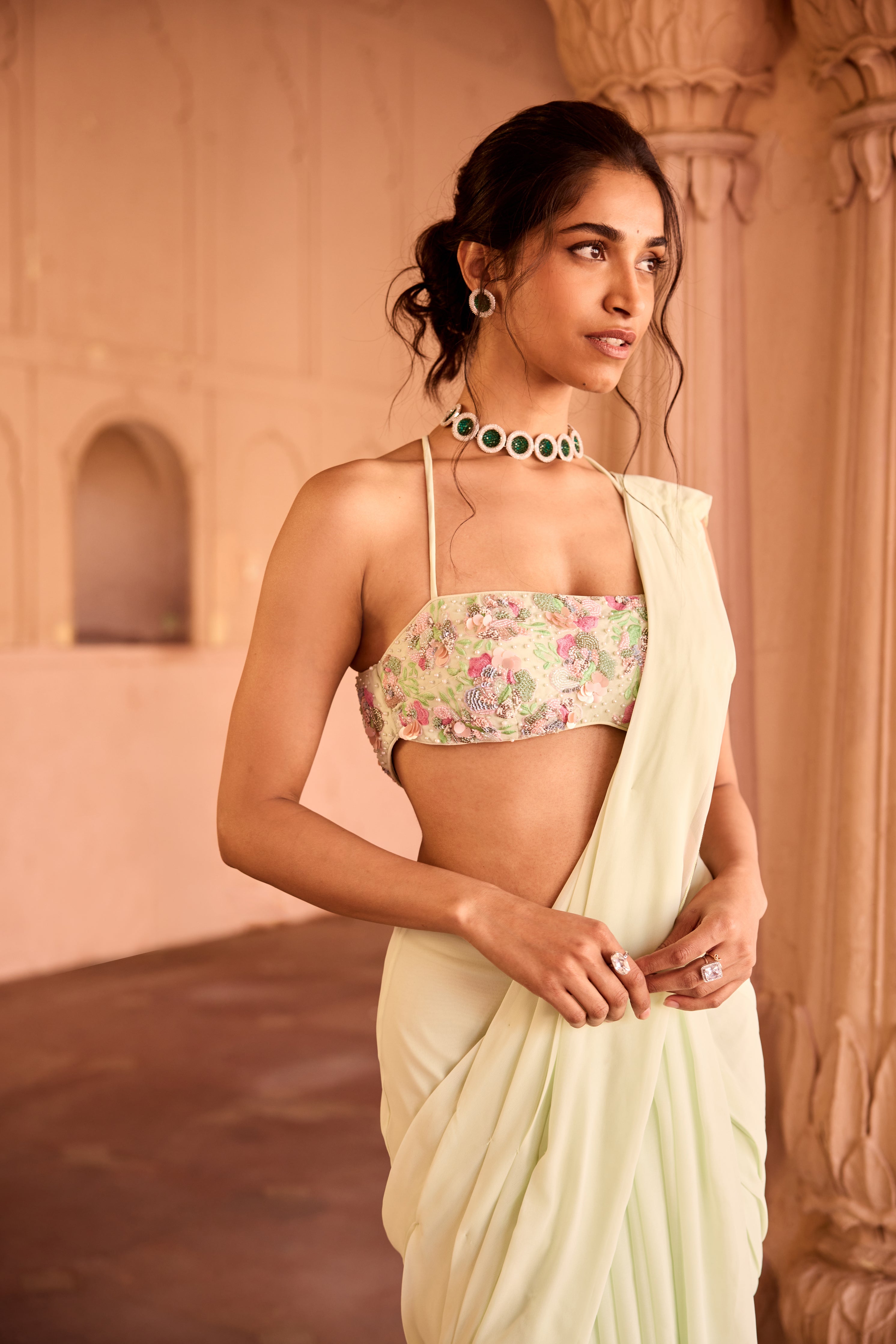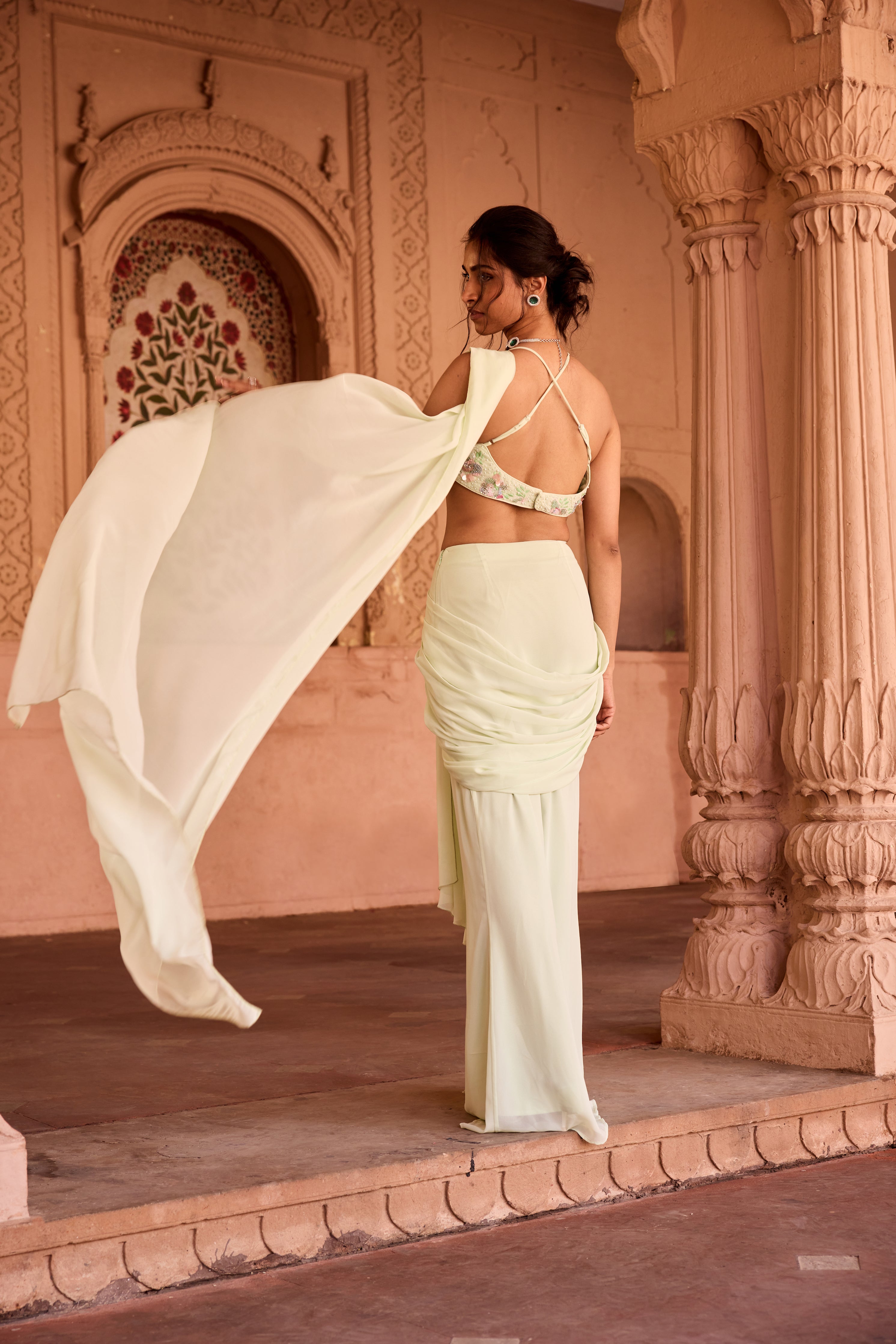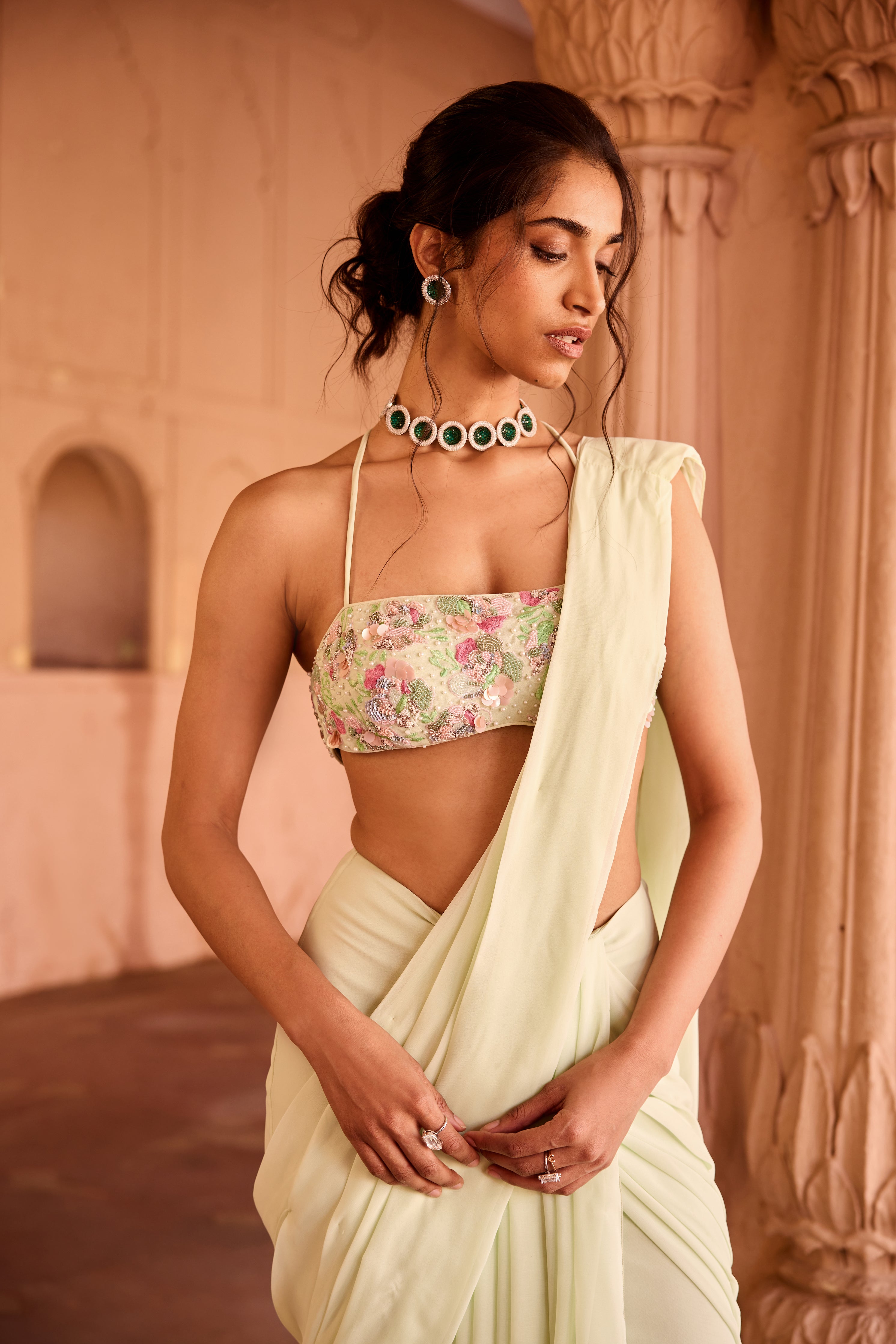 Yasira Pastel Green Georgette Pre-Stitched Saree