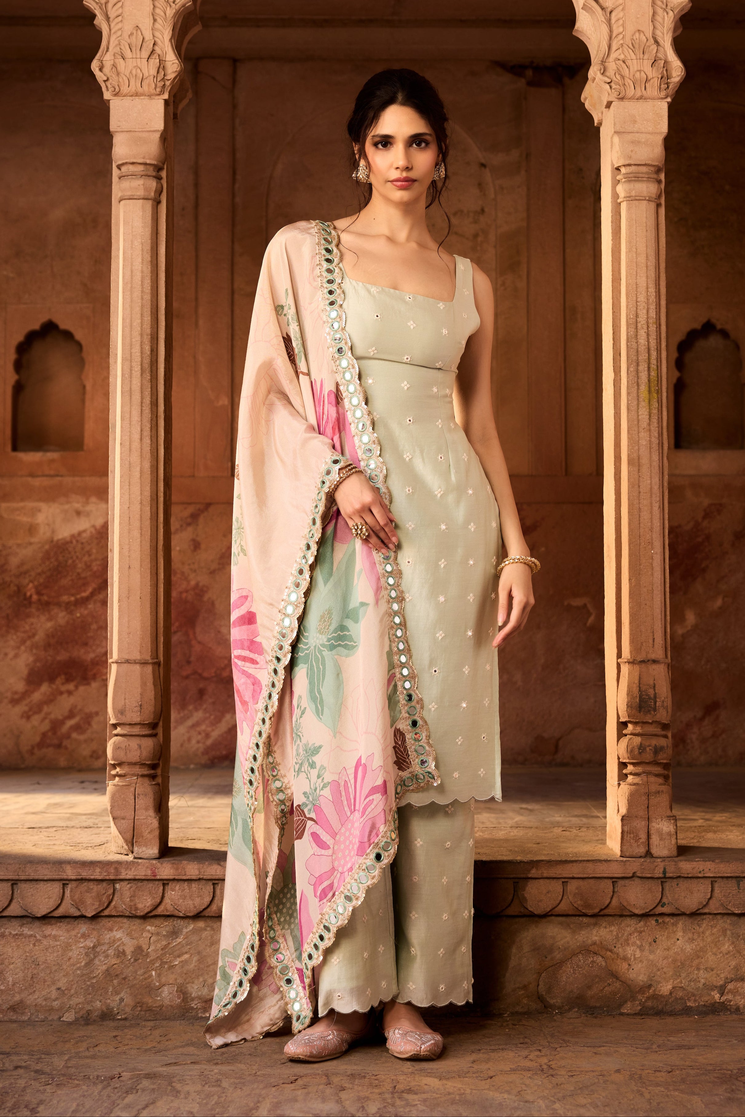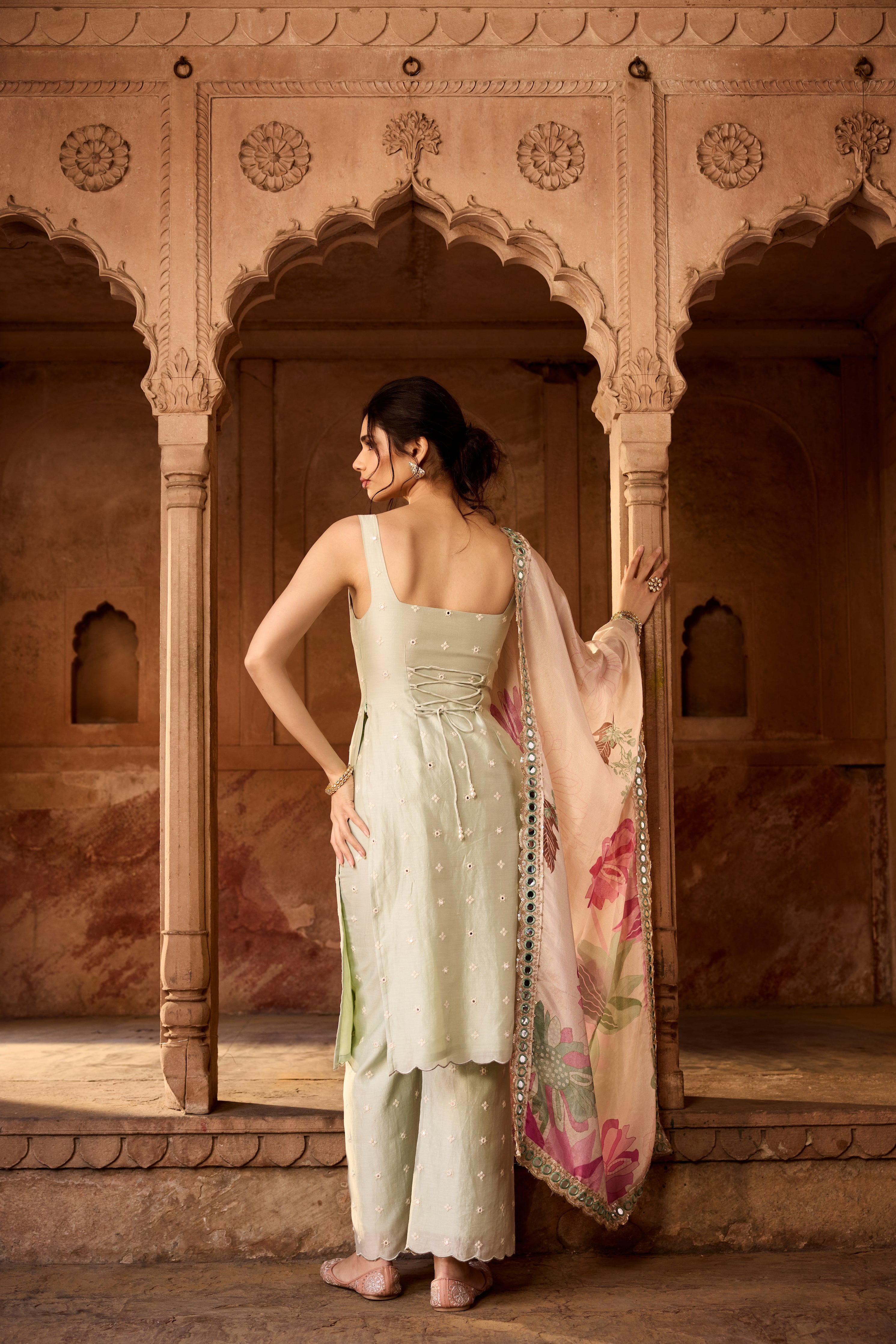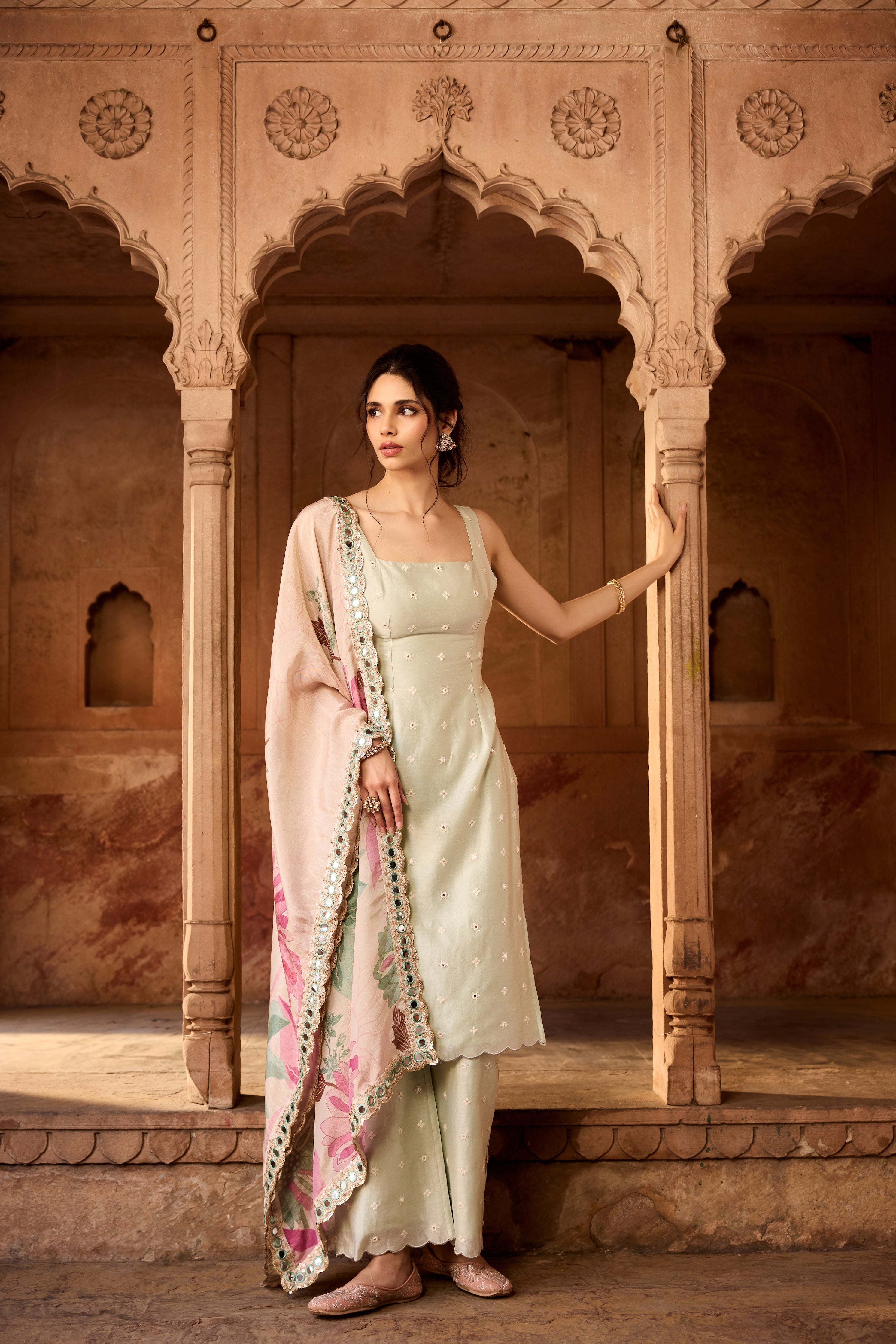Ryka Sage Green Mirror Embroidered Kurta Set