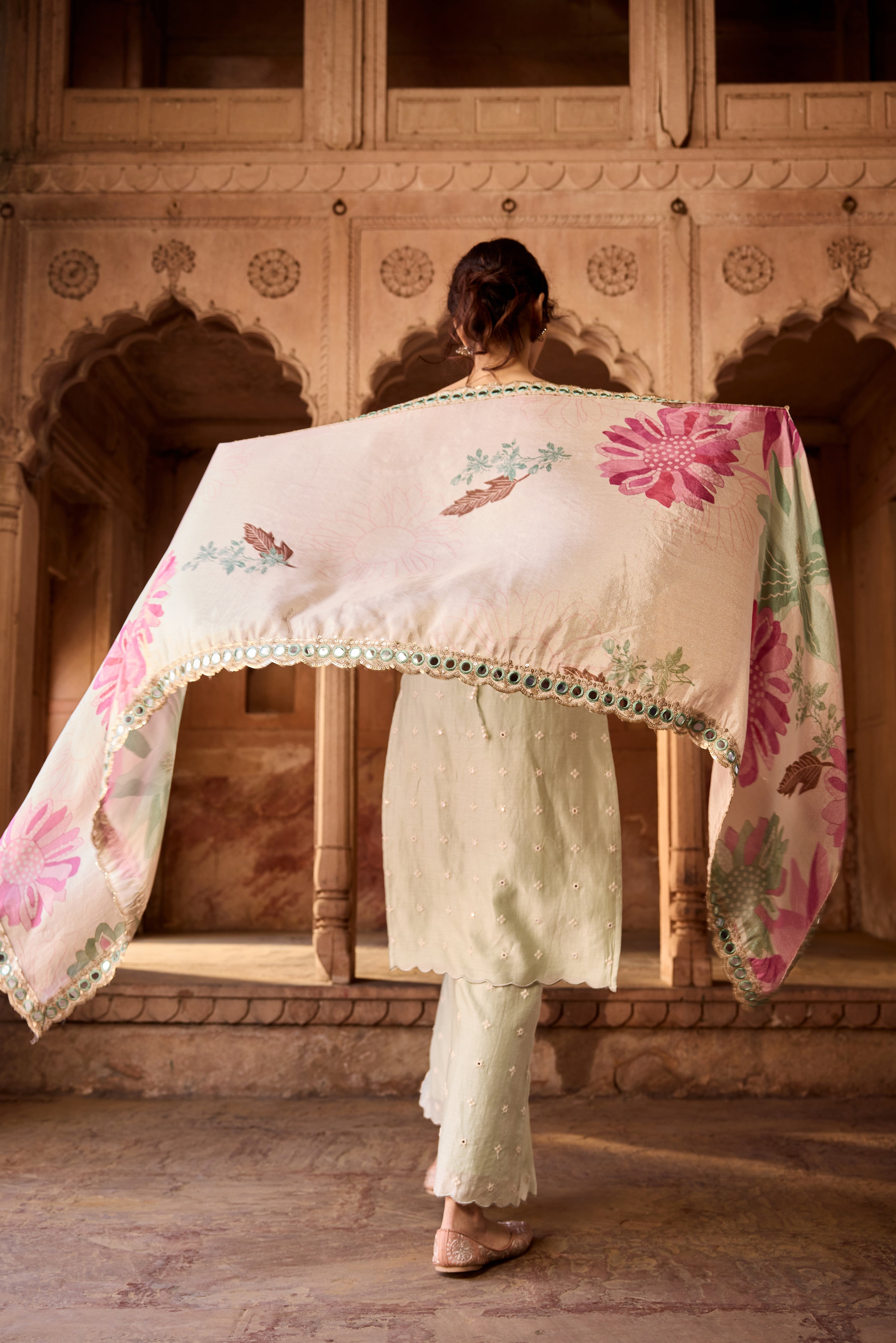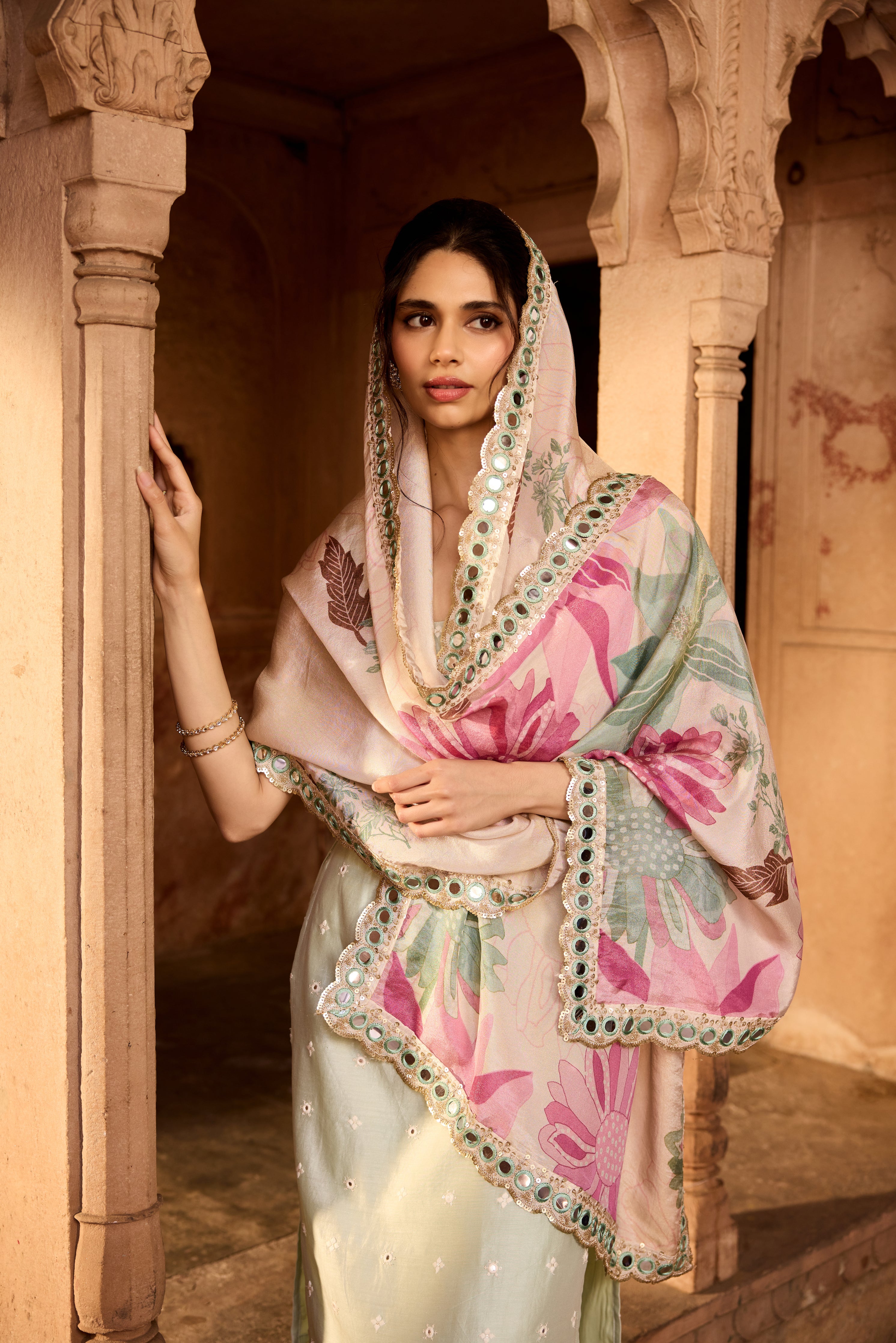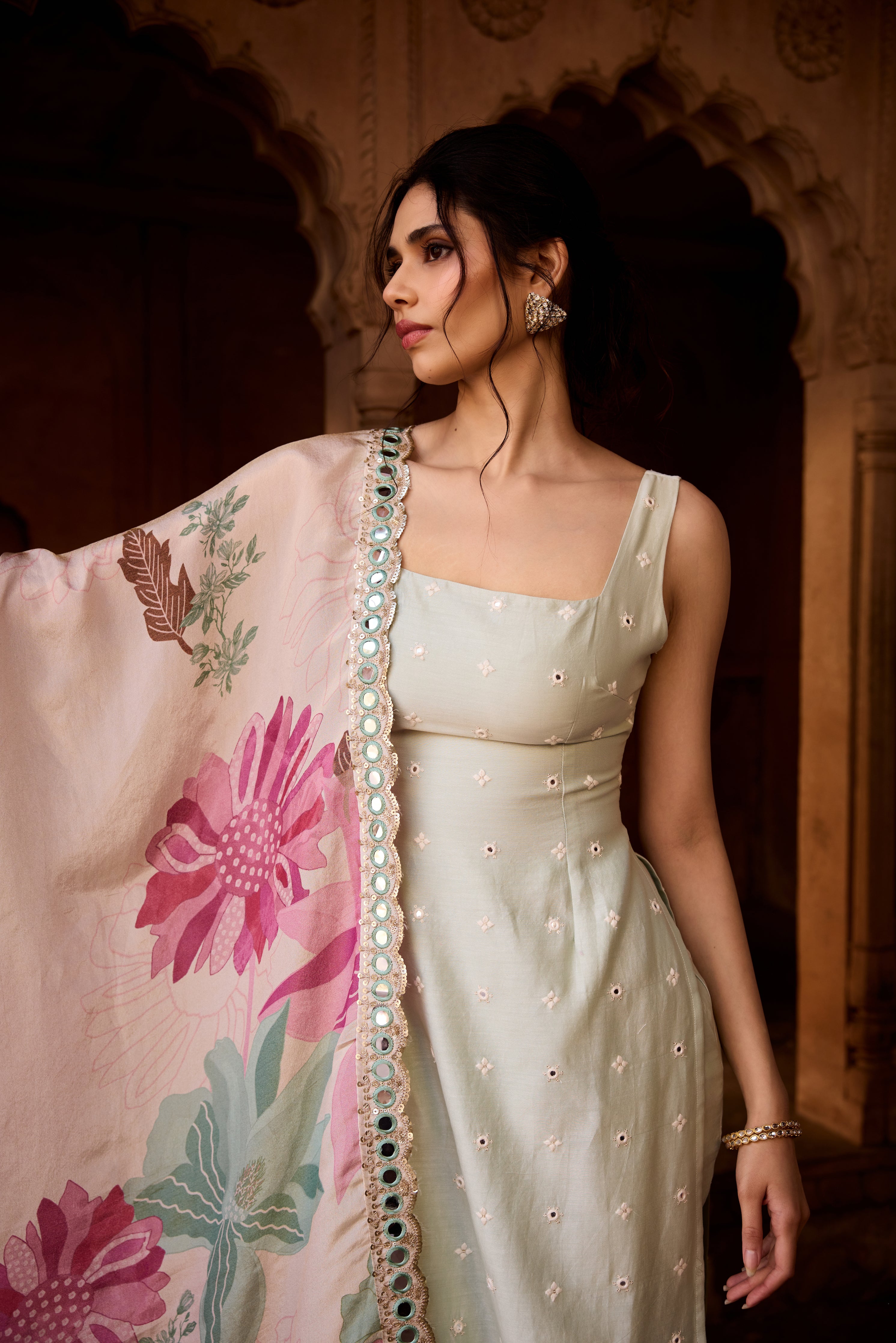 Ryka Sage Green Mirror Embroidered Kurta Set