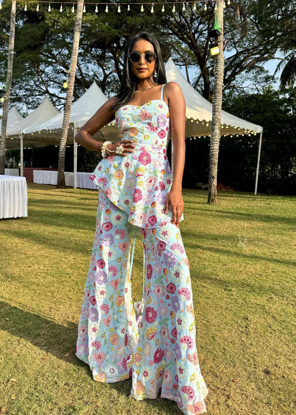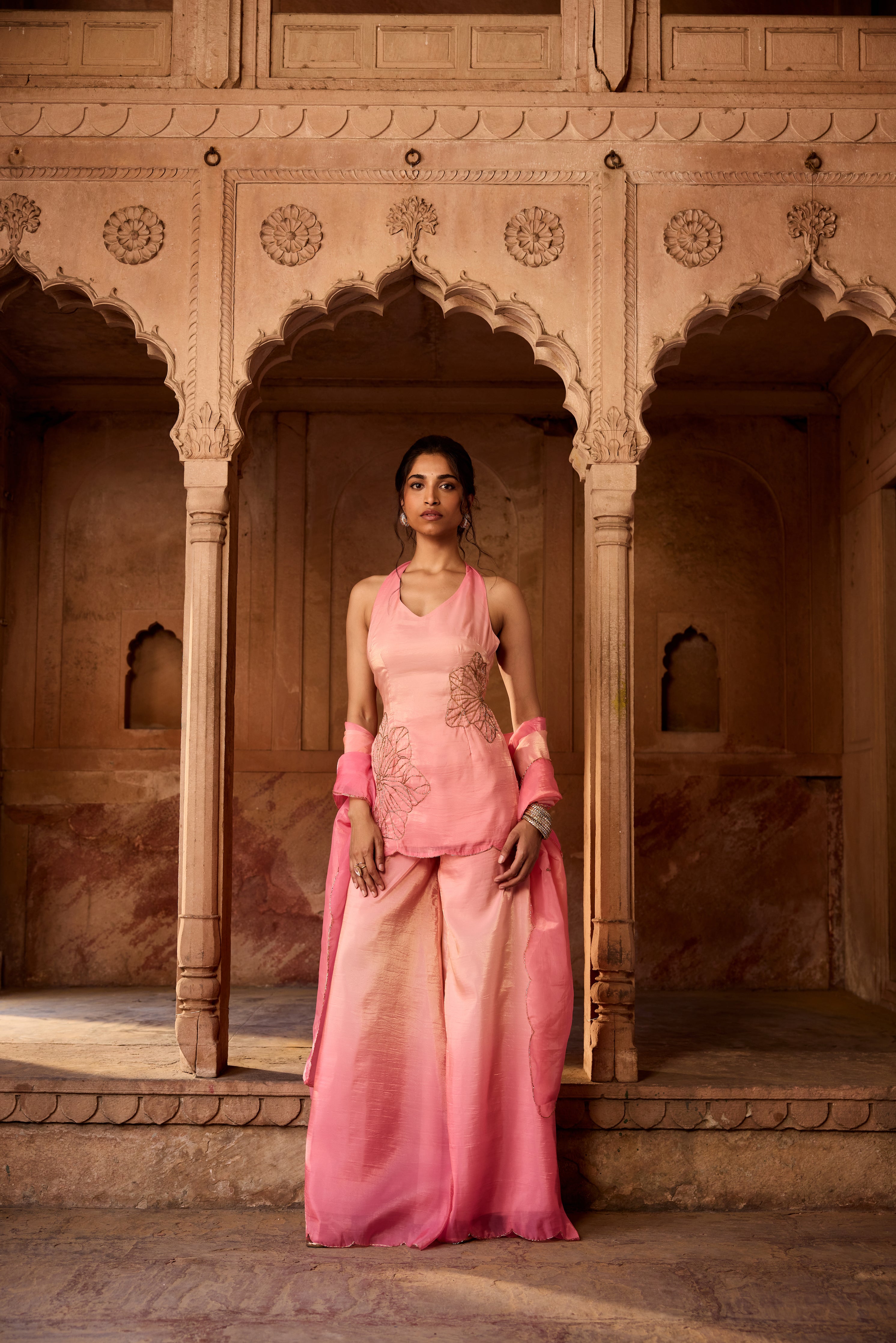 Saabat Pink Ombre Floral Embroidered Sharara Set