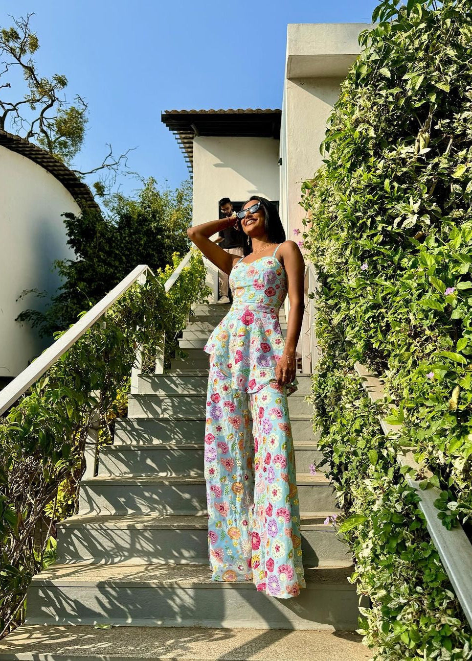 Tanvee Pink Floral Printed Corset Anarkali Suit