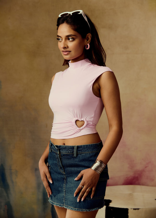 Vega Baby Pink Heart Cut-Out Seamless Top