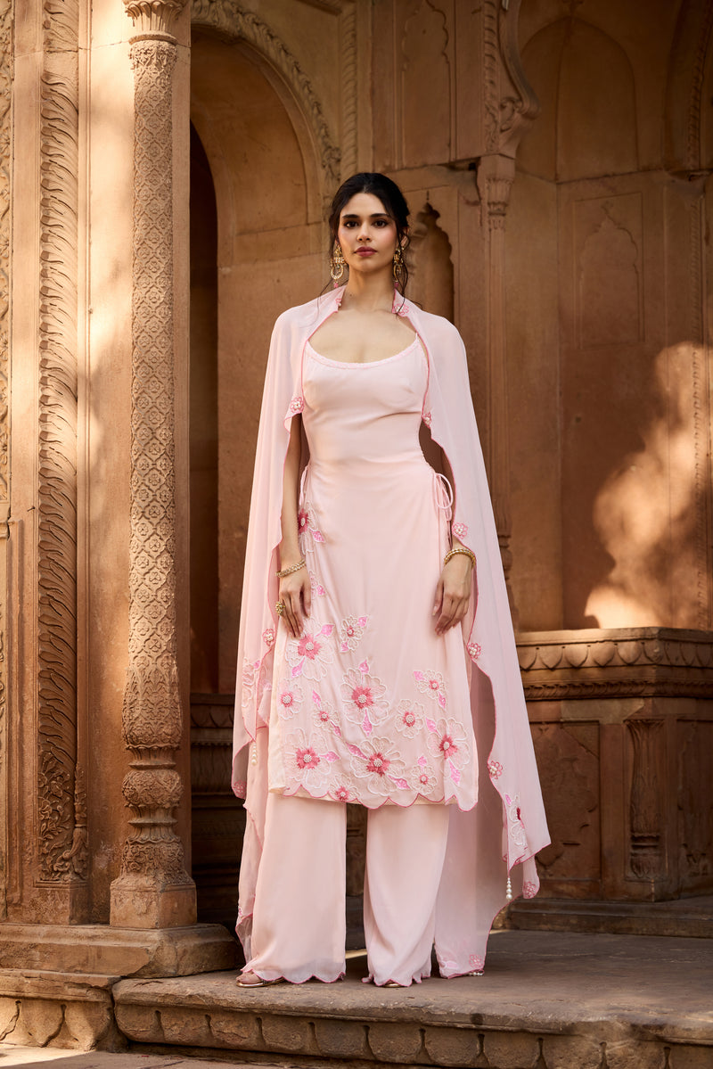 Raaya Baby Pink Hand-Embroidered Sleeveless Kurta Set