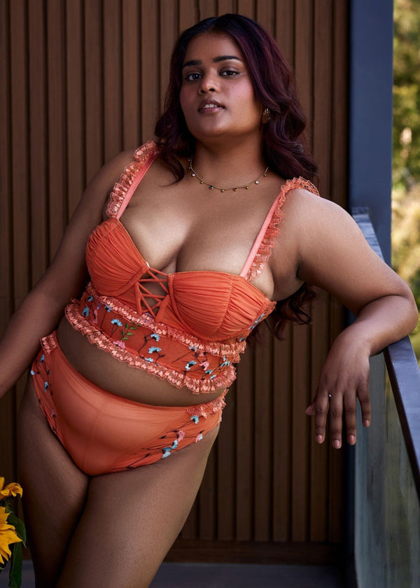 Cassandra Orange Floral Embroidered Balconet Bralette