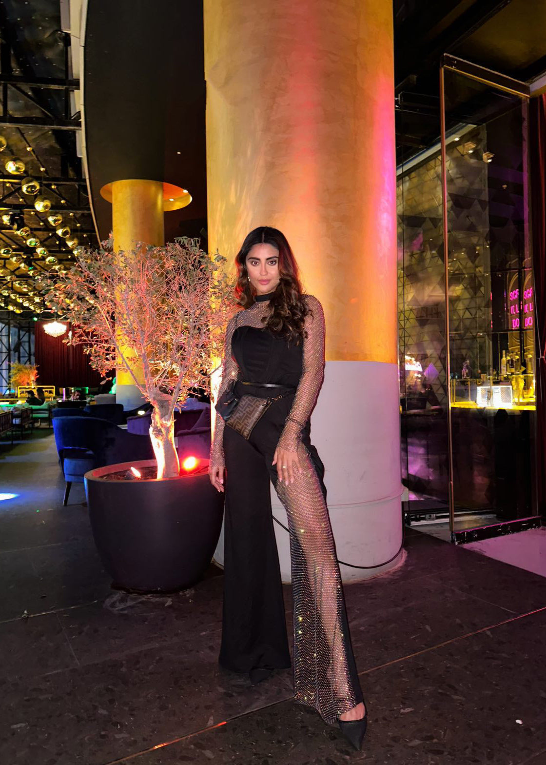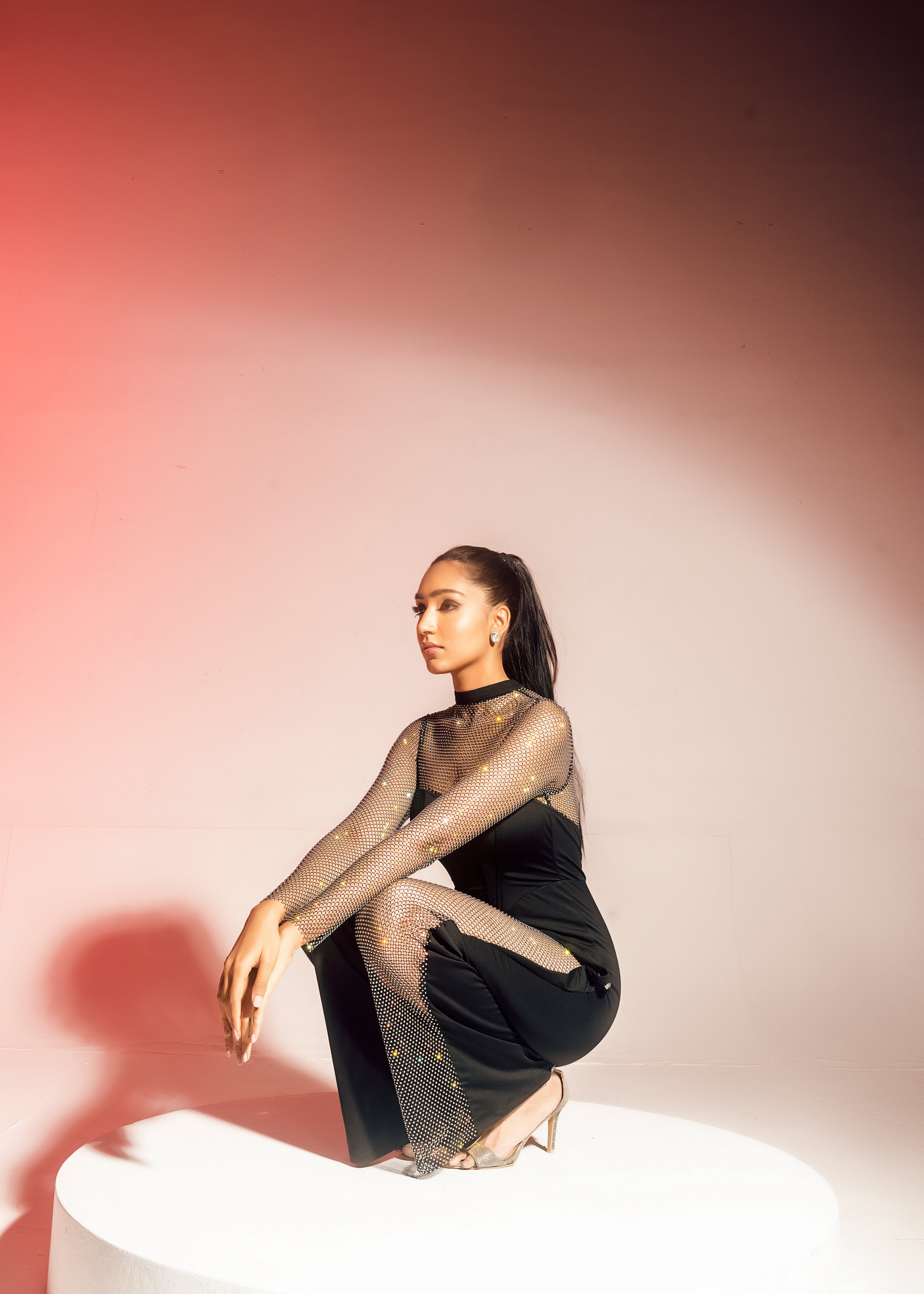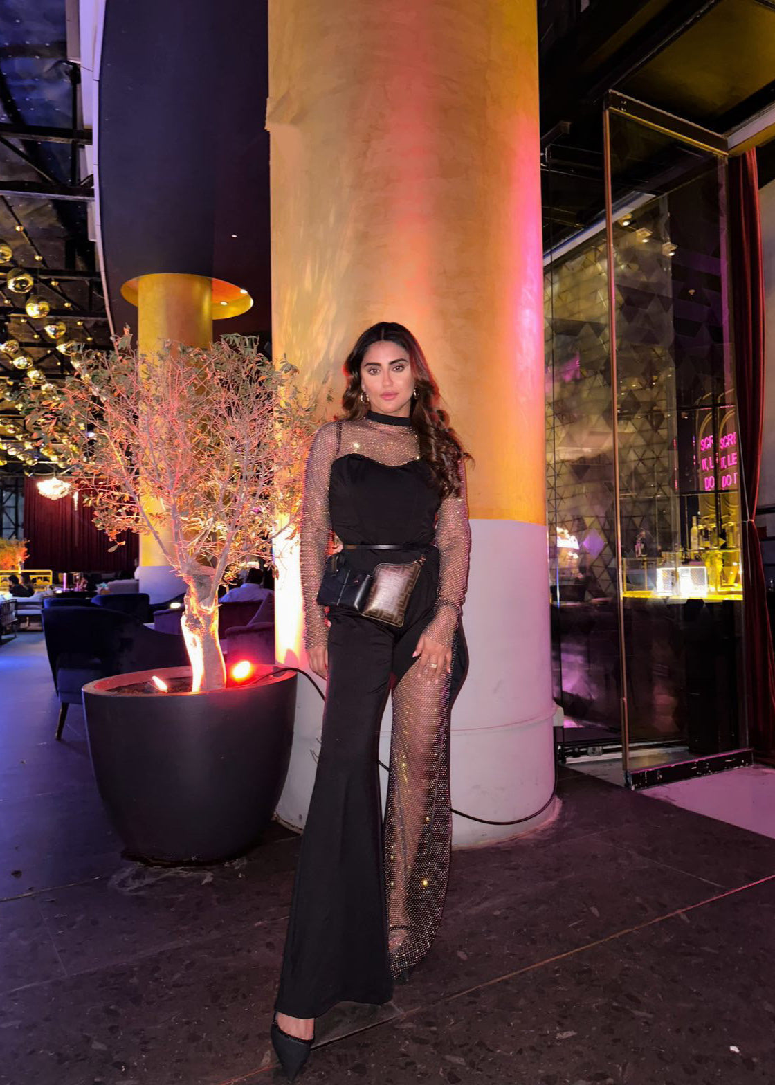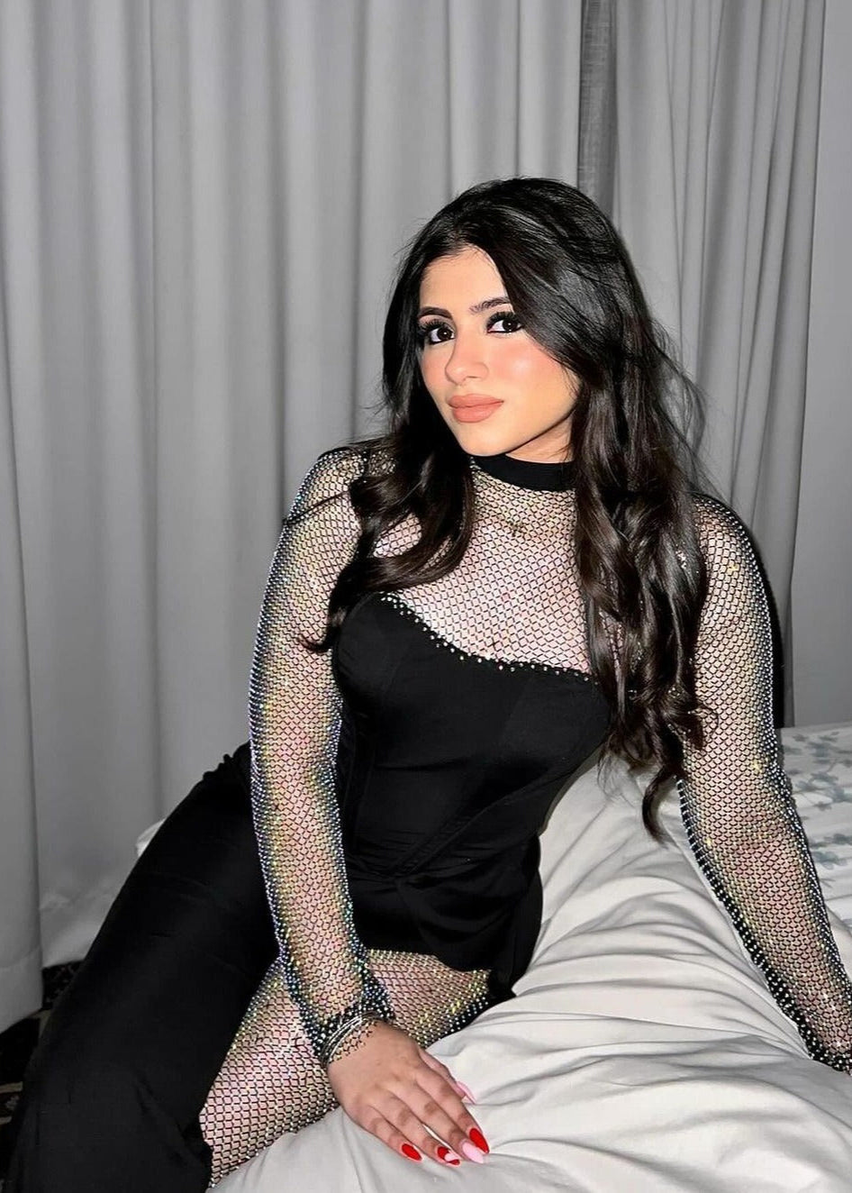 Martina Black Crystal Mesh Corset Jumpsuit CL