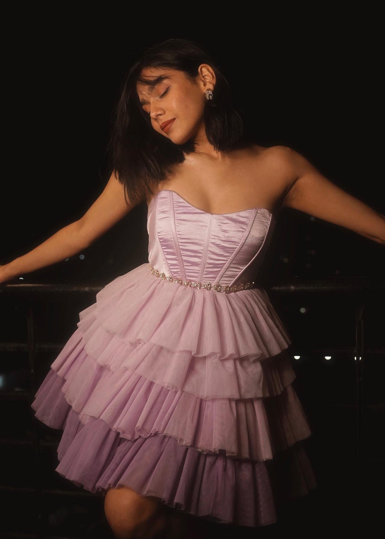Belle Lavender Ombre Ruffle Tulle Corset Dress