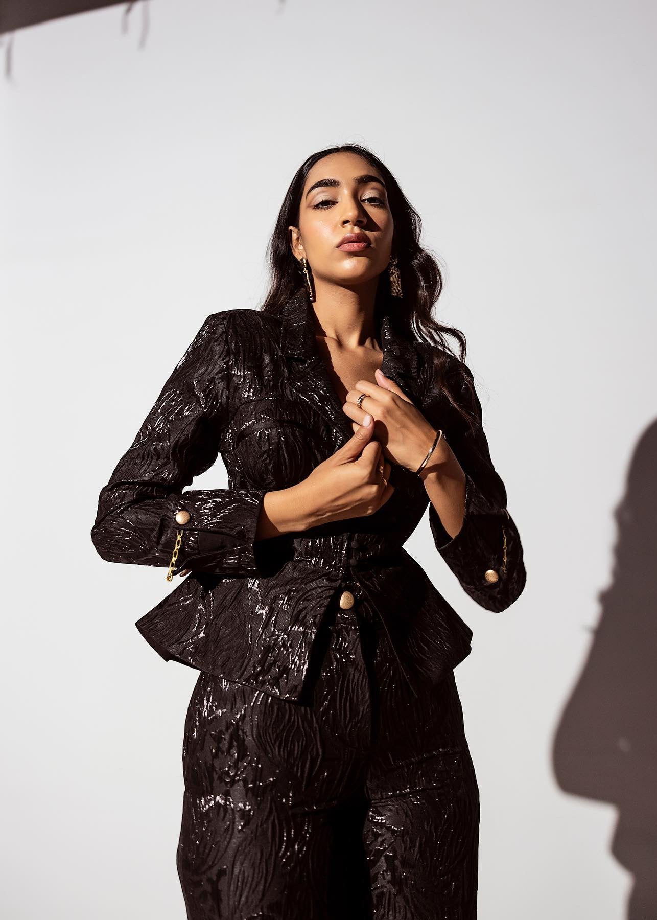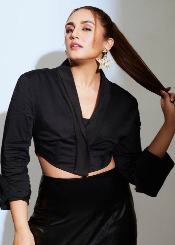 Donna Black Embroidered Jacquard Corset Blazer CL