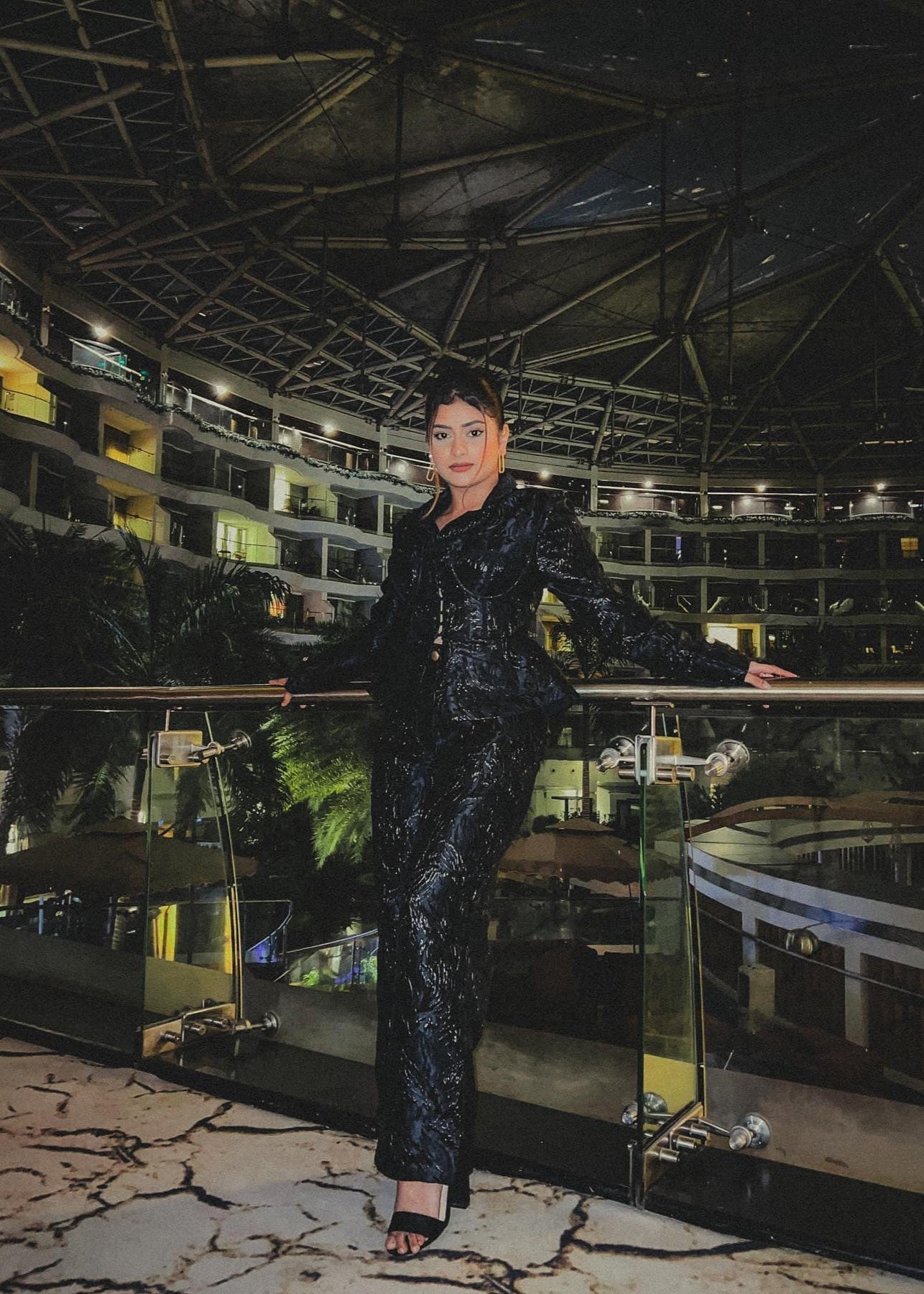 Humaida Black Shimmer Pre- Draped Saree Set