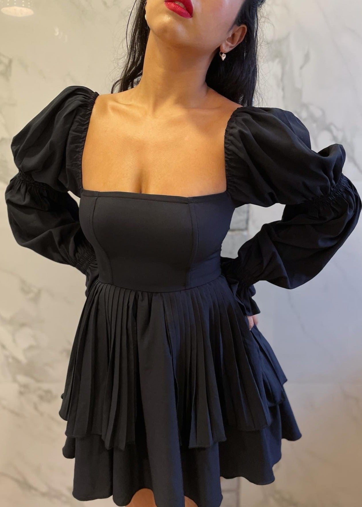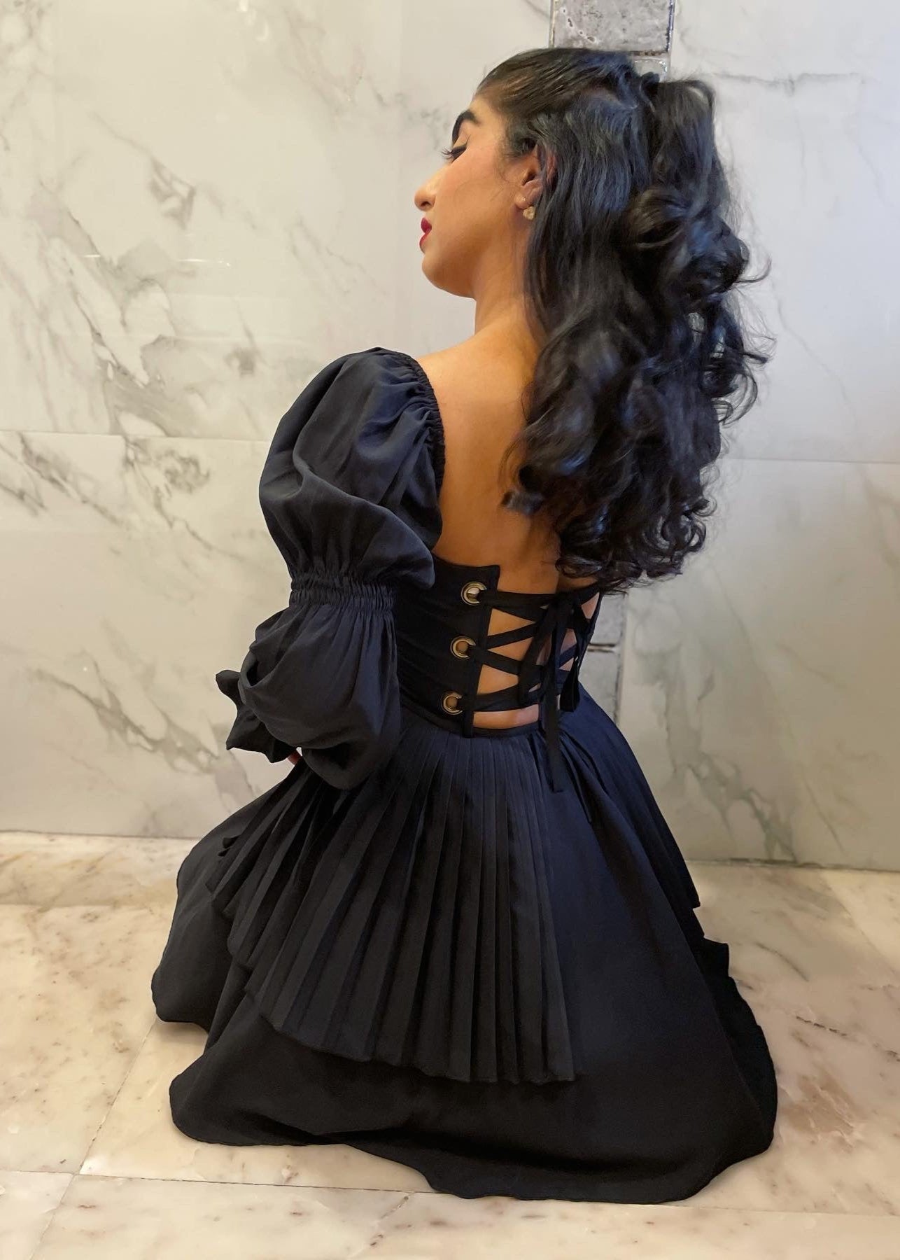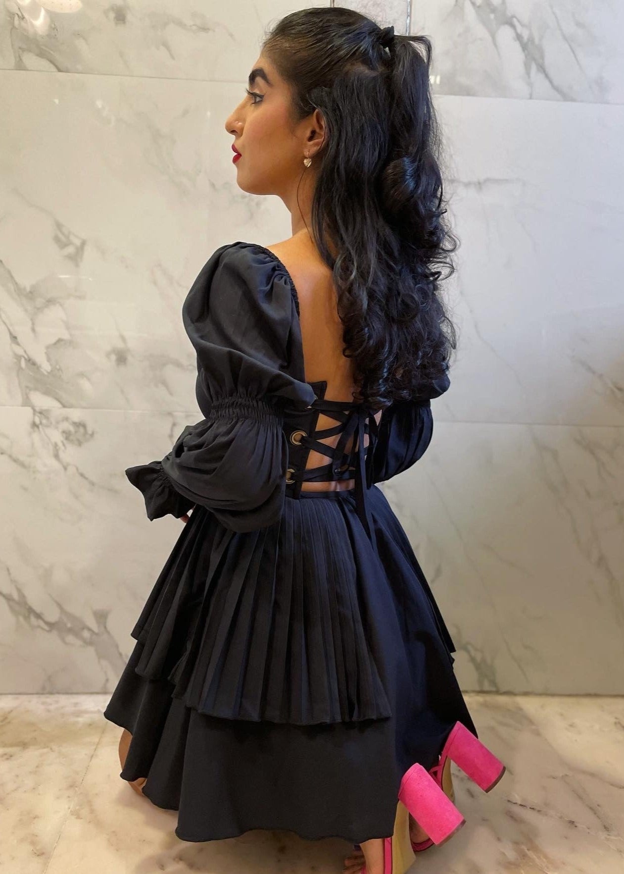 Pixie Black Puff Corset Dress