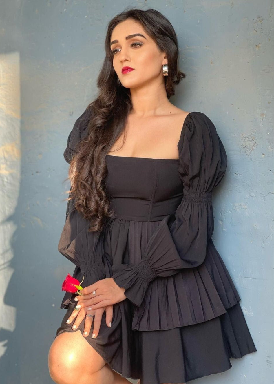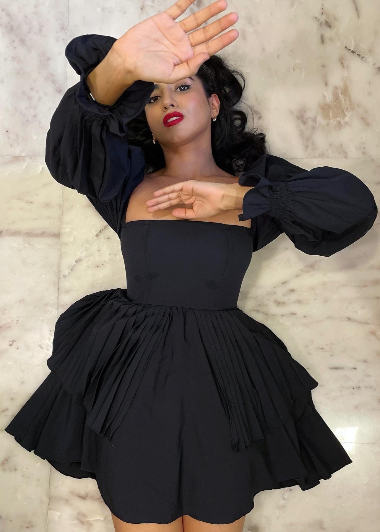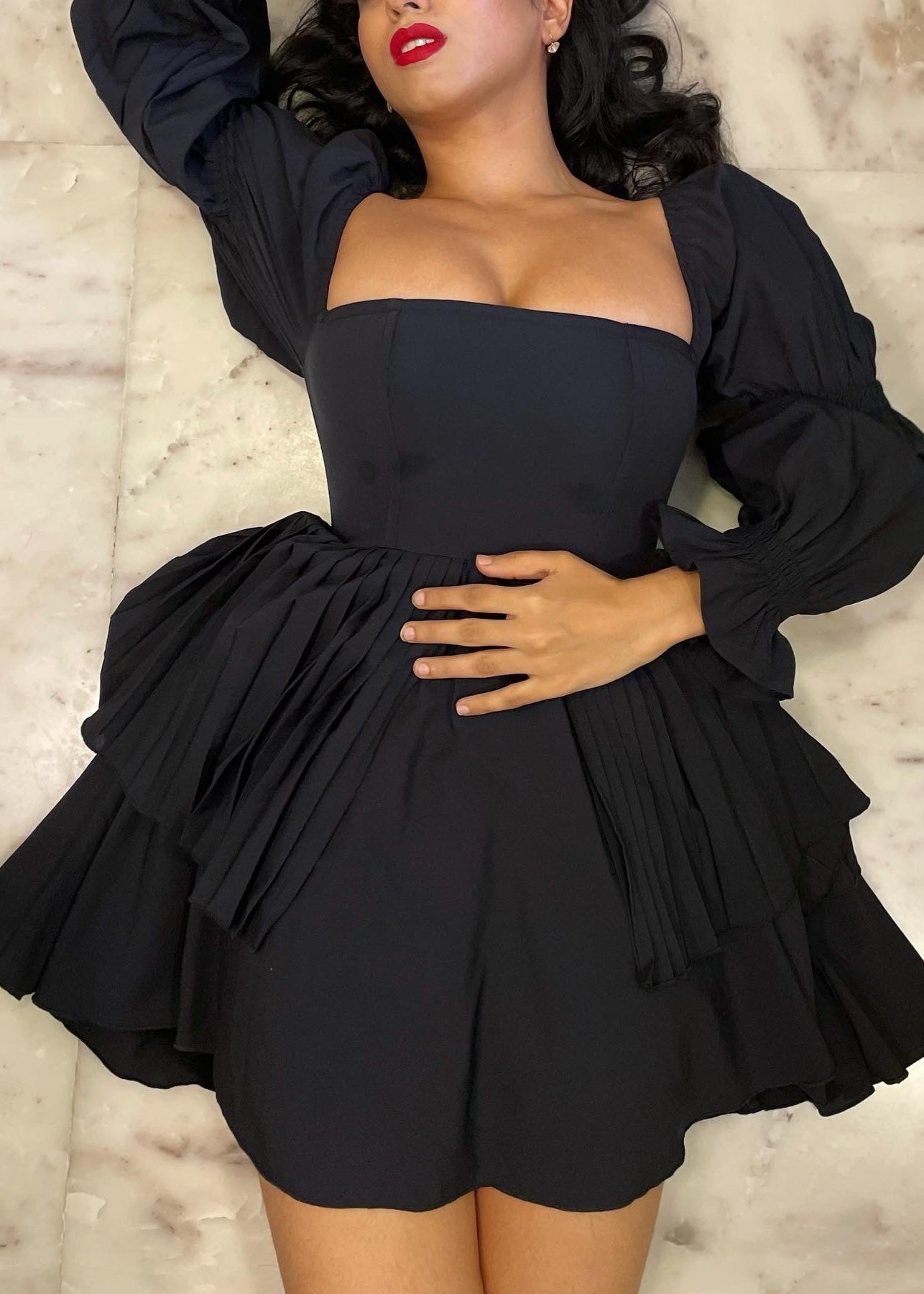 Pixie Black Puff Corset Dress