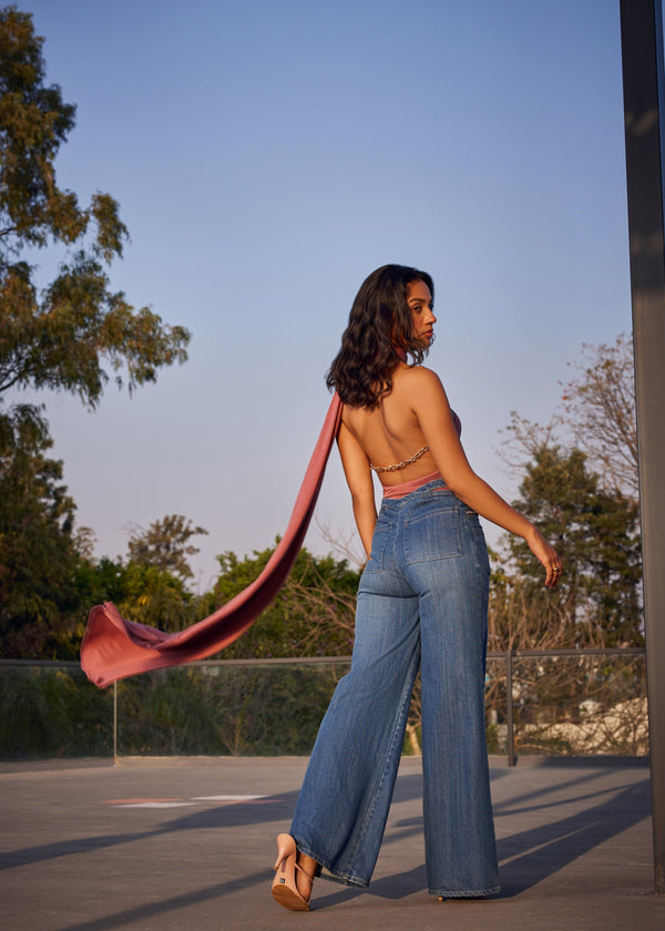 Sasha Yellow Embroidered Organza Sleeve Corset Top