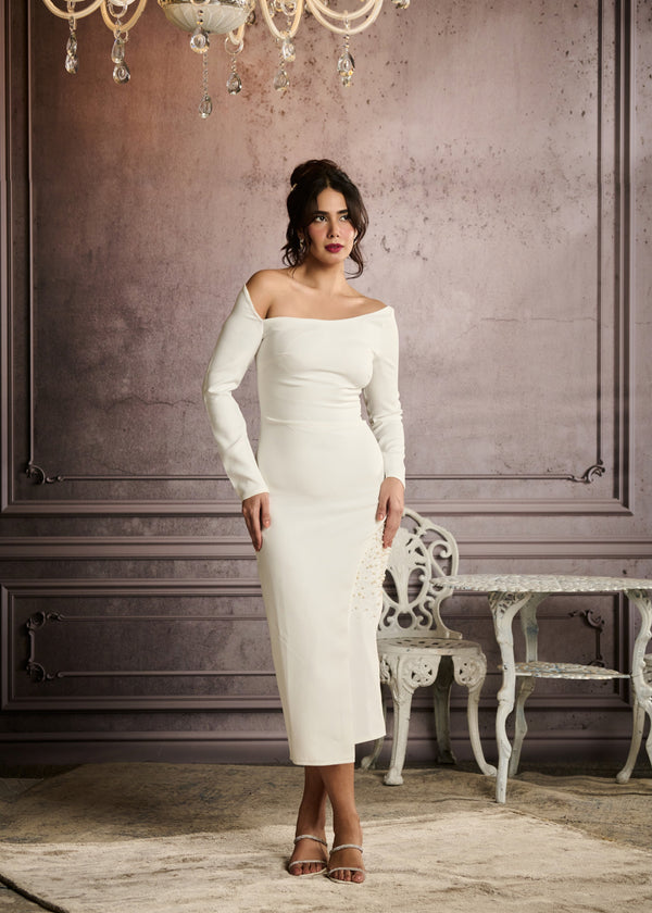 Jacqueline Black Embroidered Midi Bodycon Dress