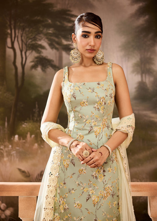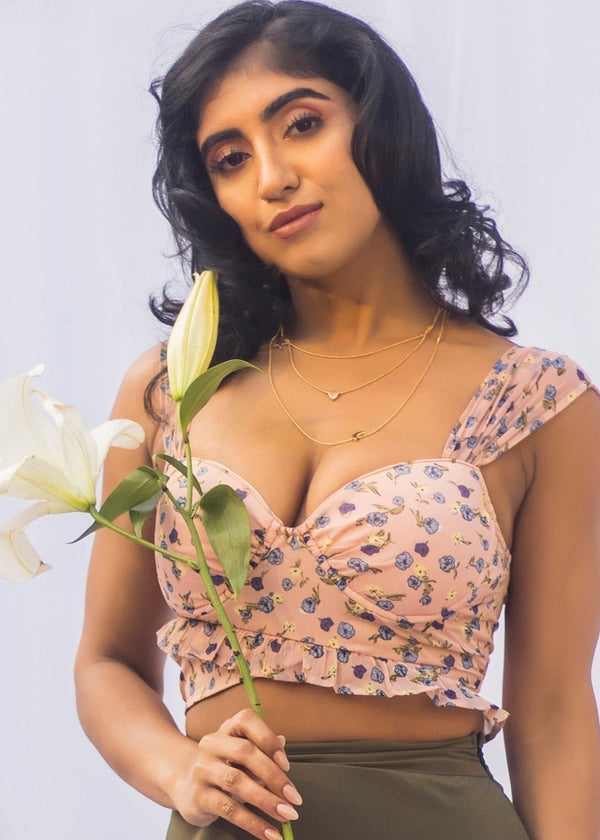 Sasha Yellow Embroidered Organza Sleeve Corset Top