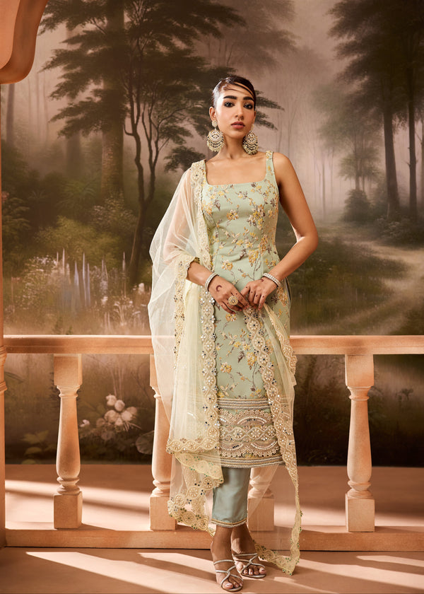 Tatiana Baby Blue Ruched Mesh Midi Corset Dress