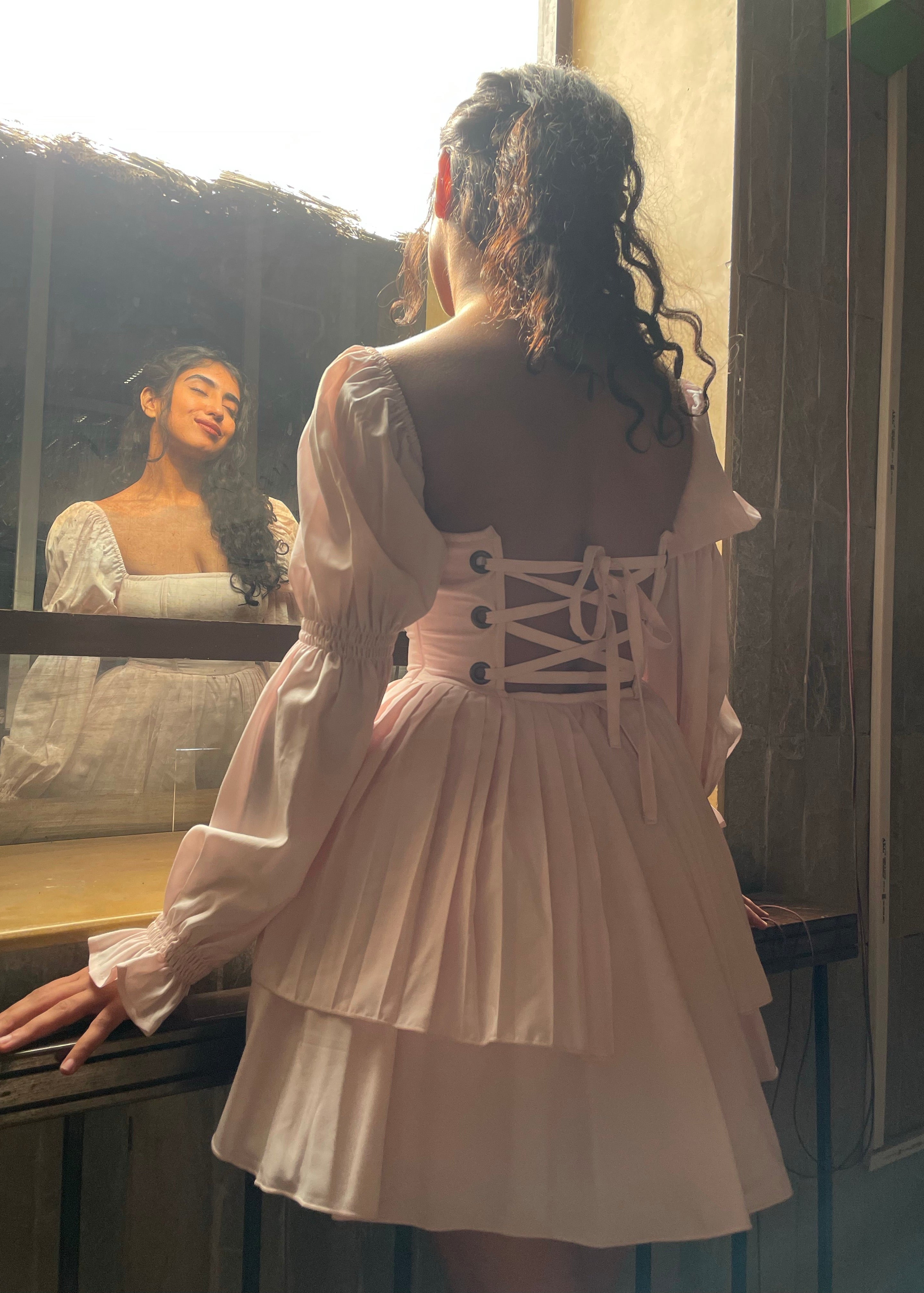 Pixie Baby Pink Schiffli Puff Corset Dress