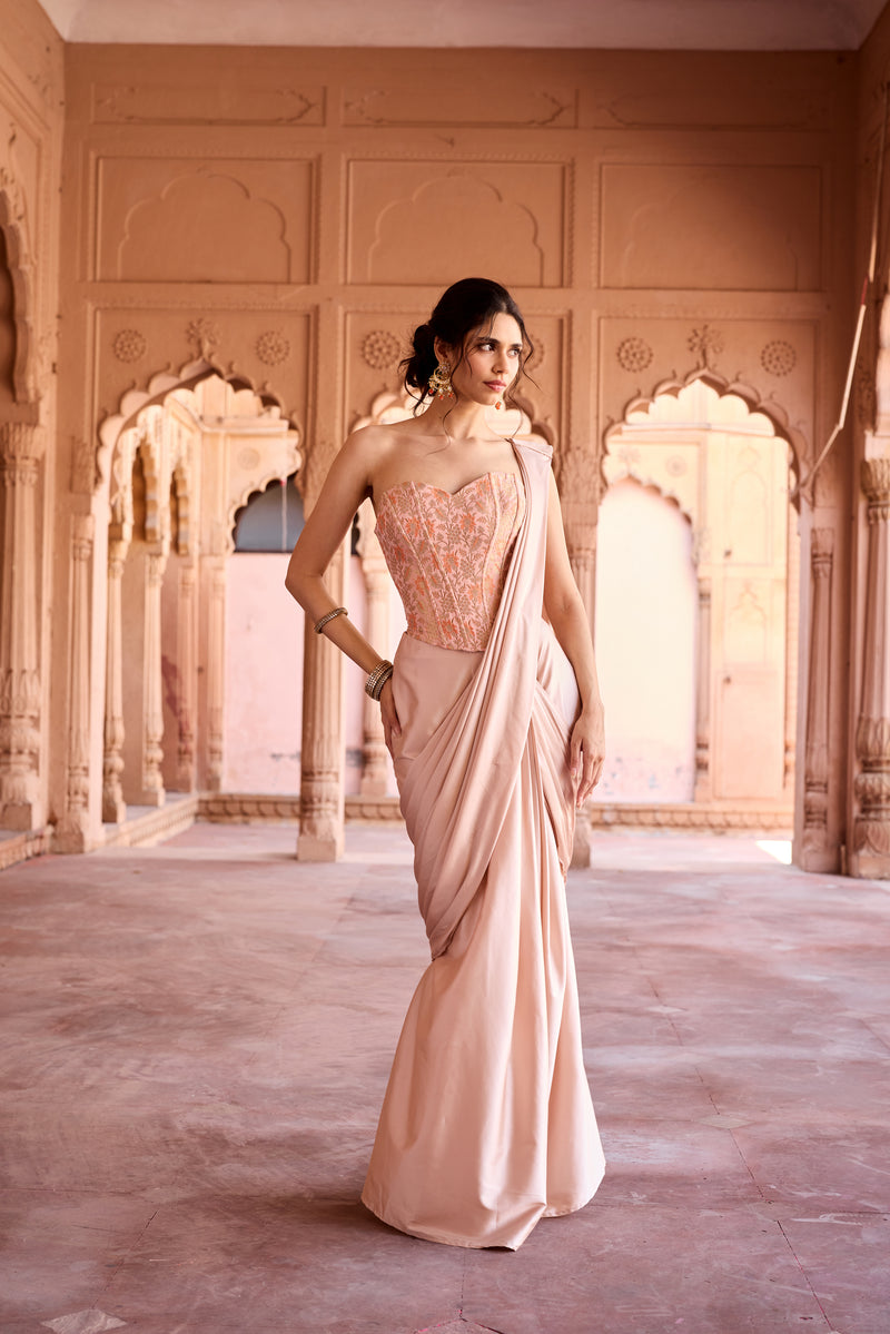 Siham champagne Floral Corset Pre-Stitched Saree