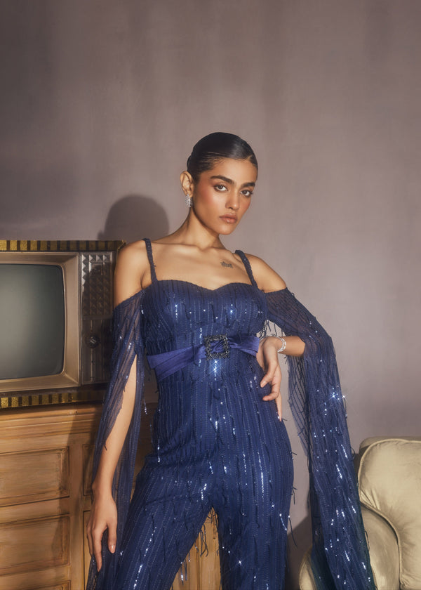 Shion Black Embellished Rhinestone Gown